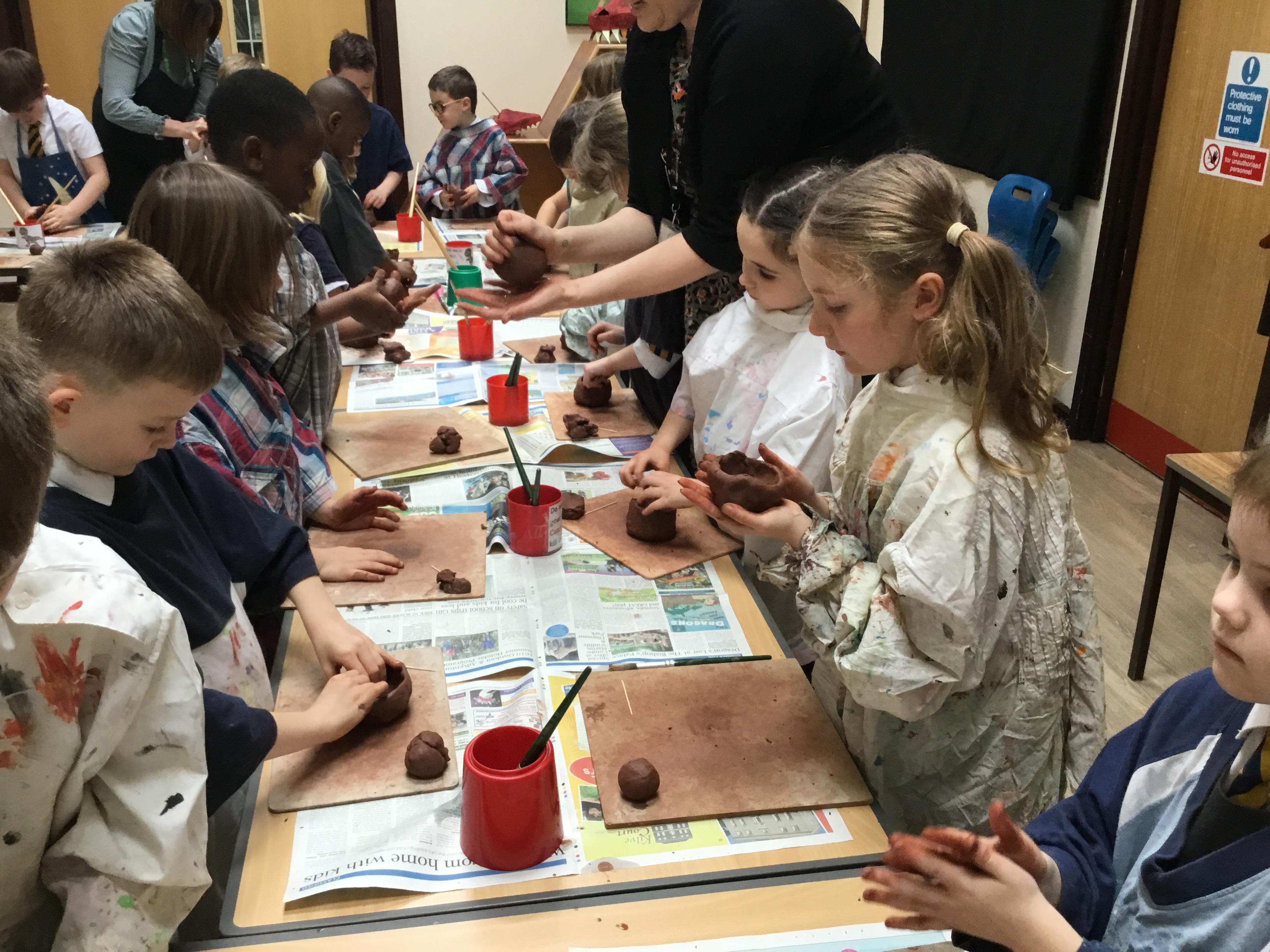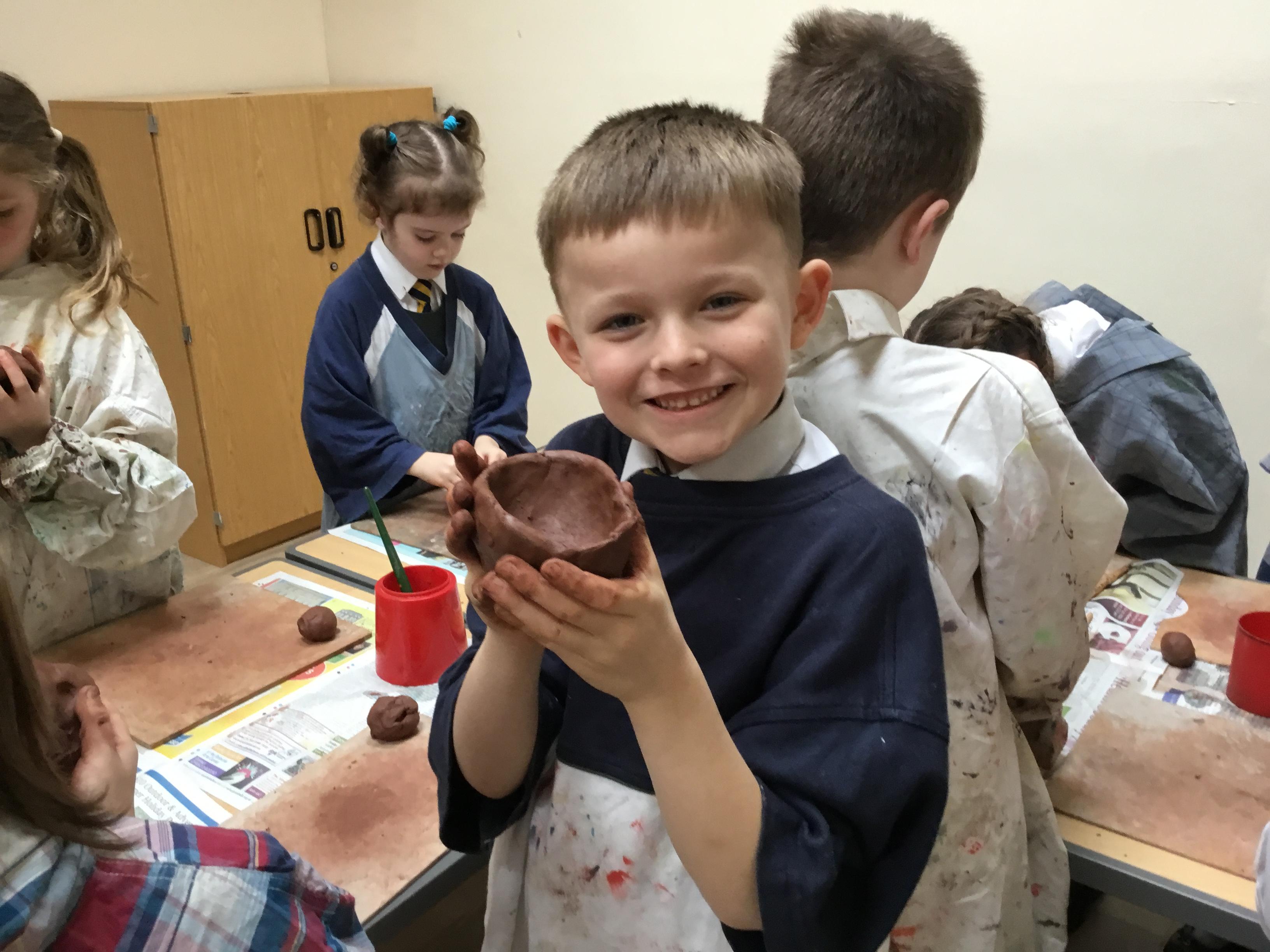 Maple Class had a test run of The Studio during their art class this week, and learnt how to use score and slip method to decorate a clay pinch pot.