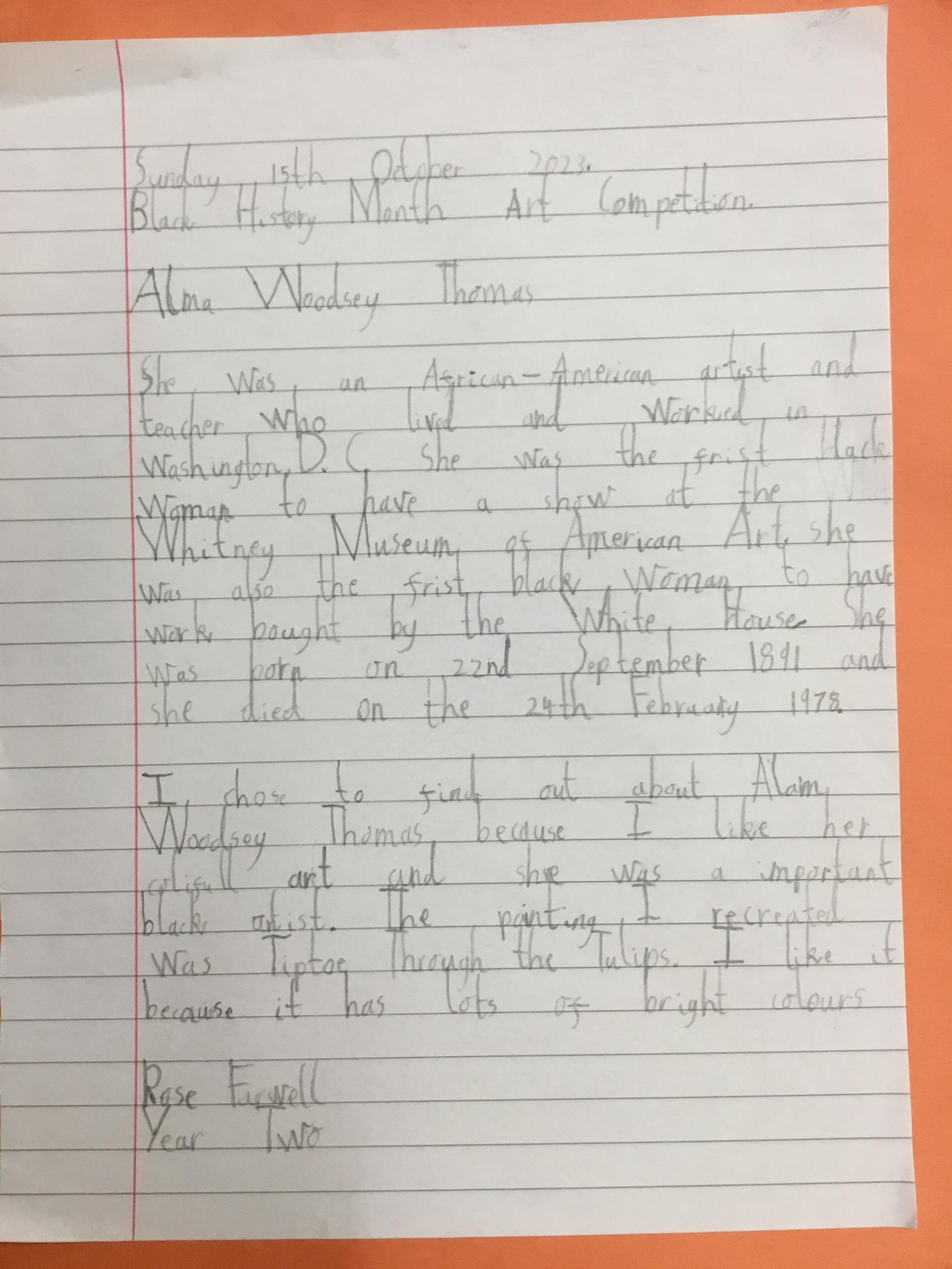 A huge congratulations to Rose Farwell from Year 2 and Chelsea Brown from Year 6 who are the final winners of our Black History Month Competition! Your effort and attention to detail was exemplary. Well done girls and we hope that you enjoy your new Art Set!