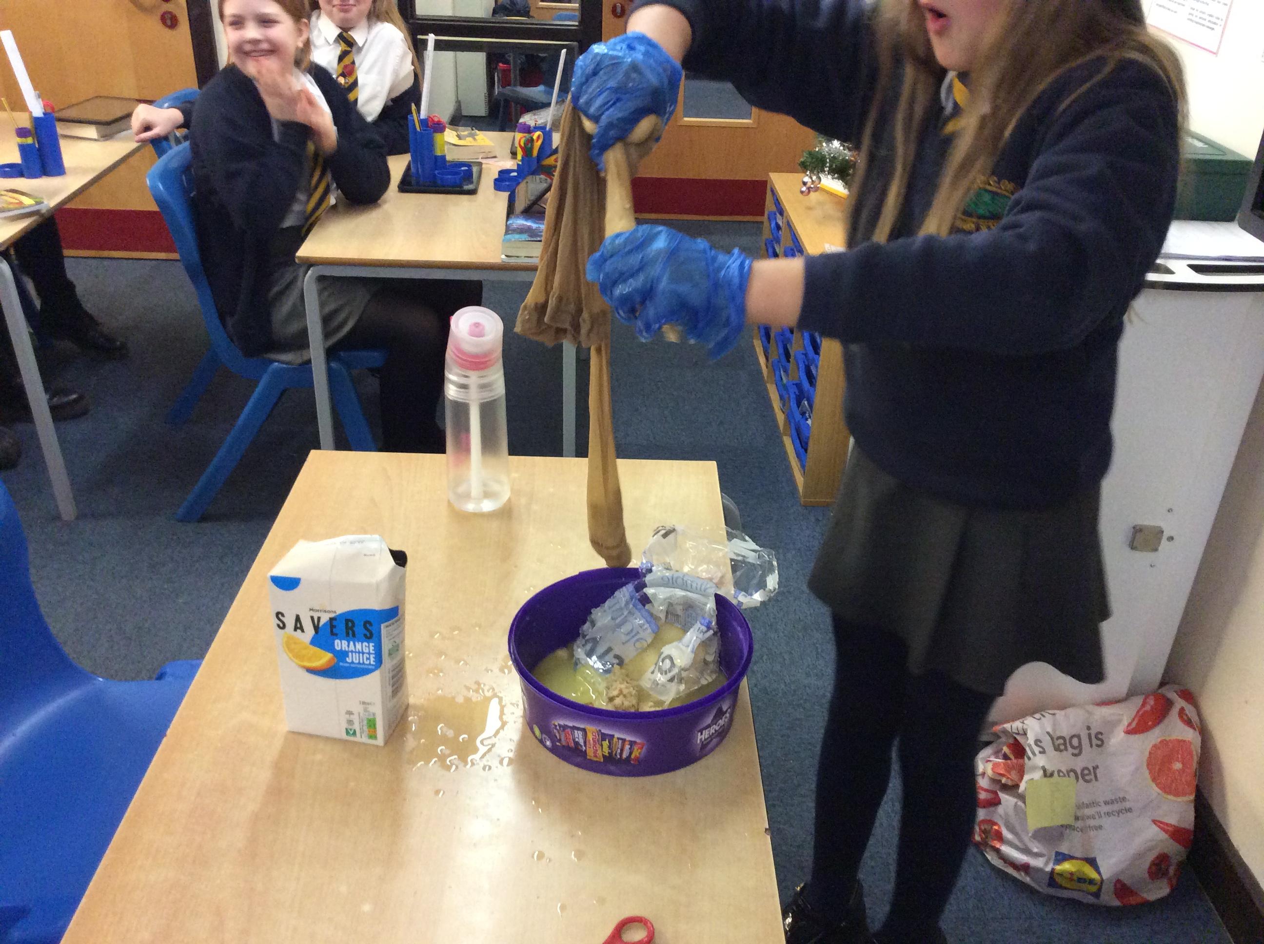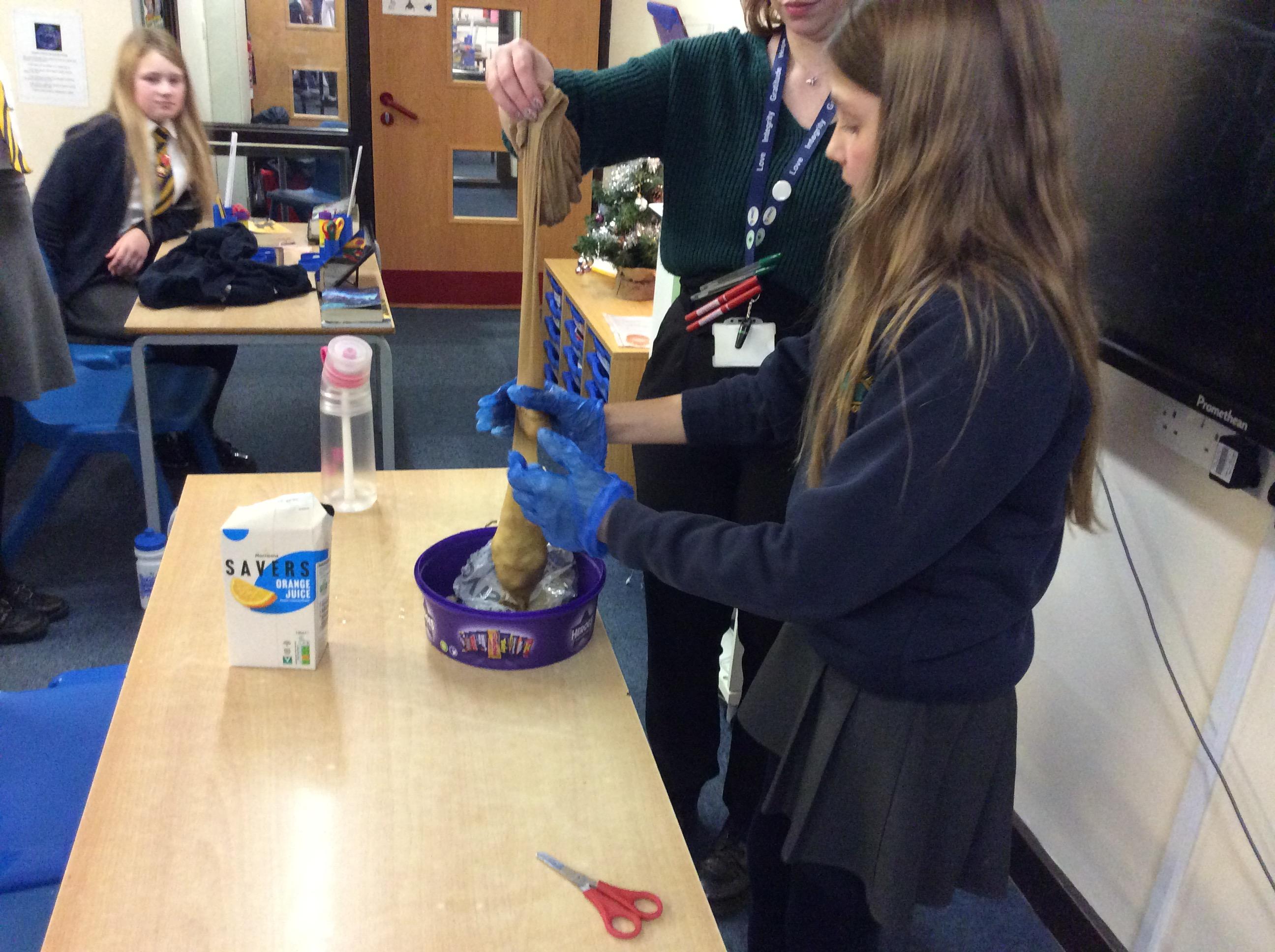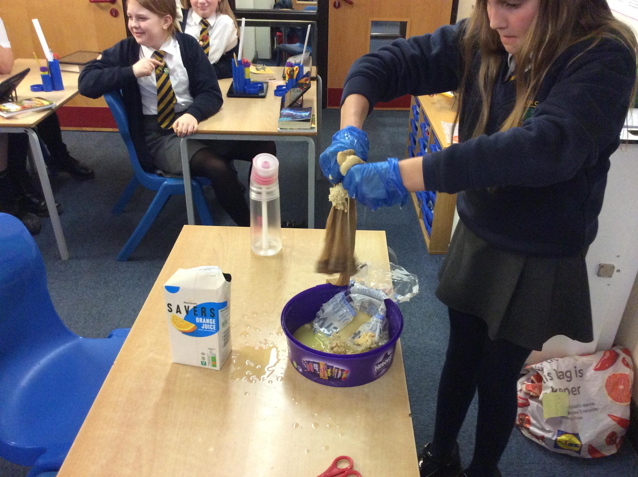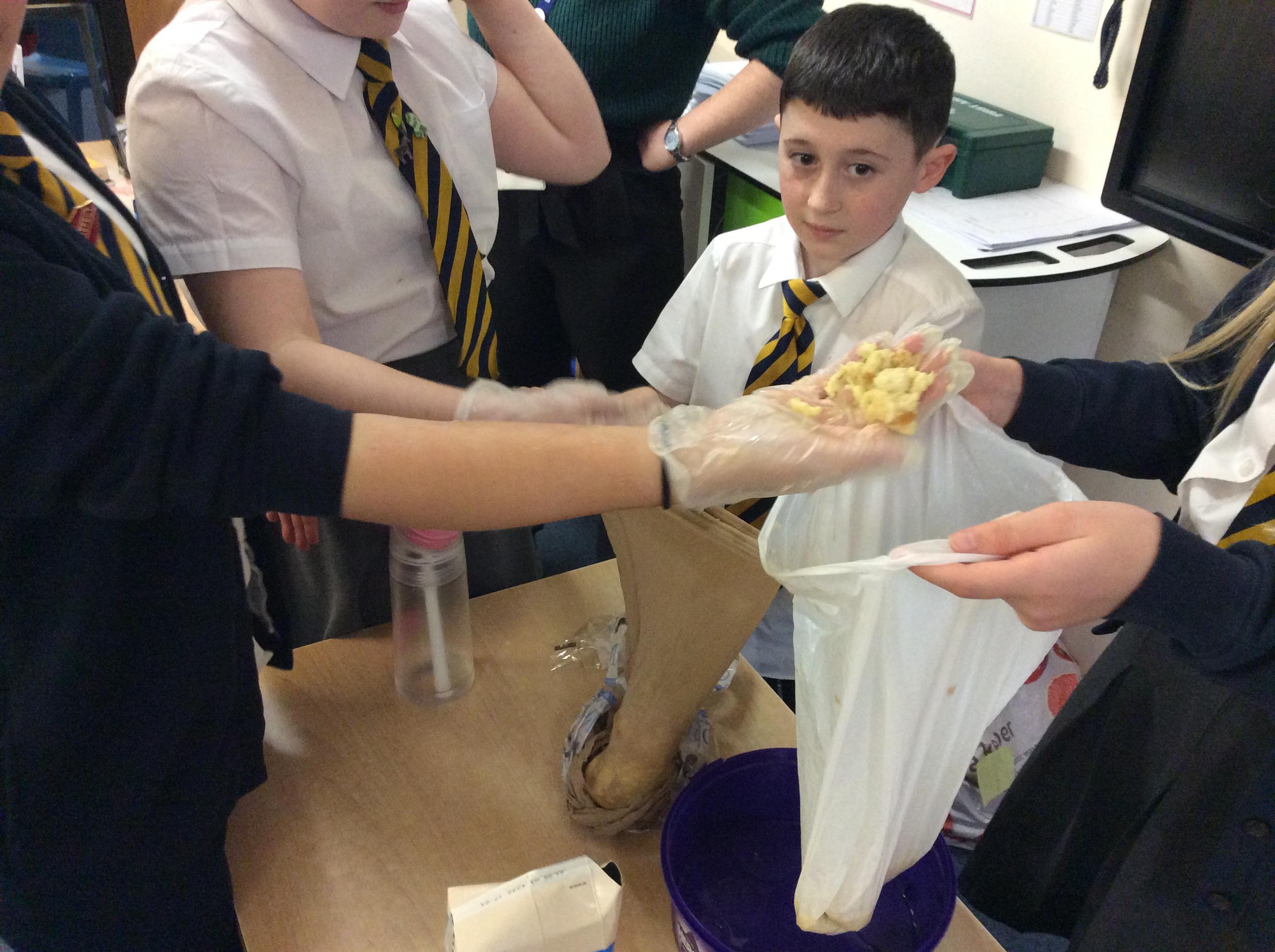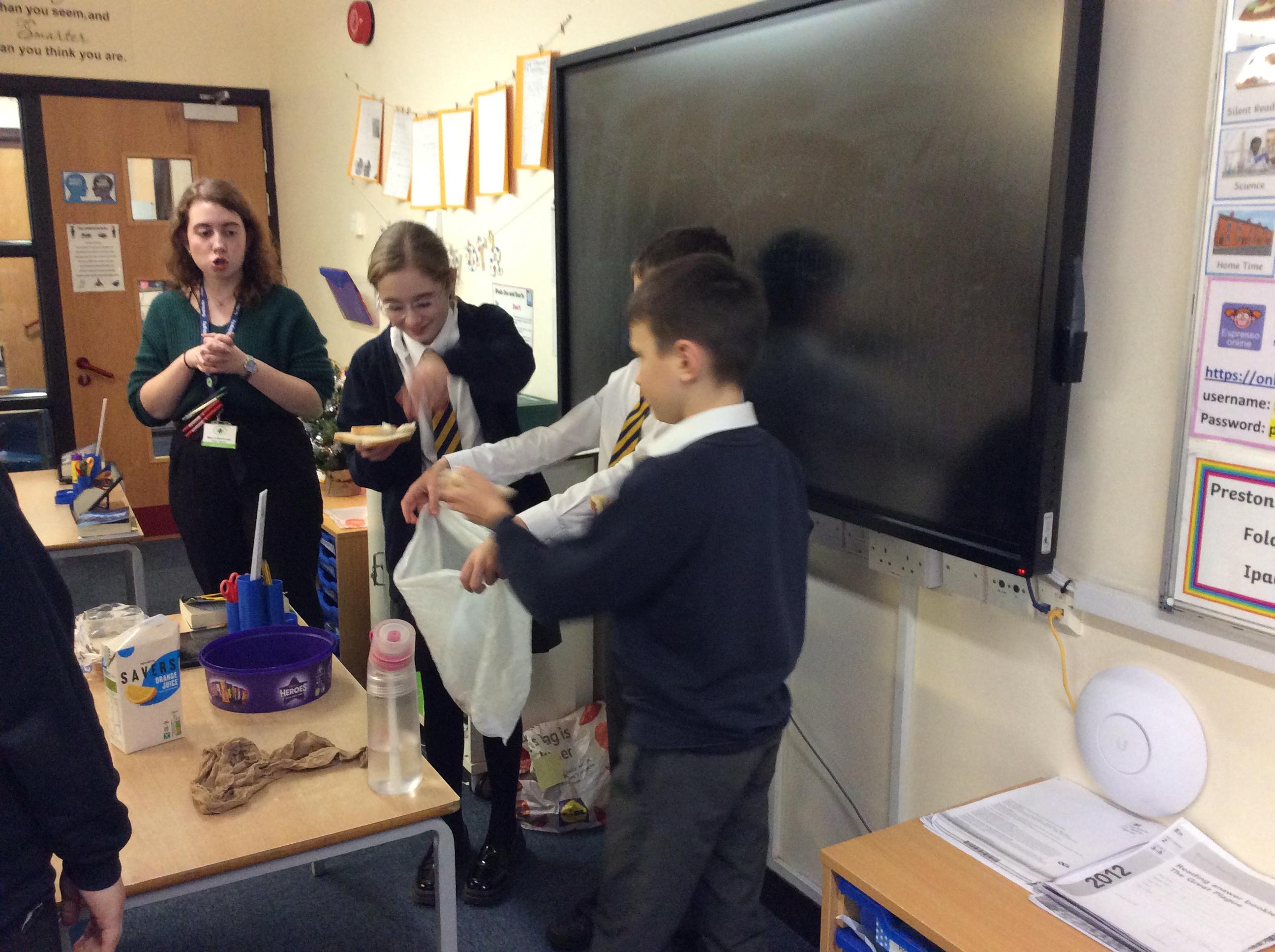 As part of science, we have been learning about the digestive system. There were lots of people who felt very brave and volunteered to help recreate the process.