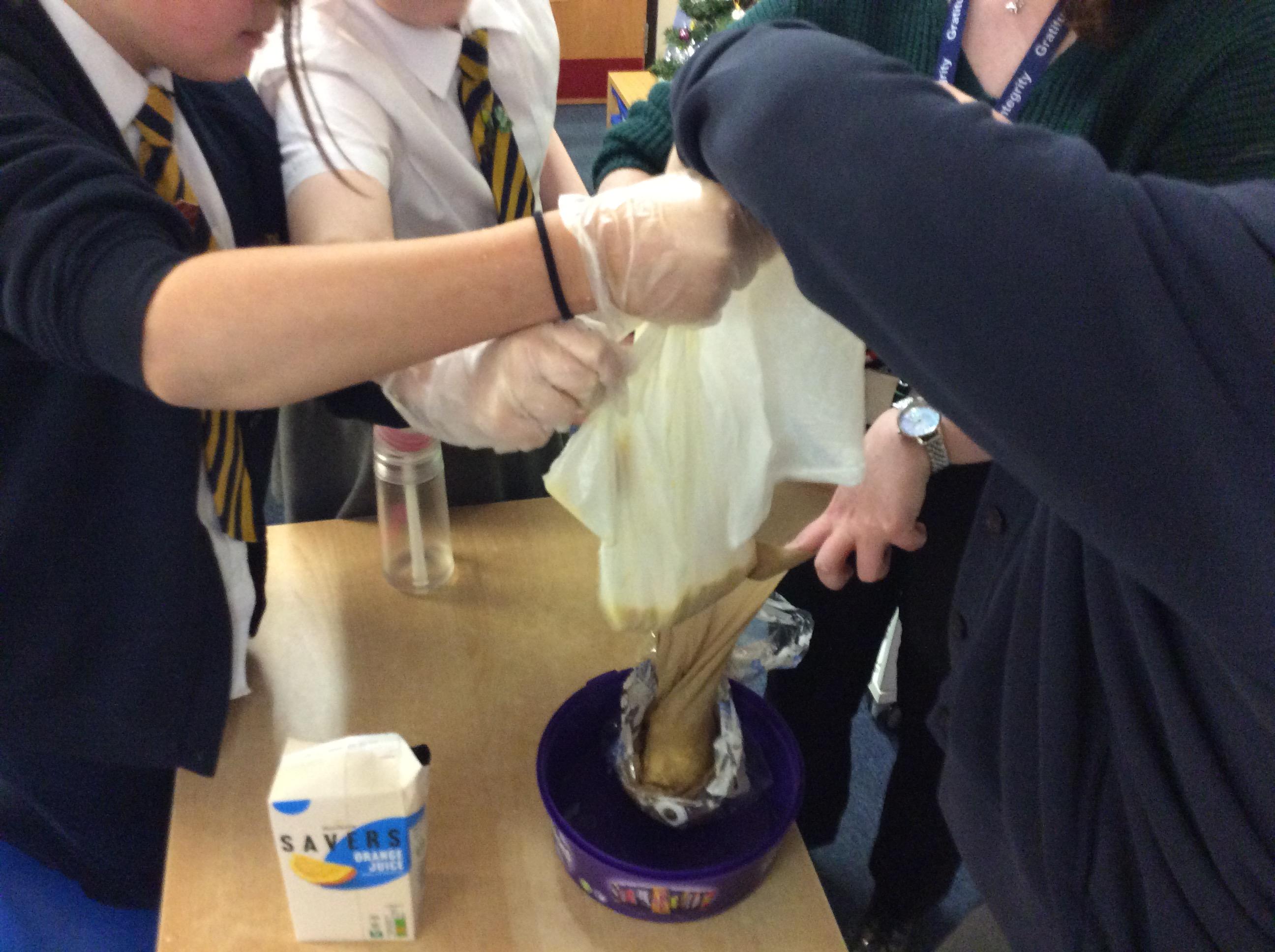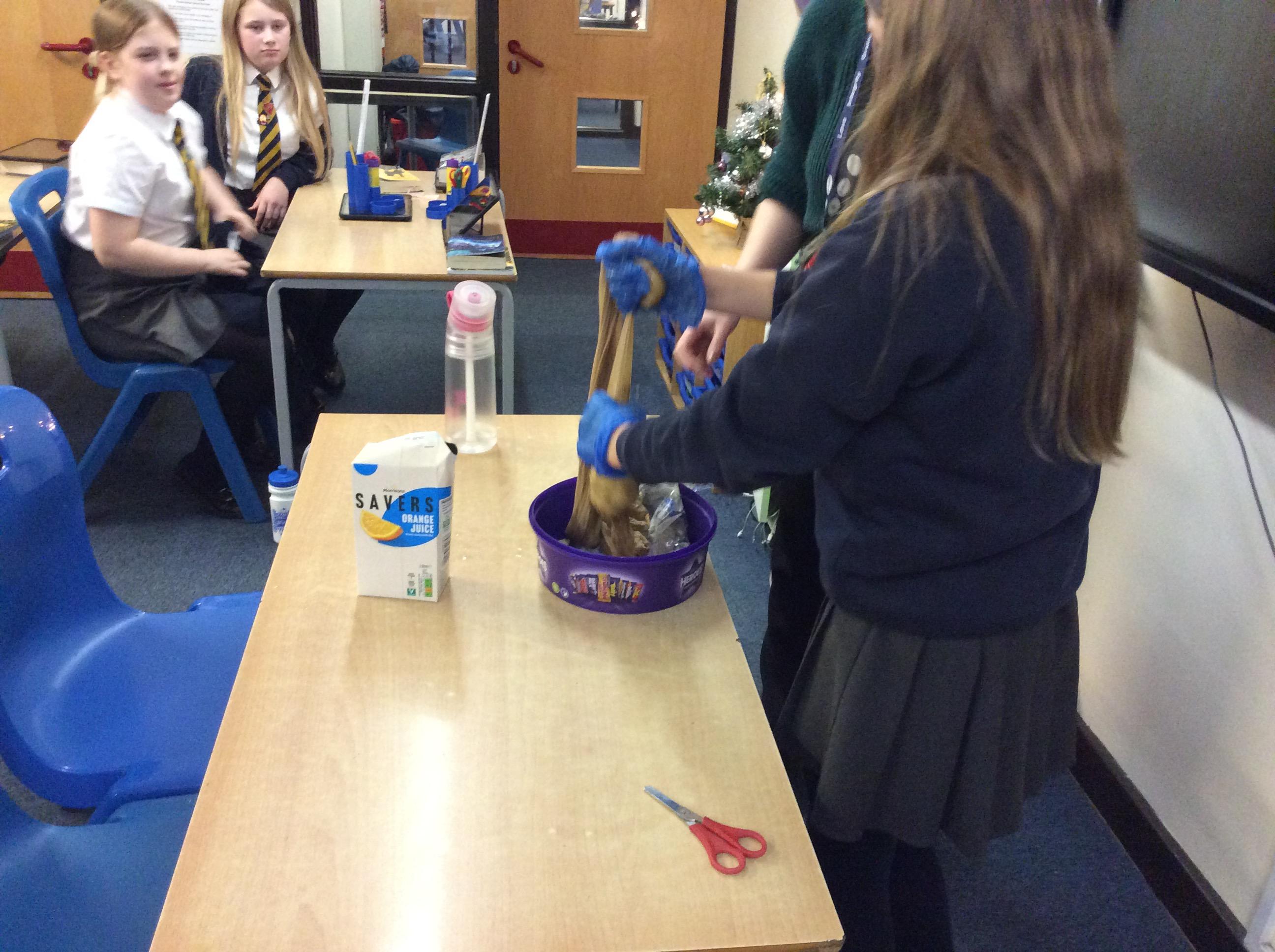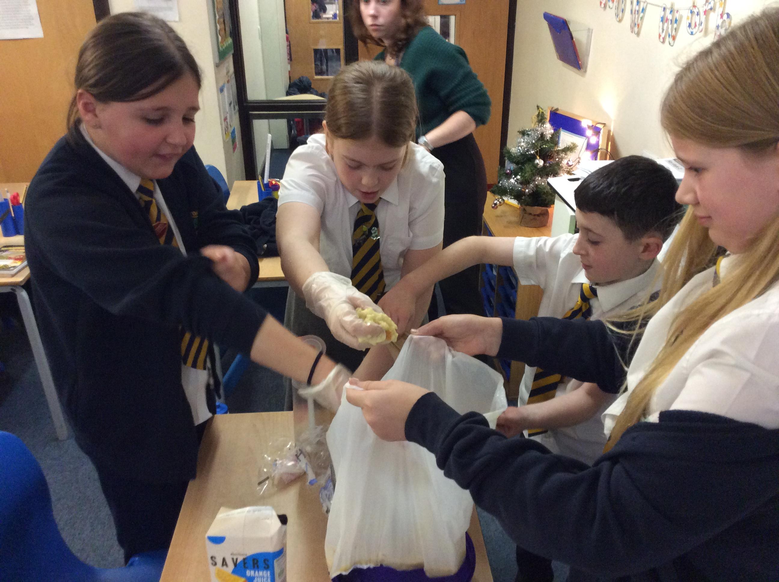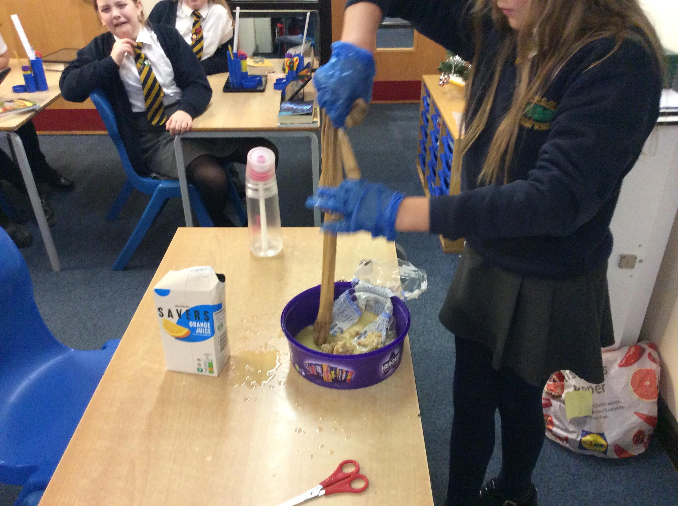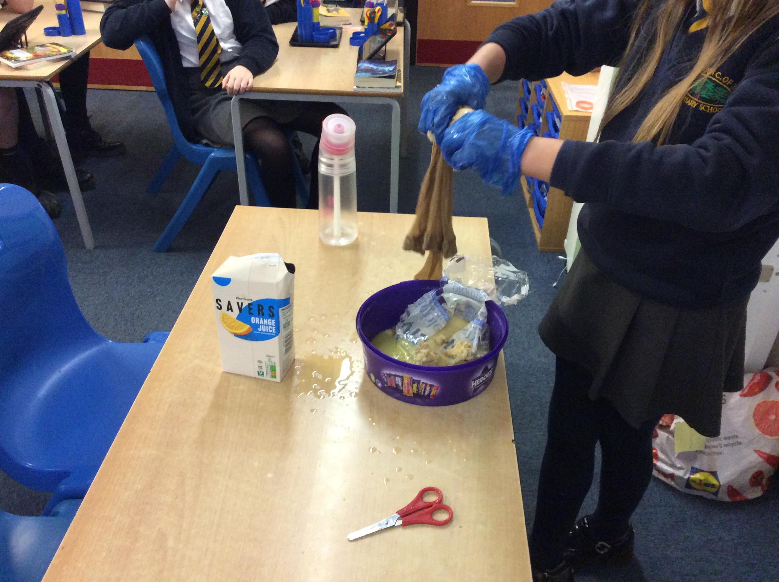 As part of science, we have been learning about the digestive system. There were lots of people who felt very brave and volunteered to help recreate the process.