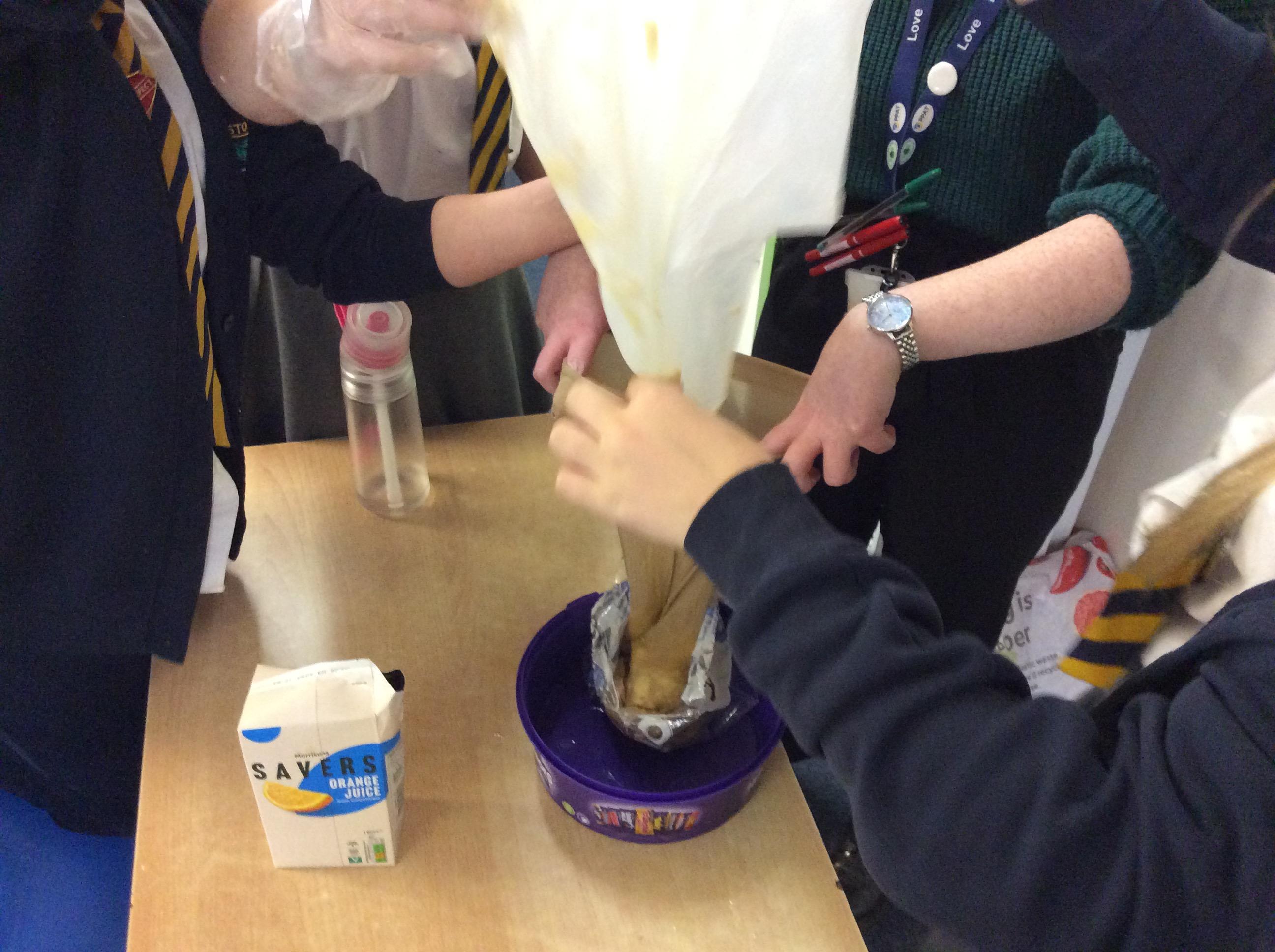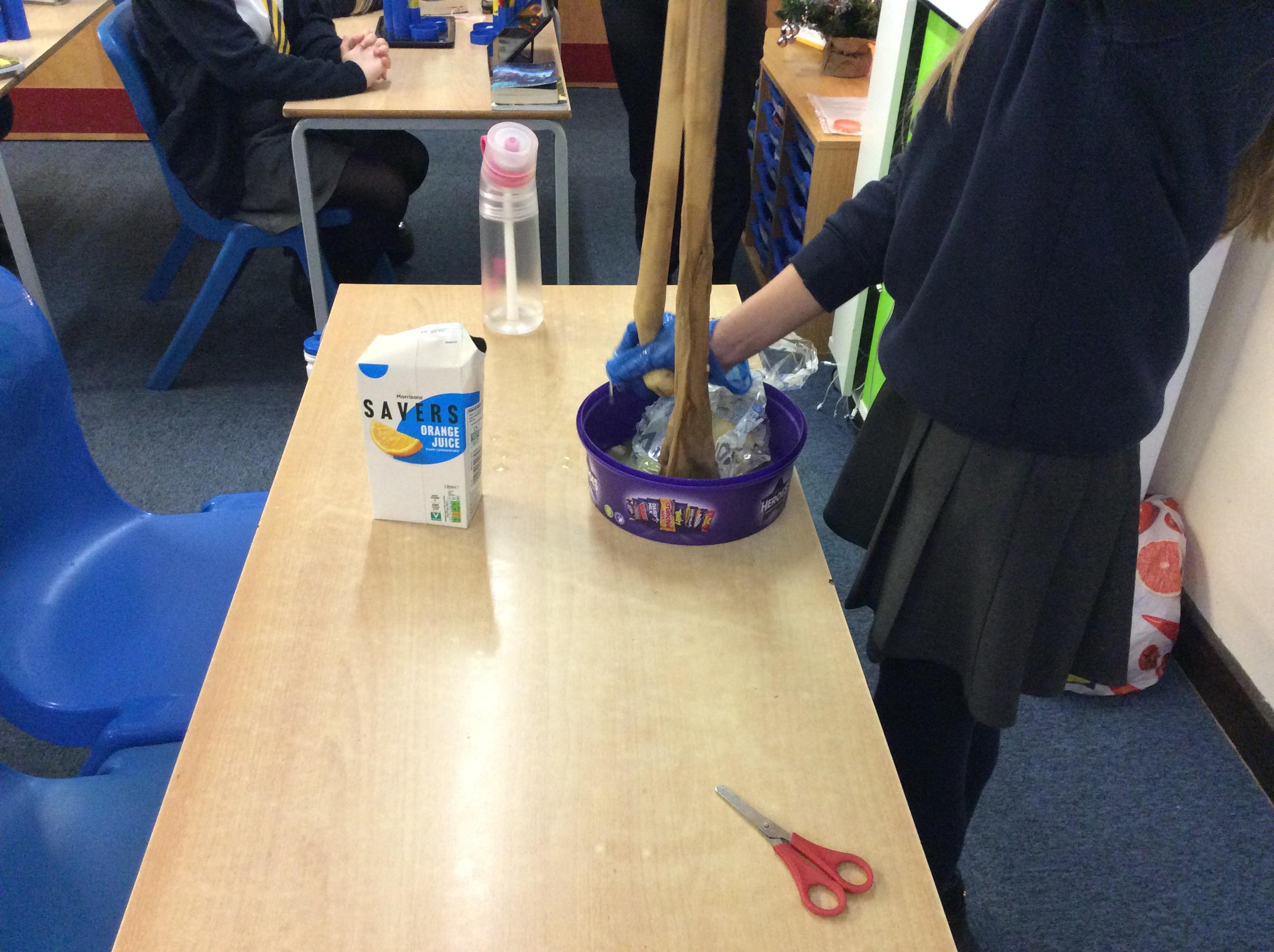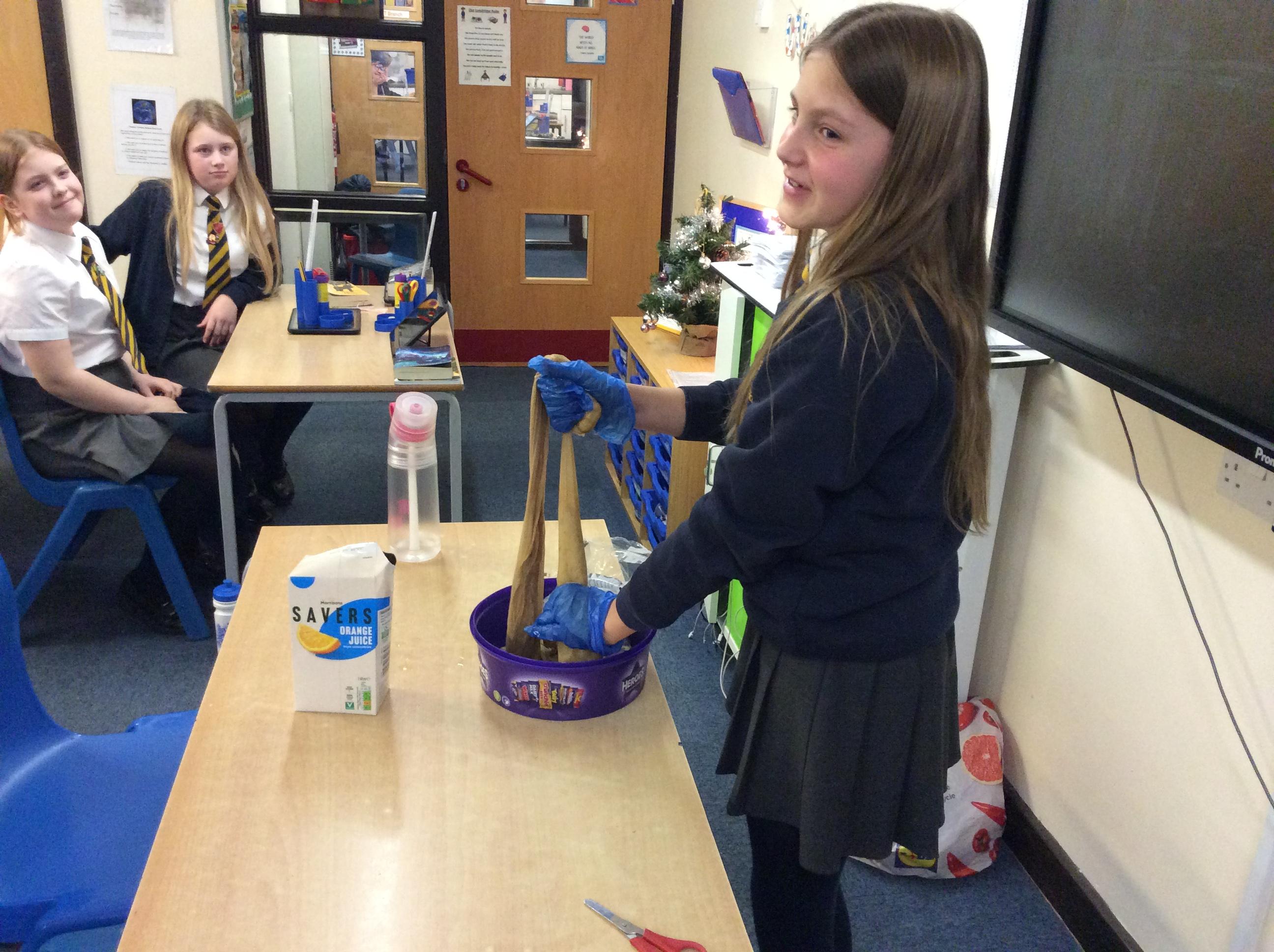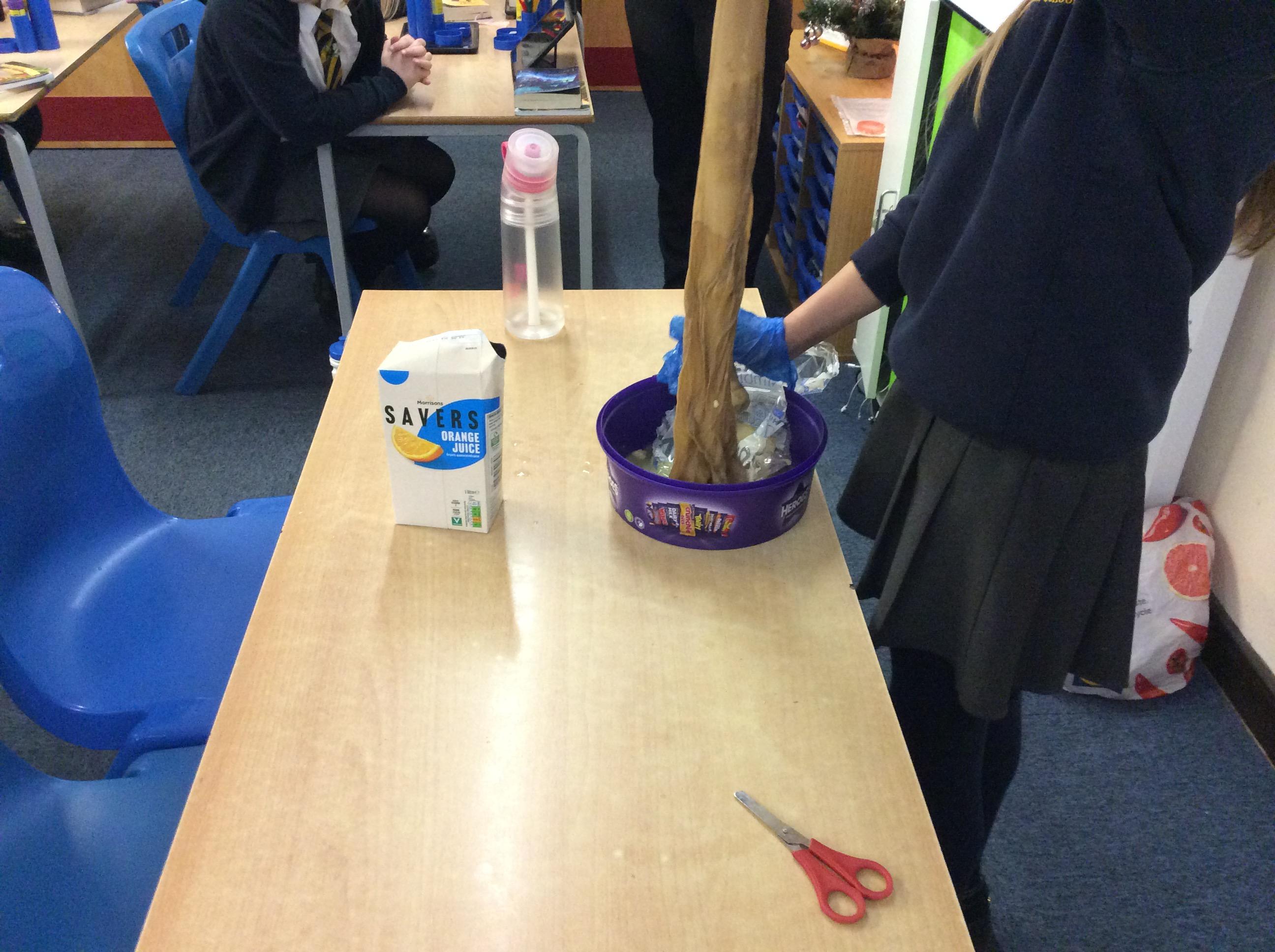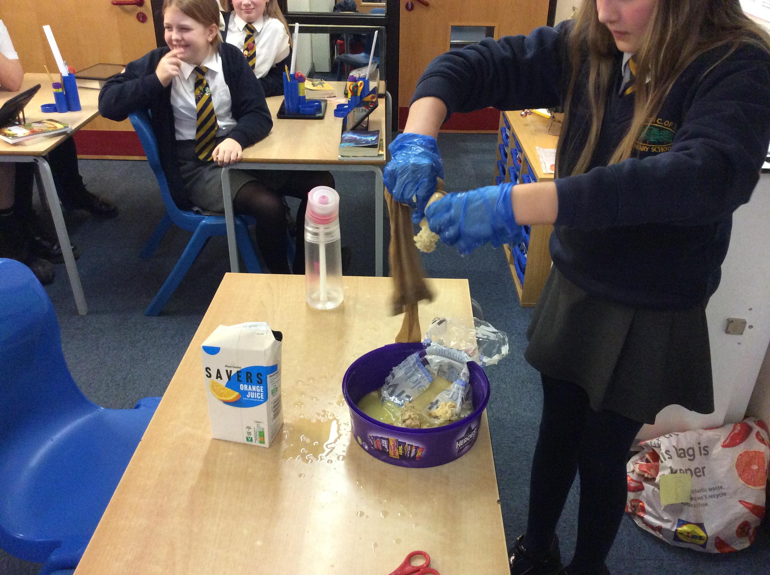 As part of science, we have been learning about the digestive system. There were lots of people who felt very brave and volunteered to help recreate the process.