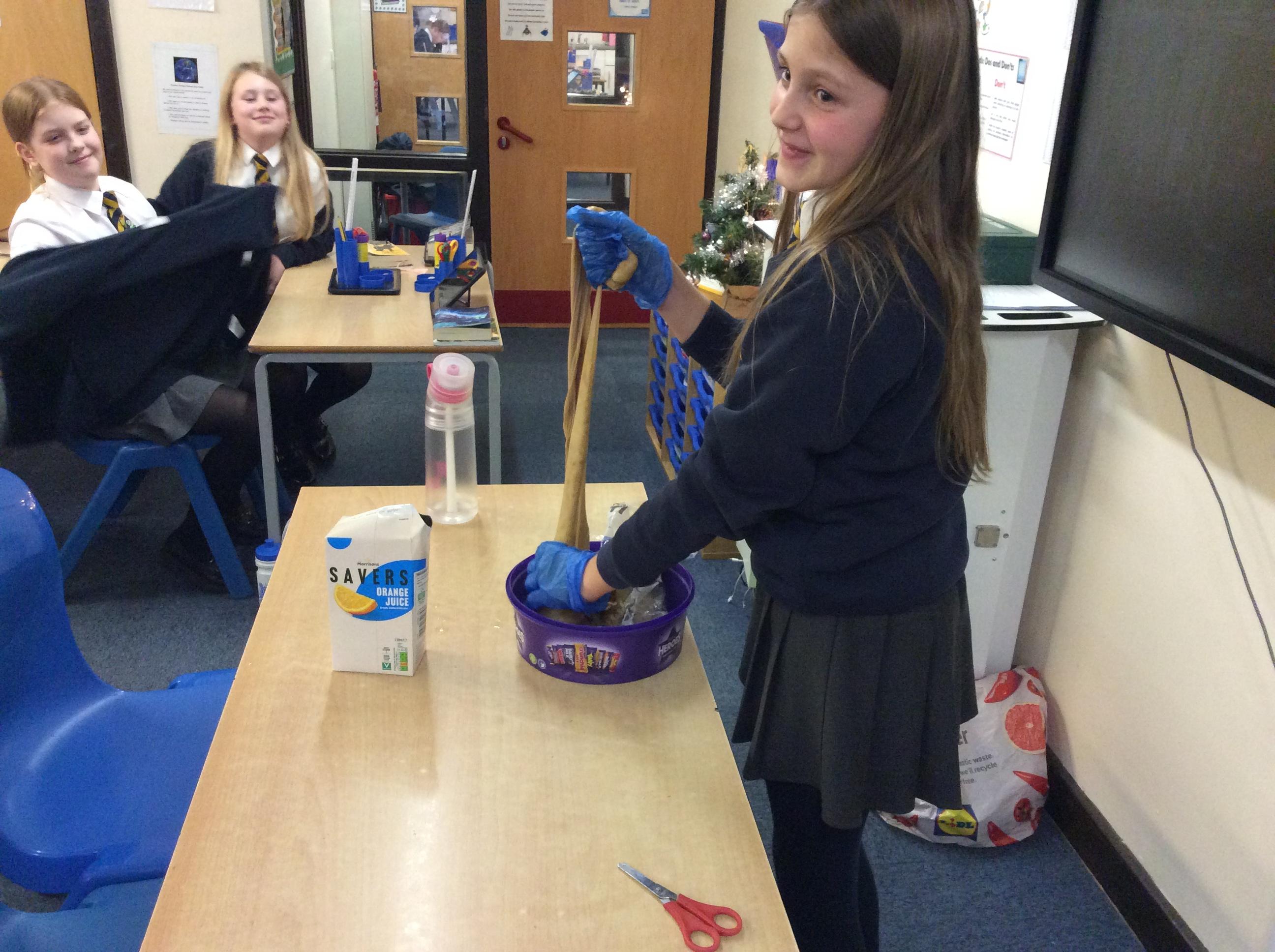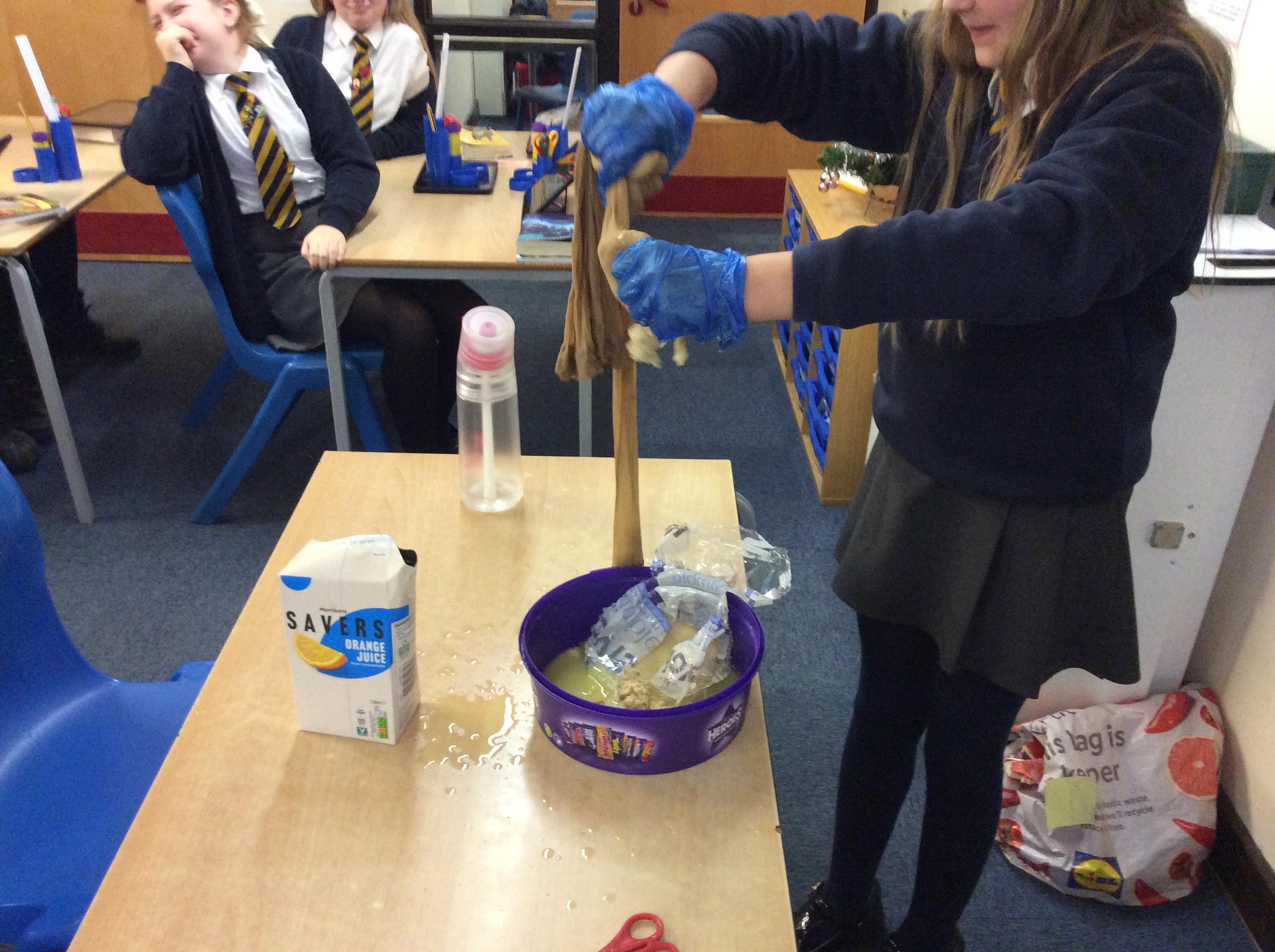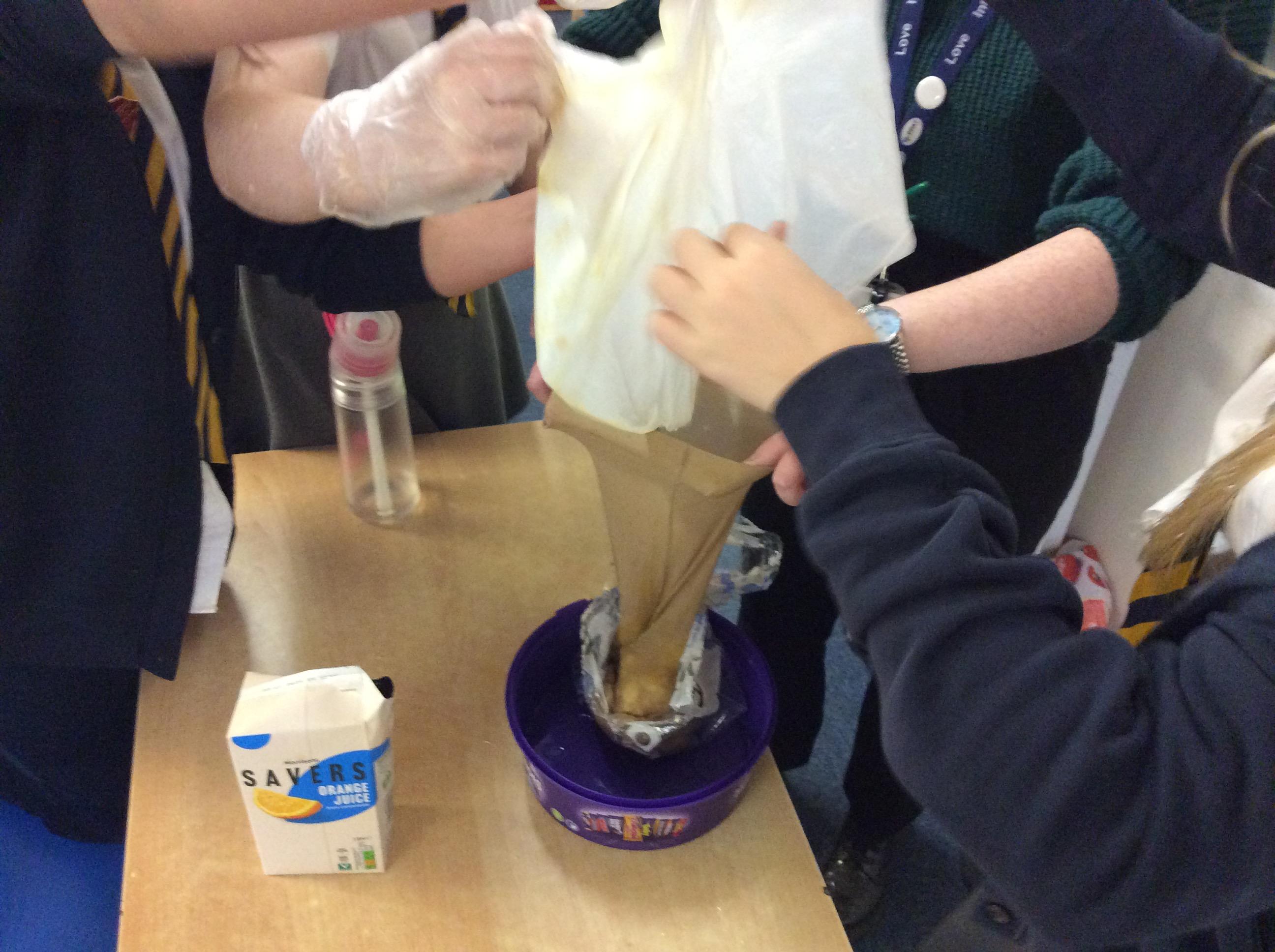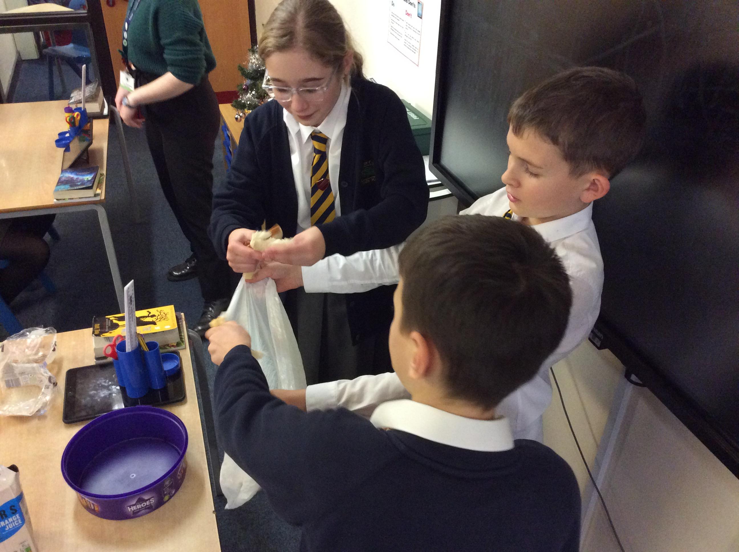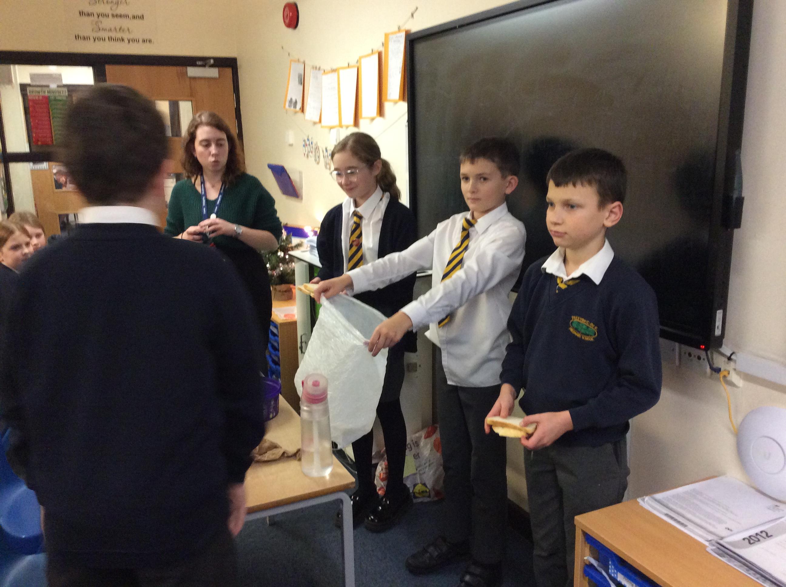 As part of science, we have been learning about the digestive system. There were lots of people who felt very brave and volunteered to help recreate the process.