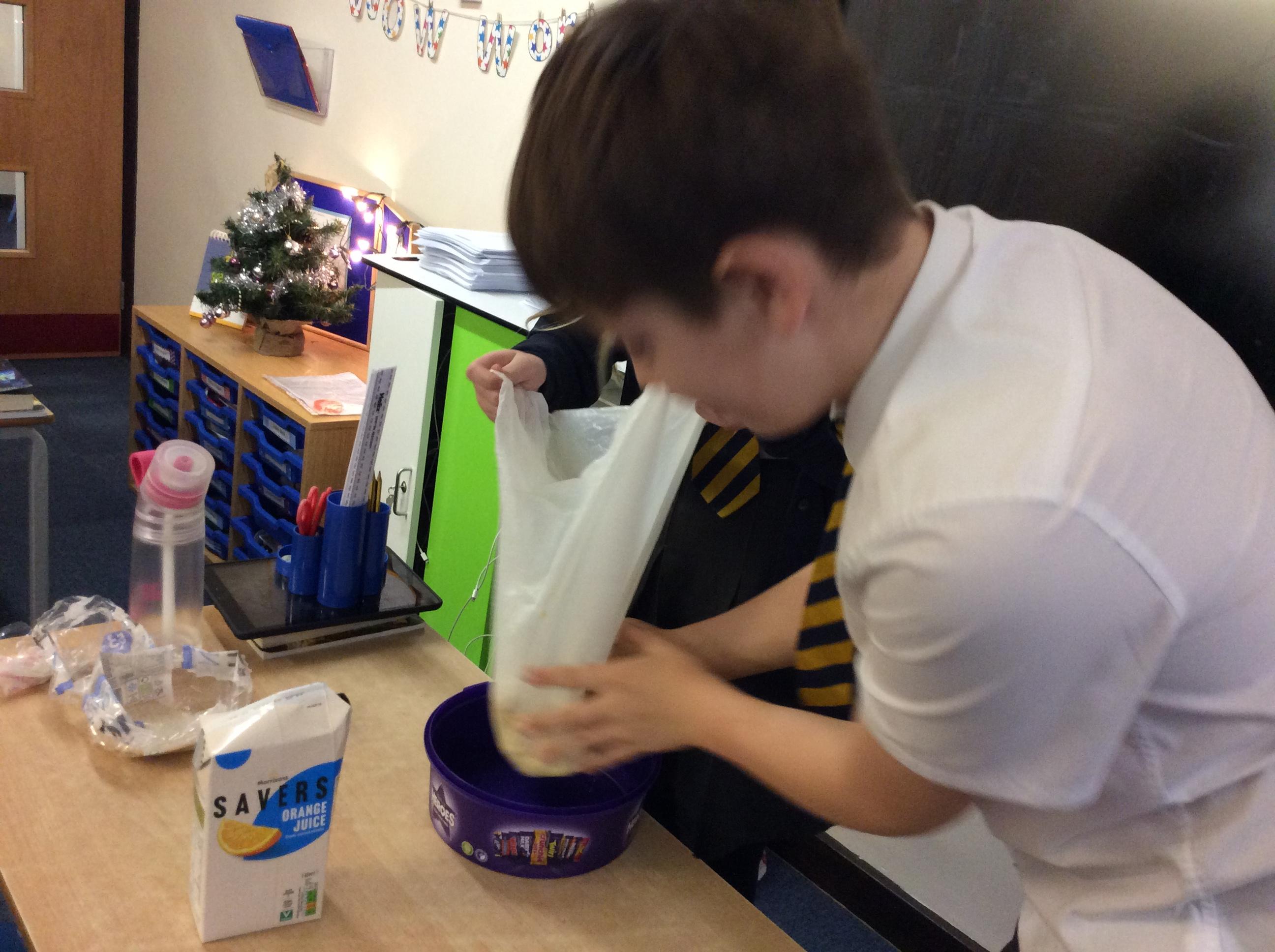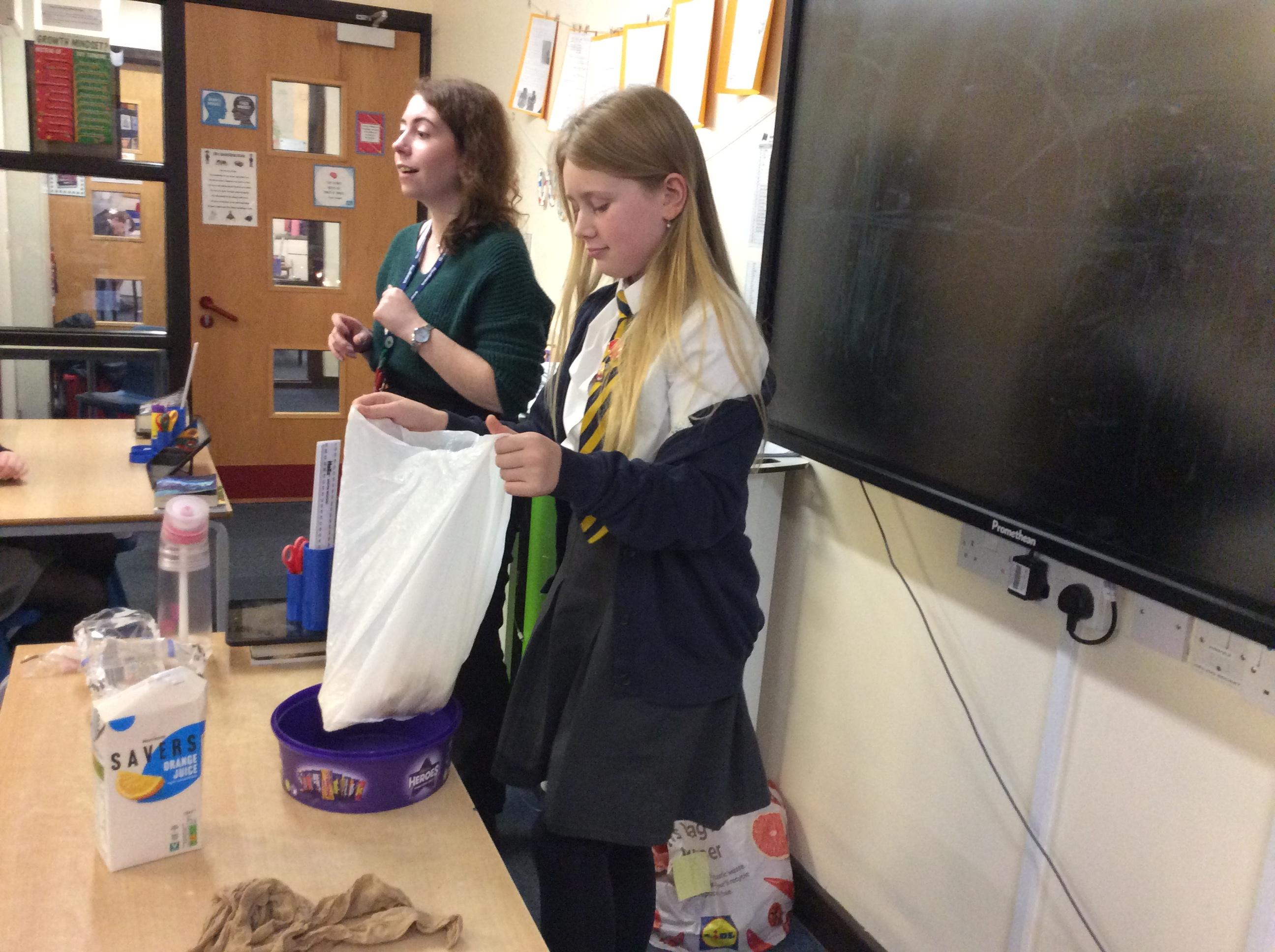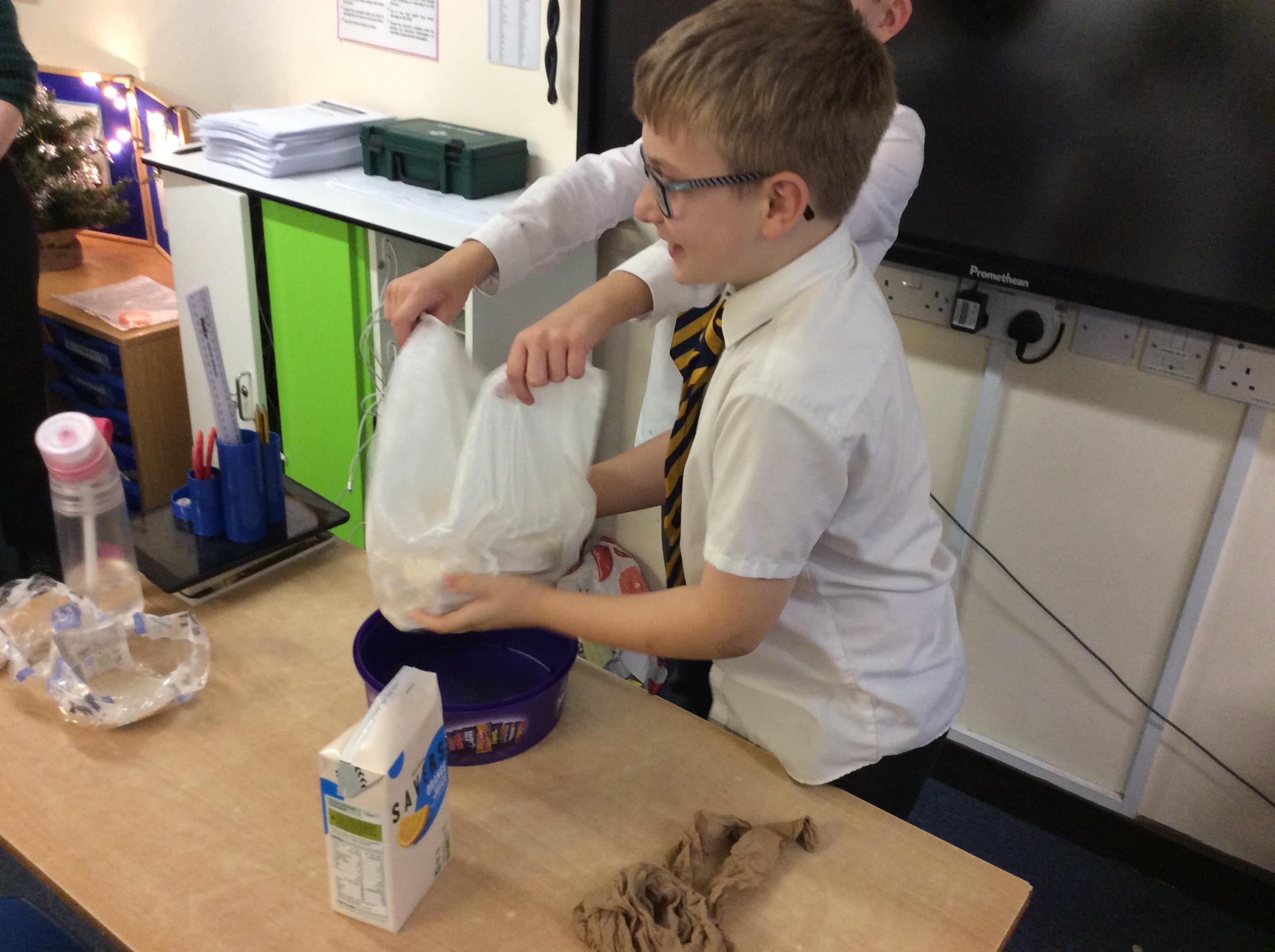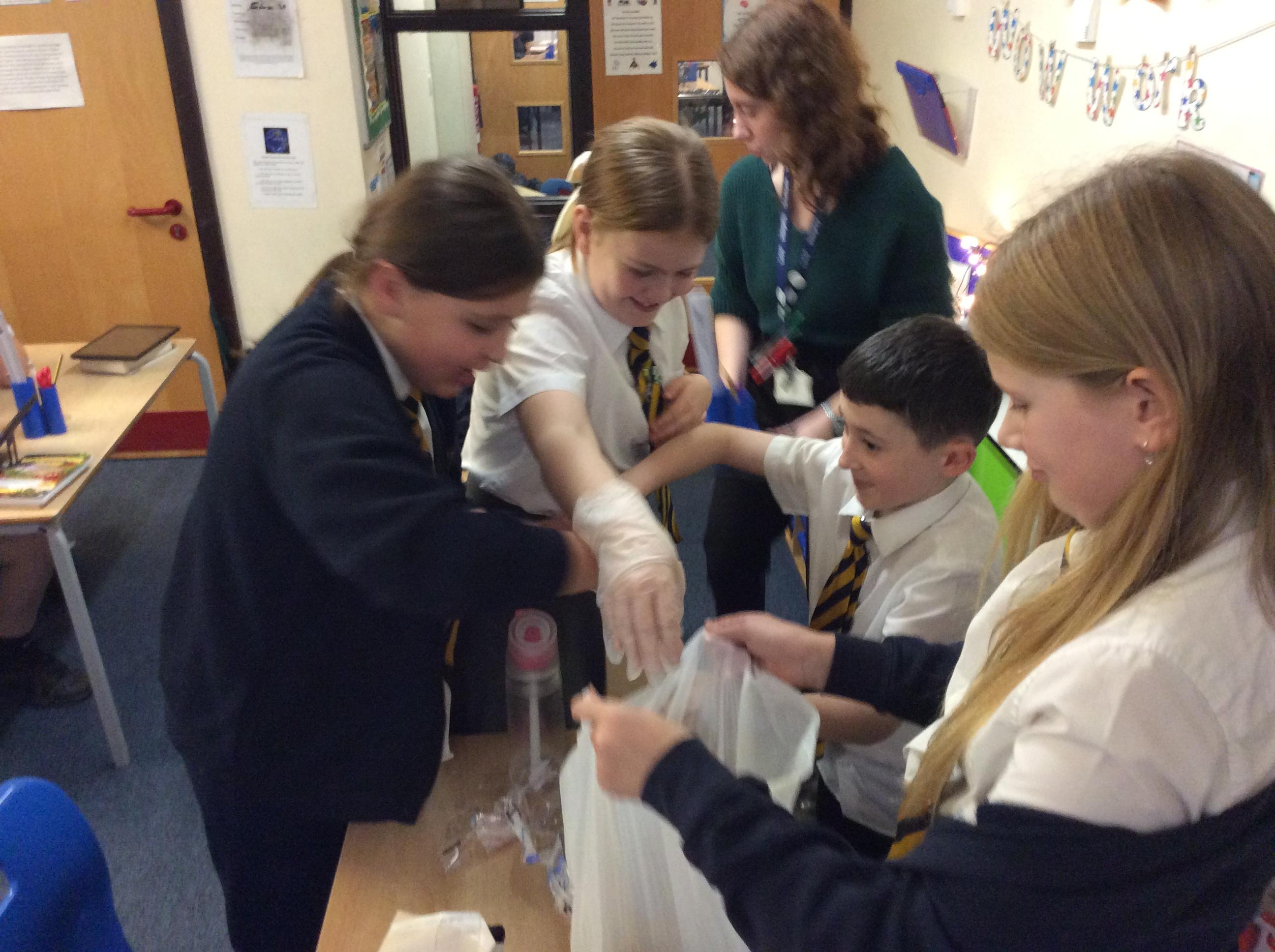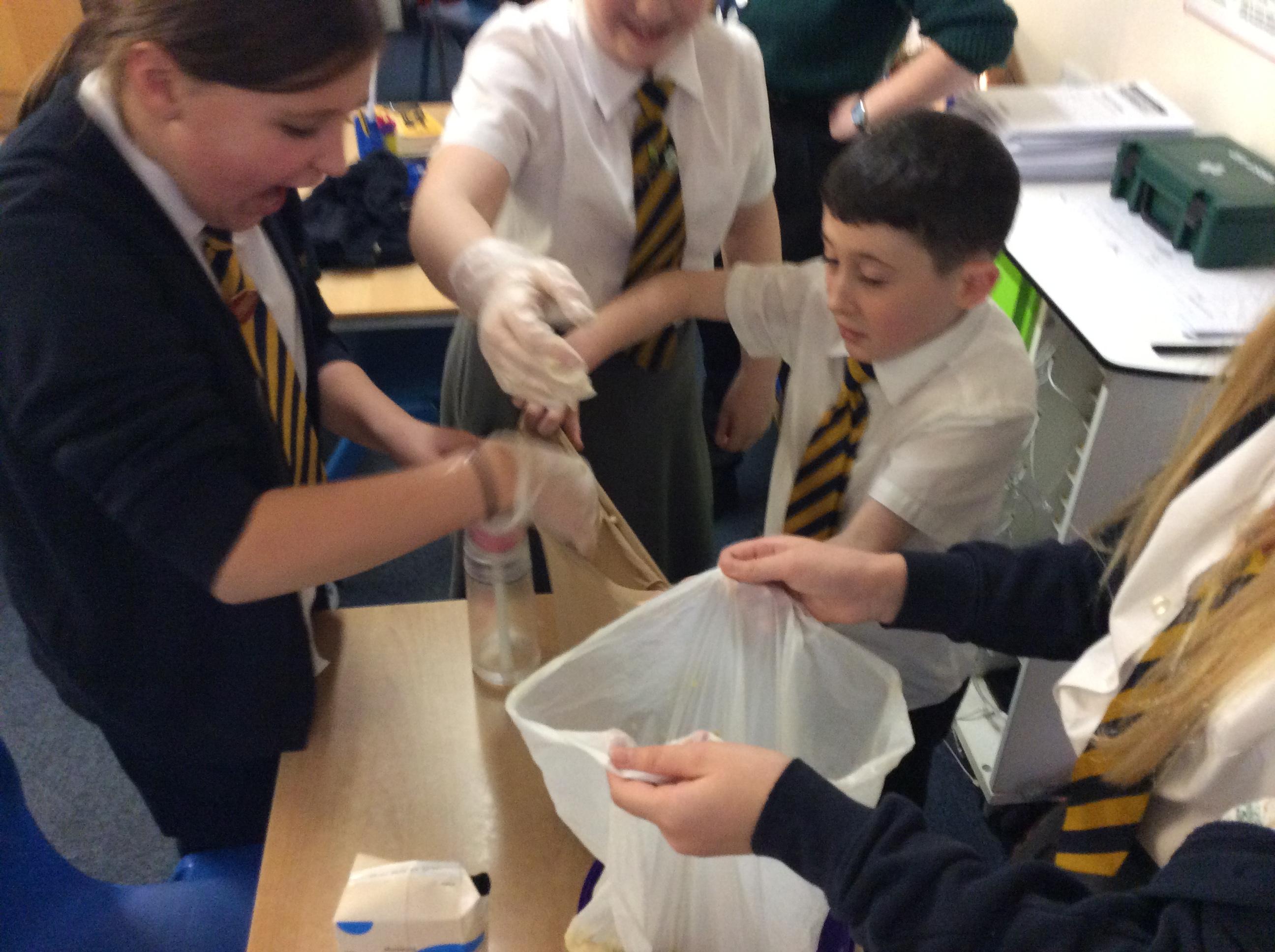 As part of science, we have been learning about the digestive system. There were lots of people who felt very brave and volunteered to help recreate the process.