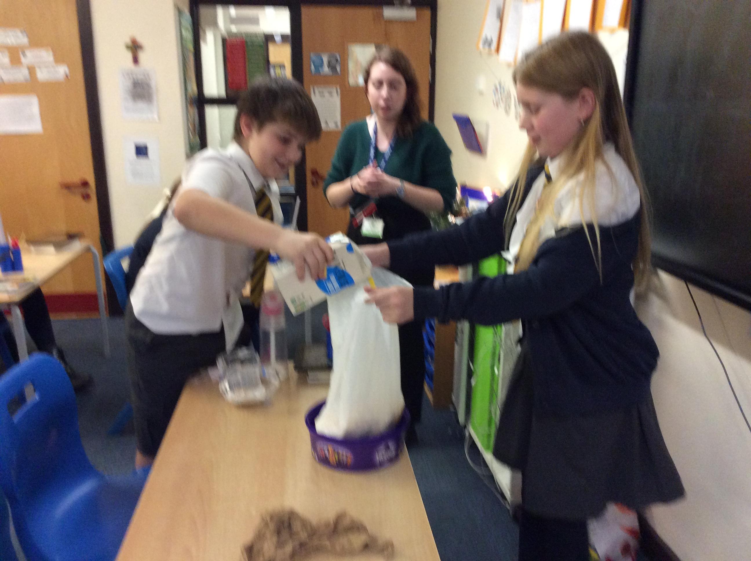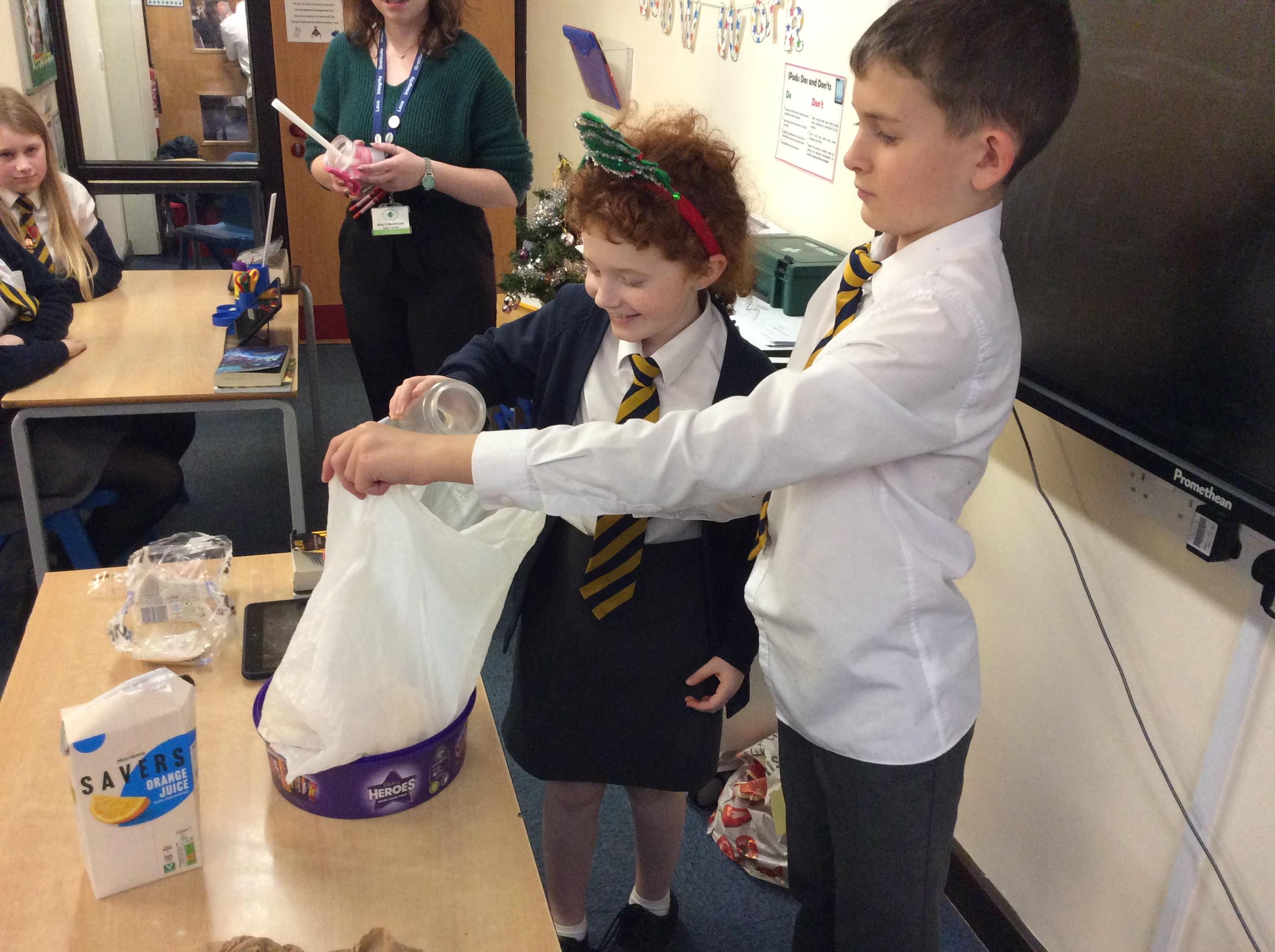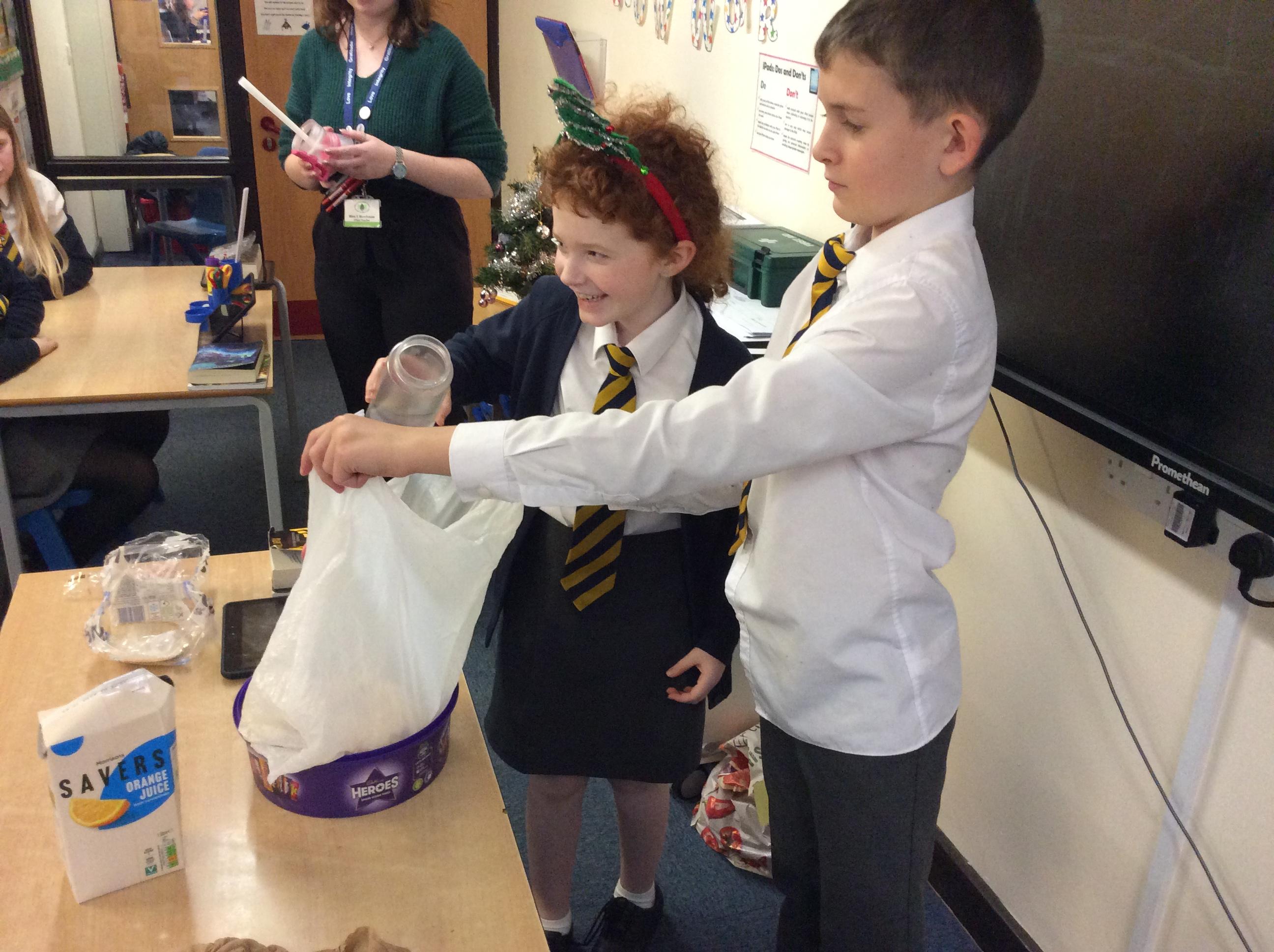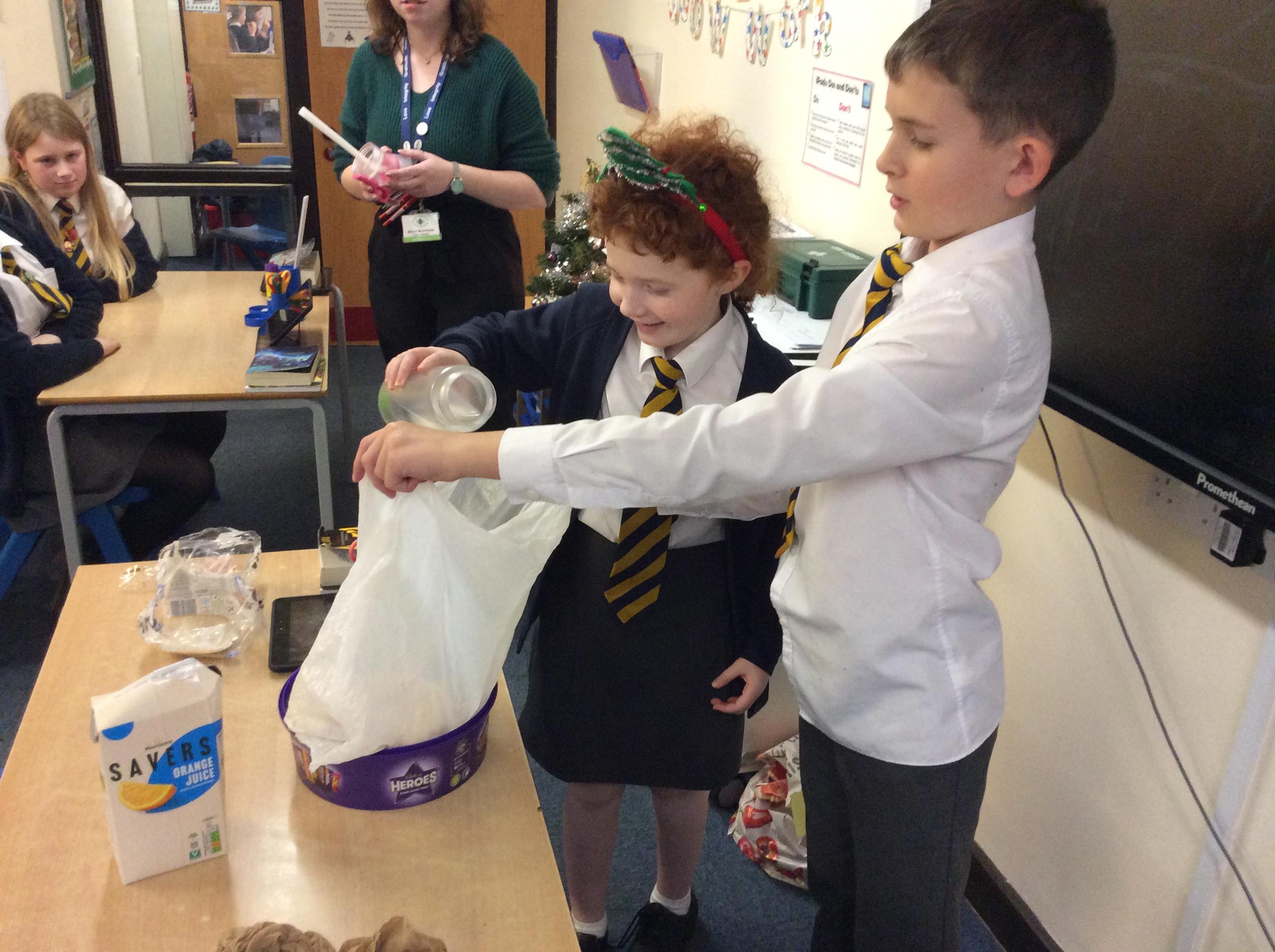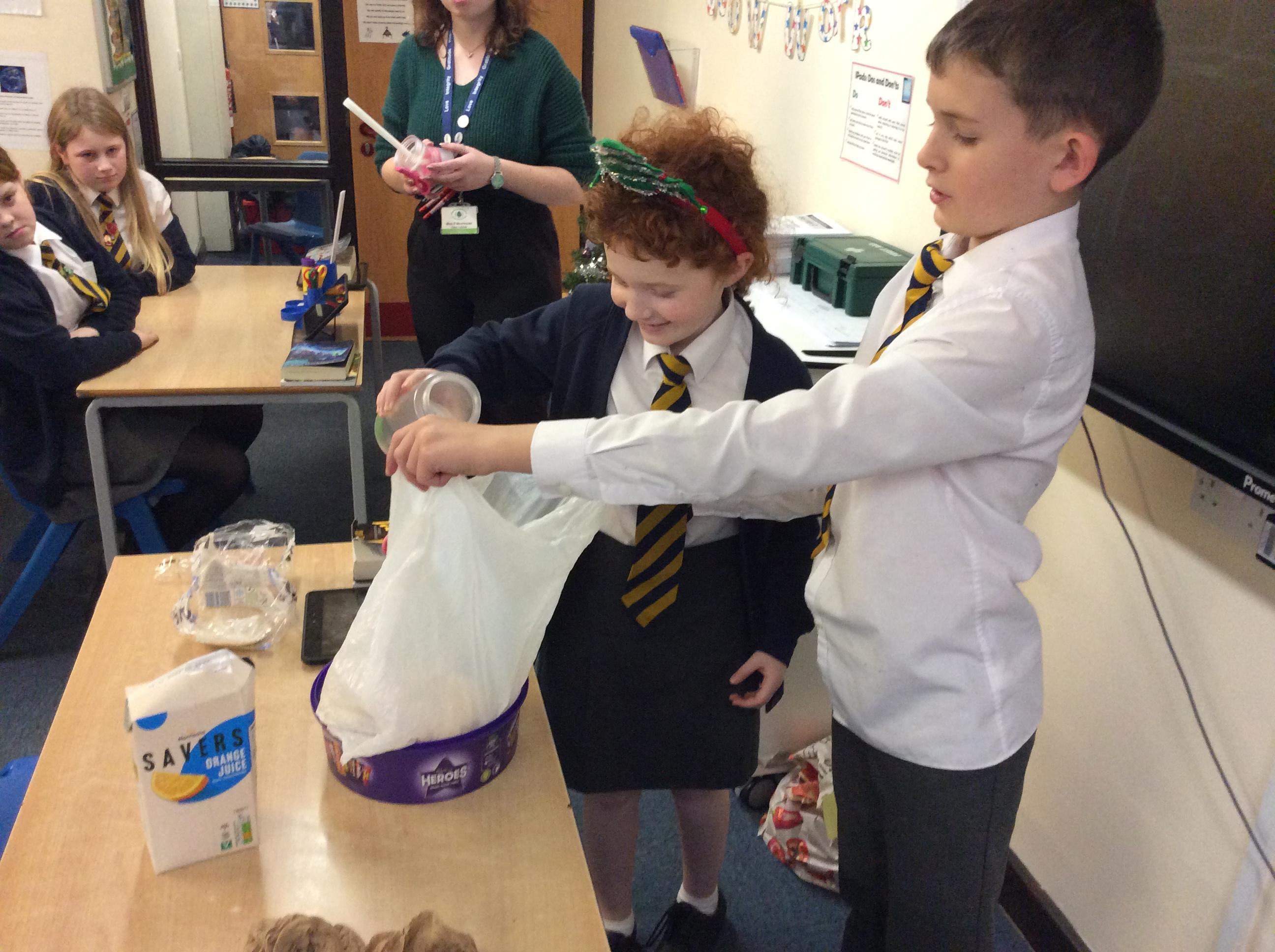 As part of science, we have been learning about the digestive system. There were lots of people who felt very brave and volunteered to help recreate the process.