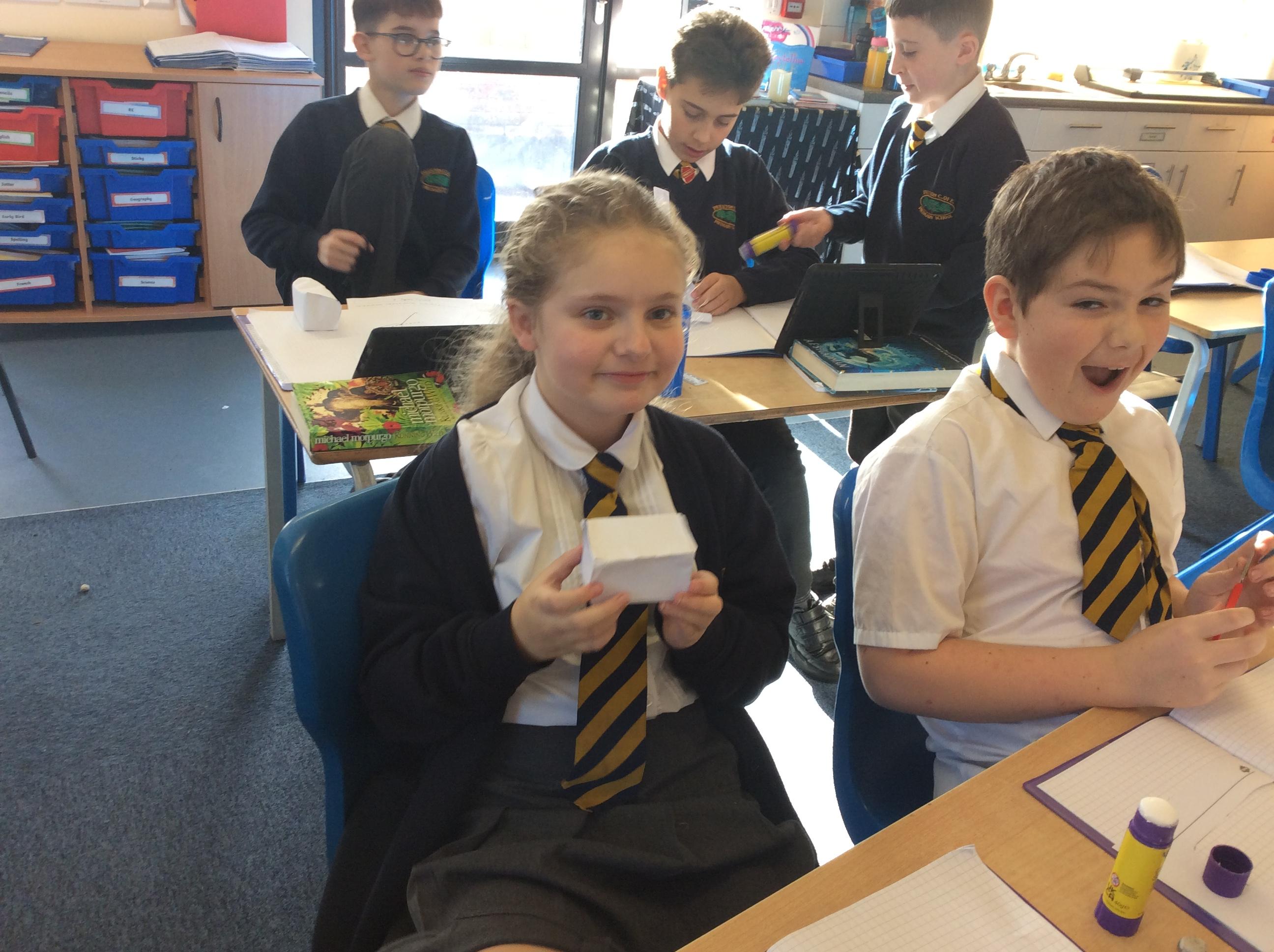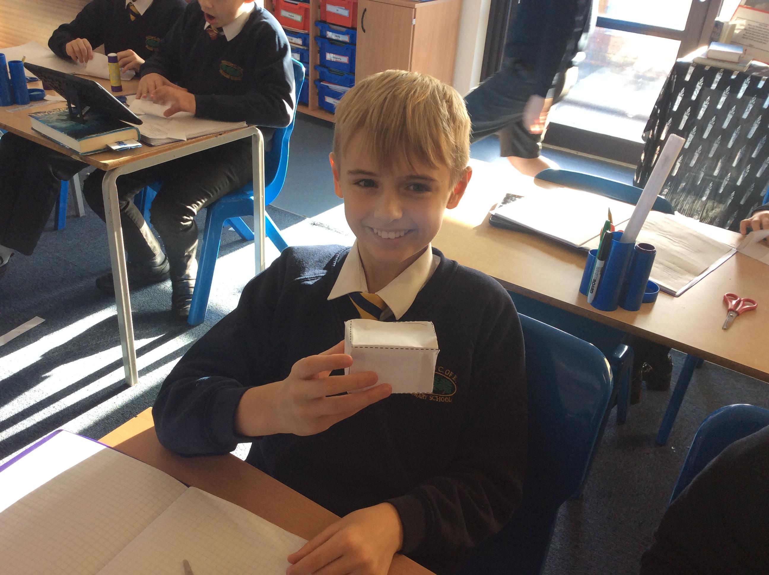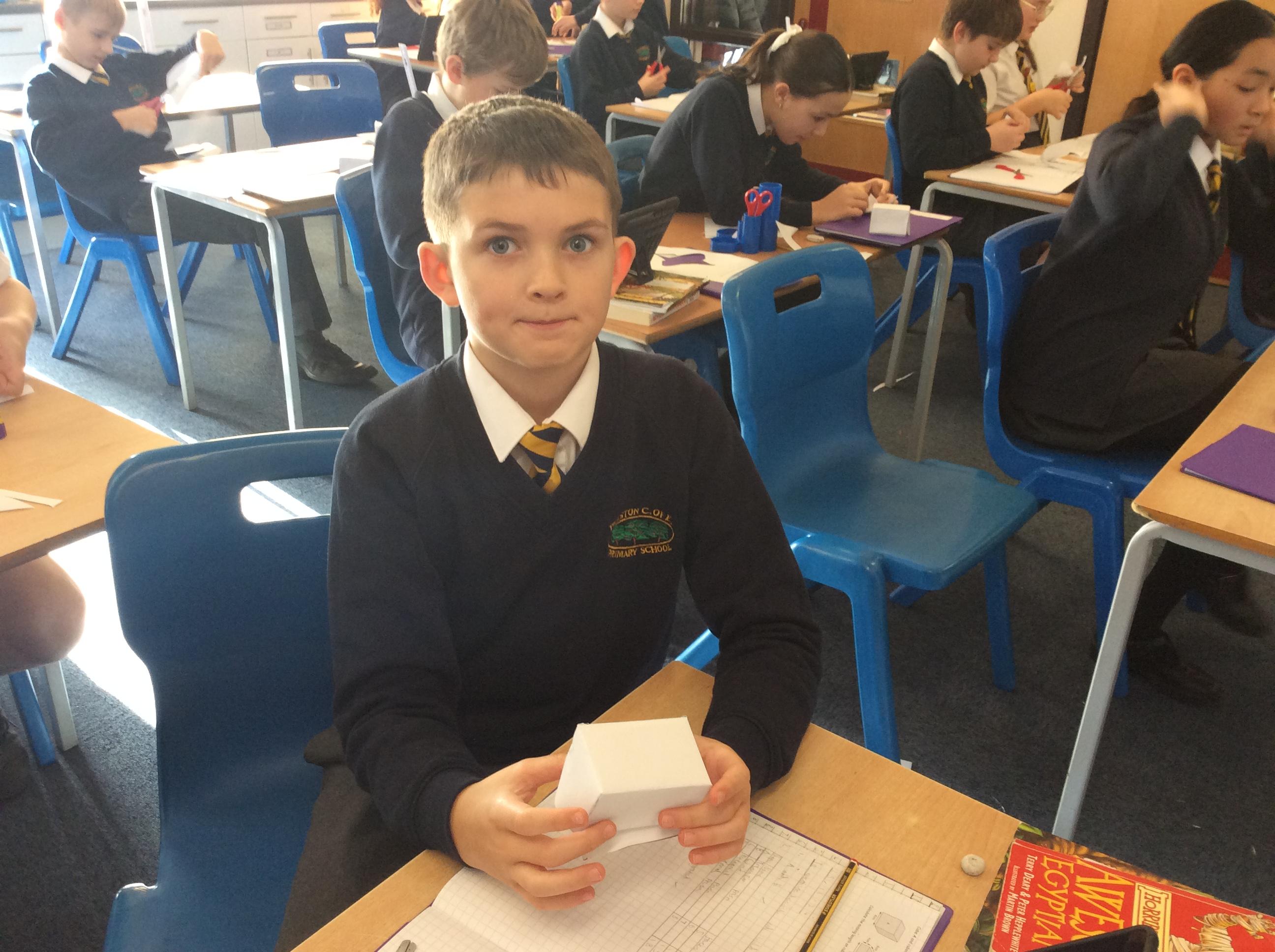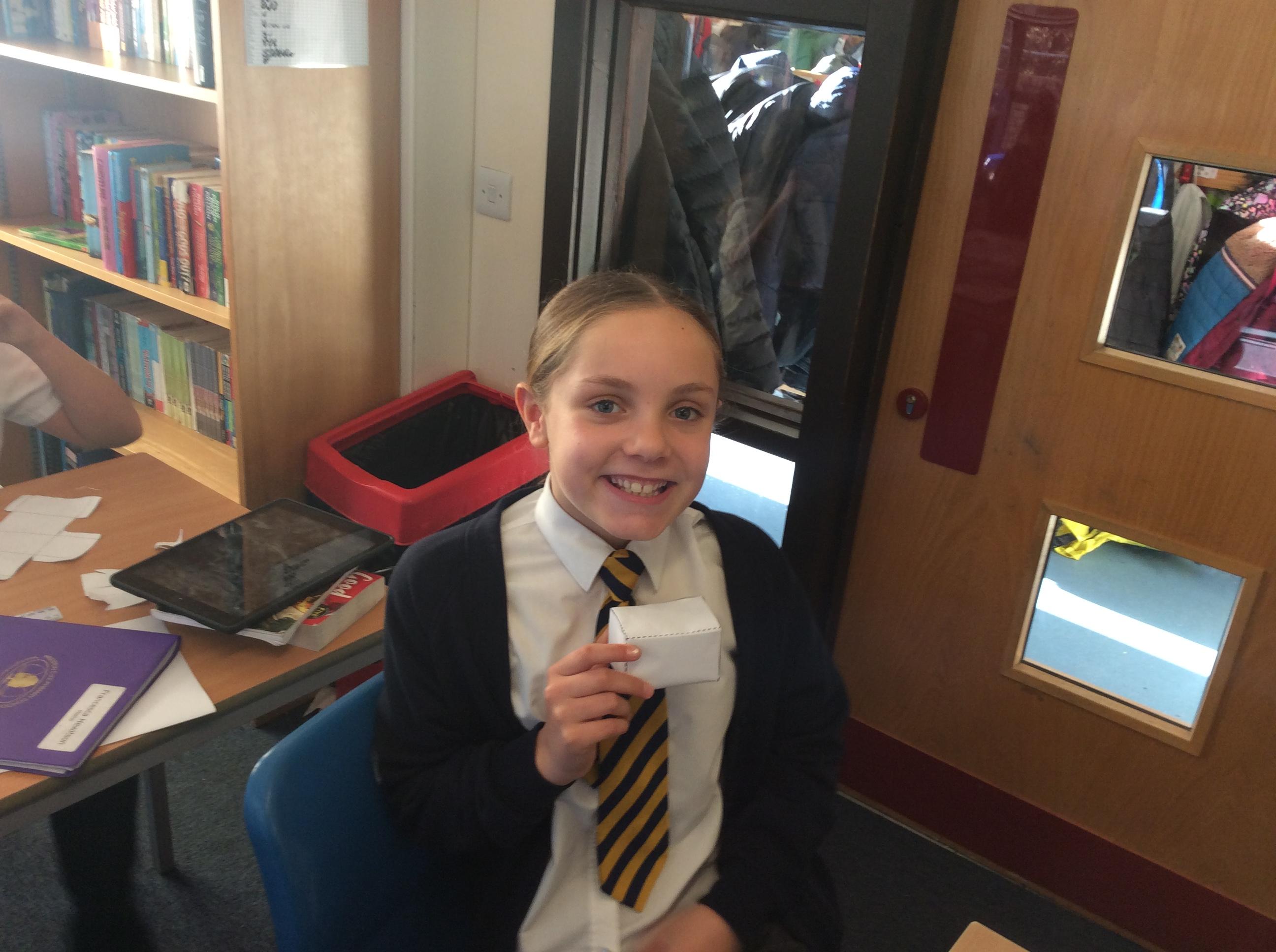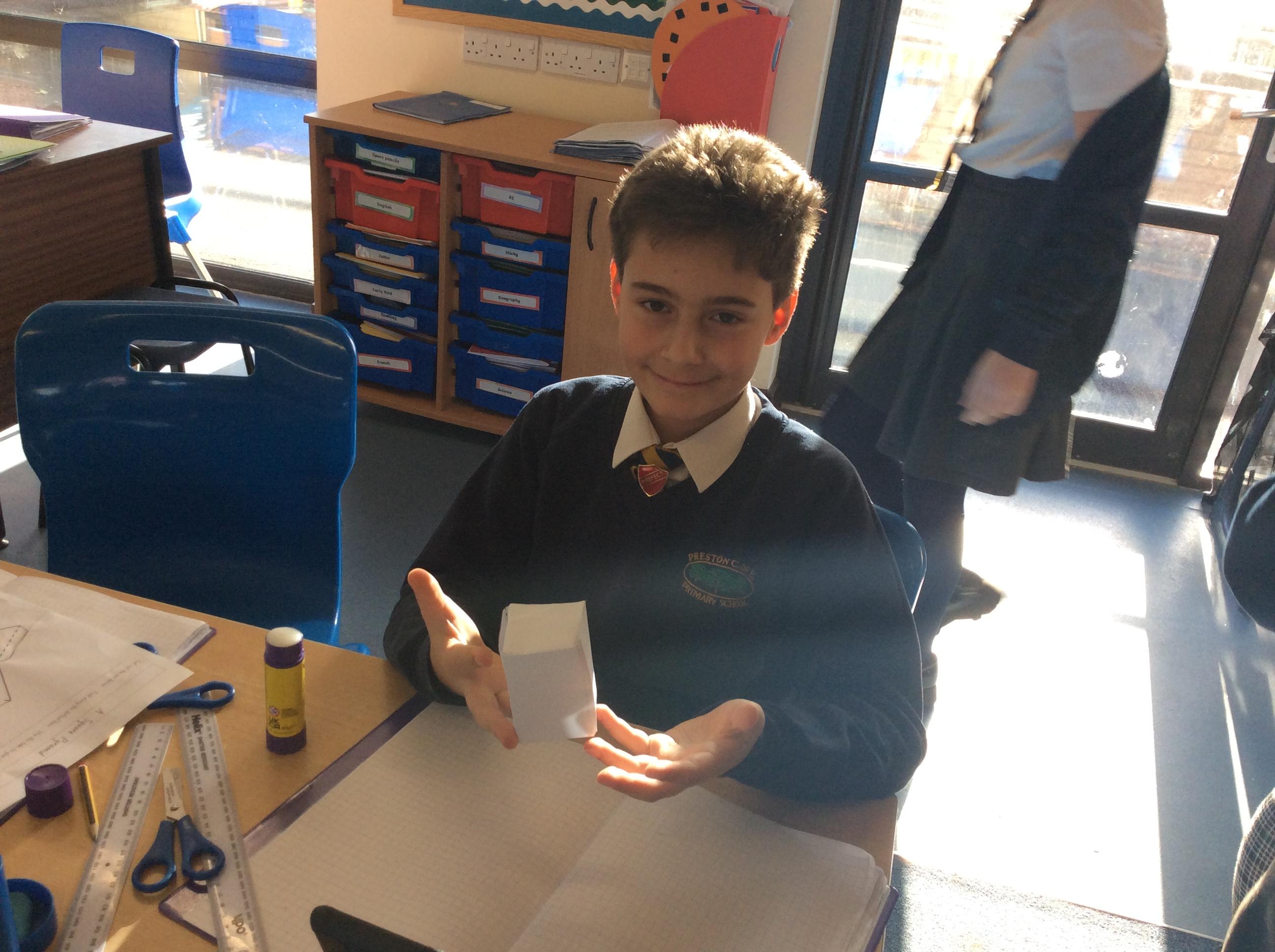 As part of our maths this week, we have been learning about and making nets of 3-D shapes. We started easy with basic cuboids and then moved on to more difficult prisms and pyramids.