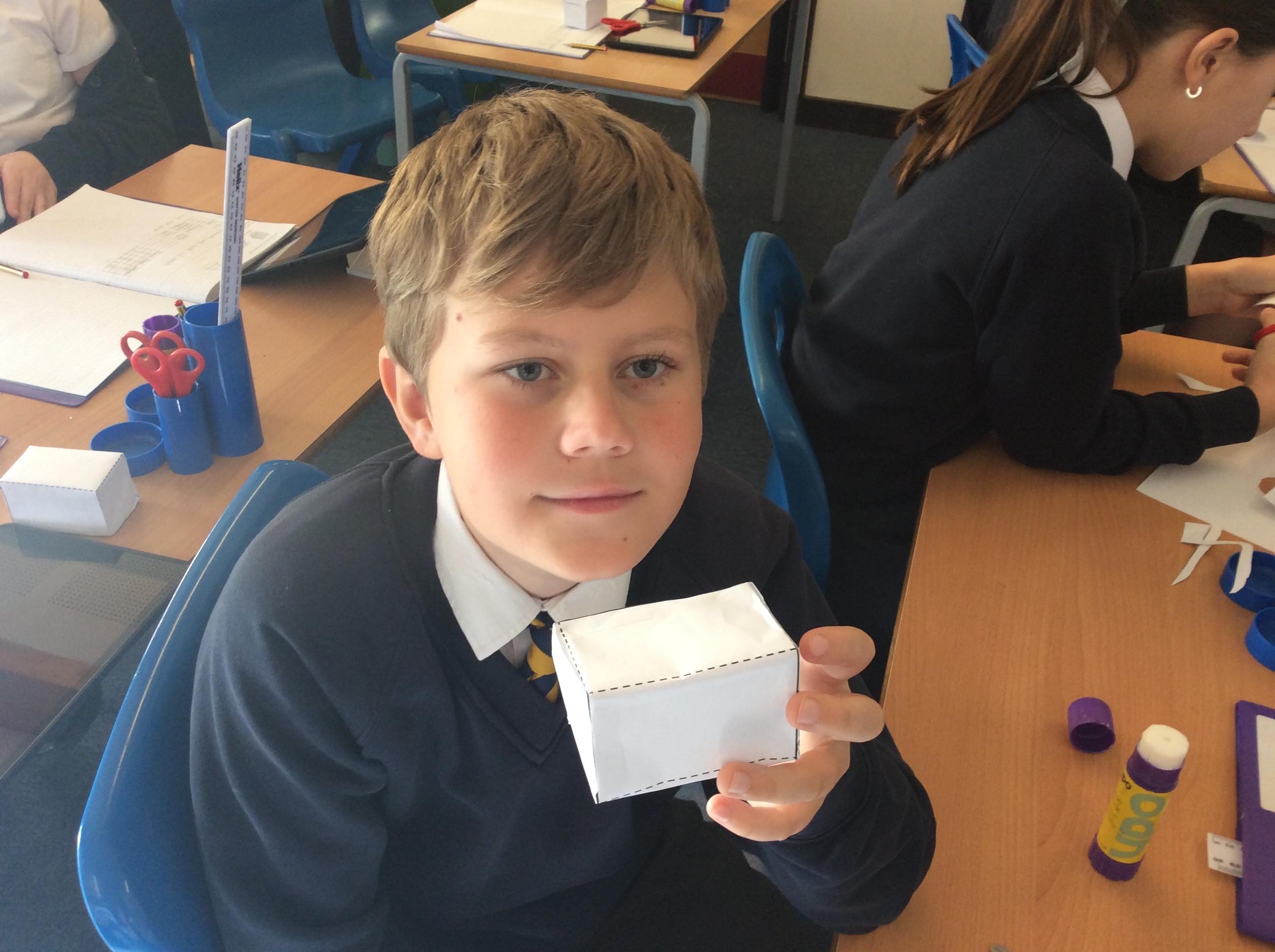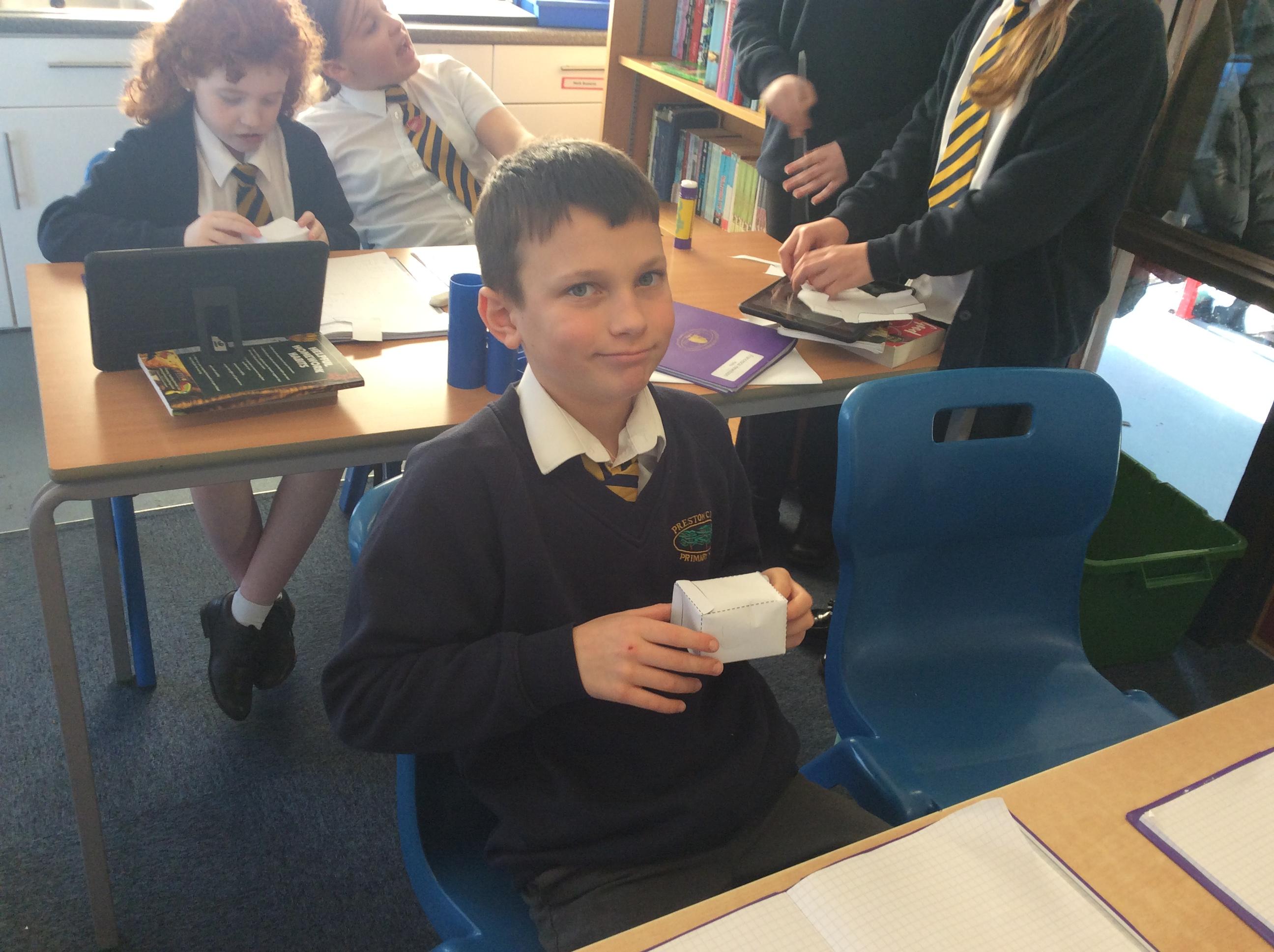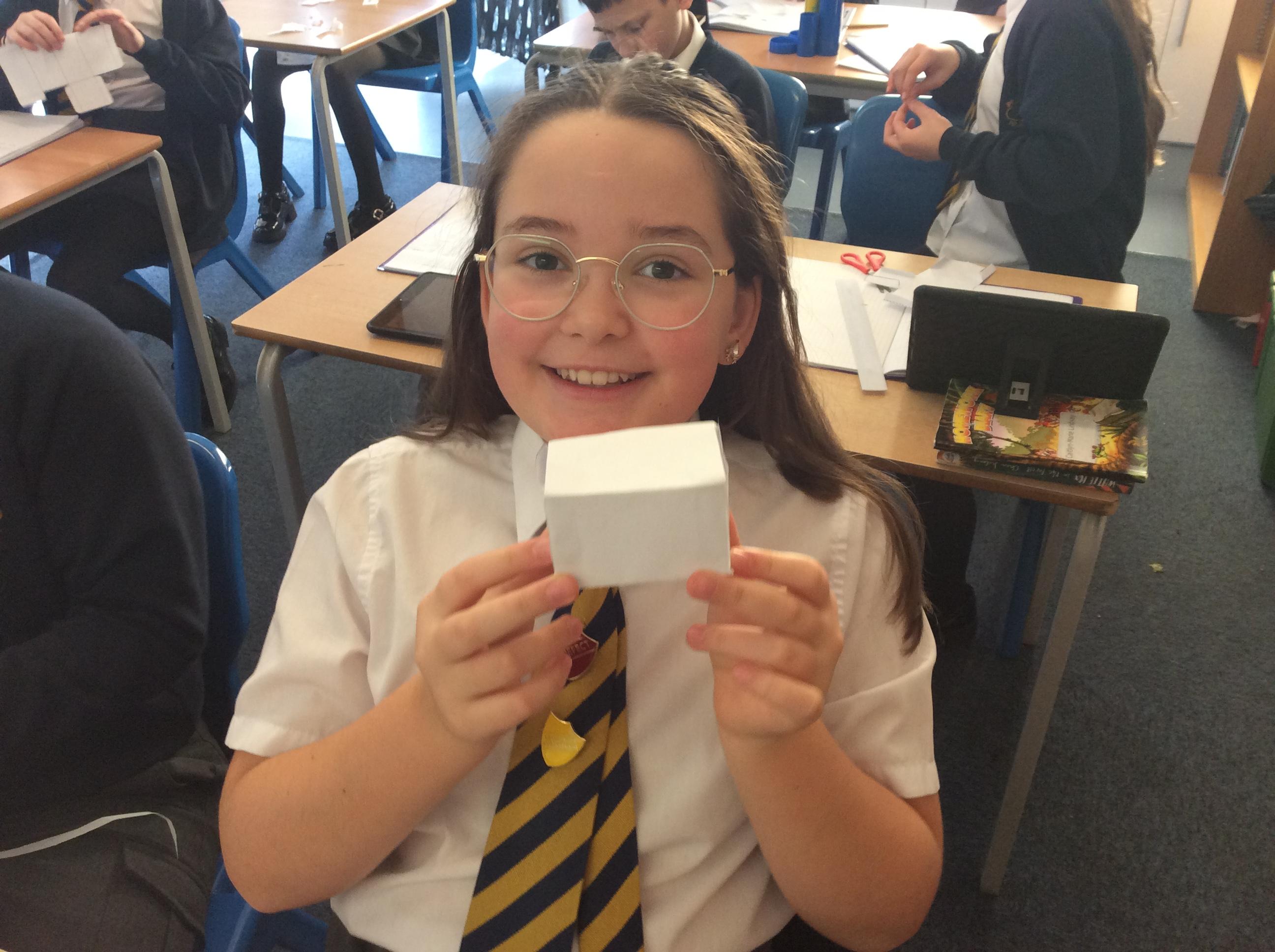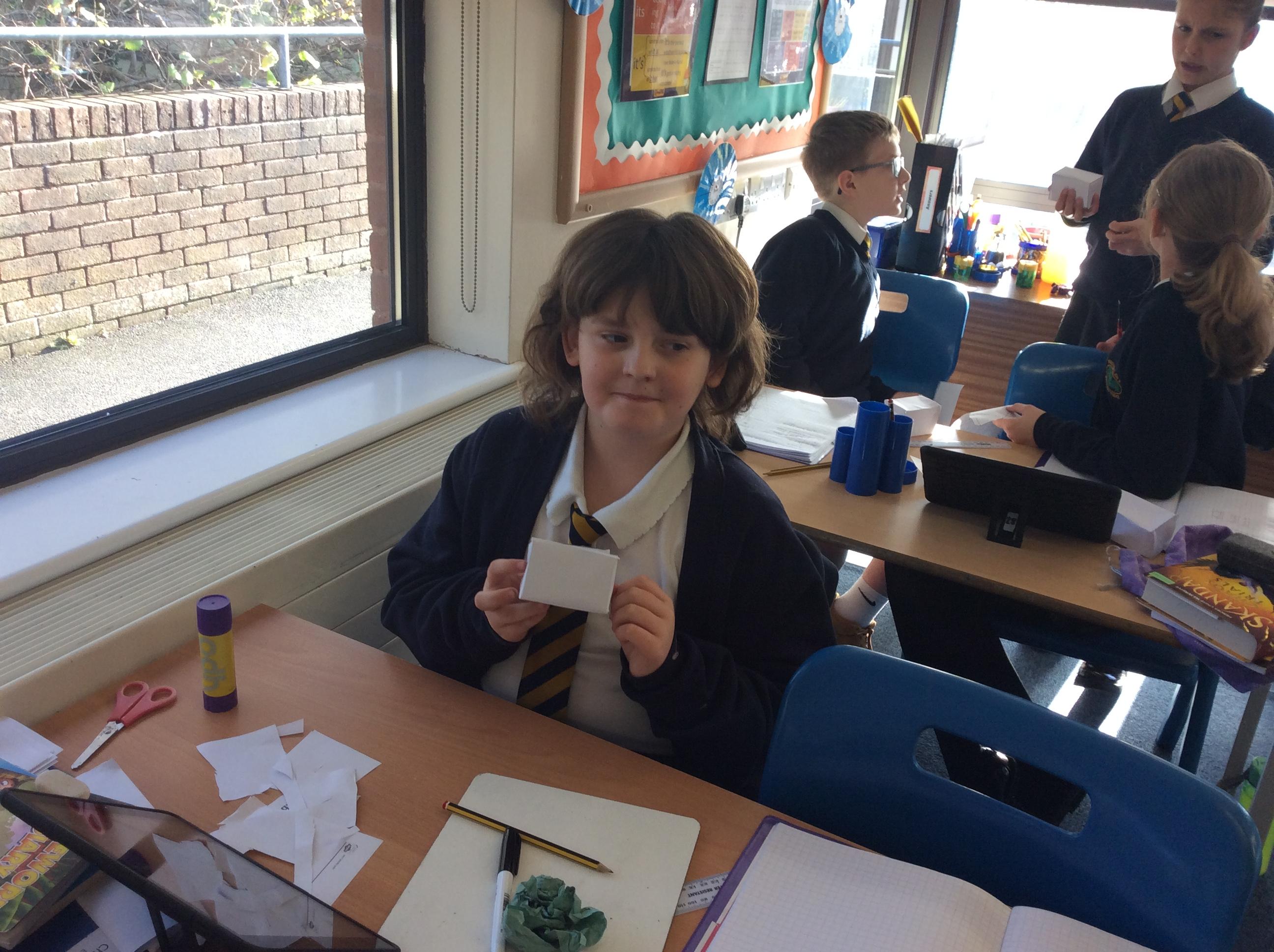 As part of our maths this week, we have been learning about and making nets of 3-D shapes. We started easy with basic cuboids and then moved on to more difficult prisms and pyramids.