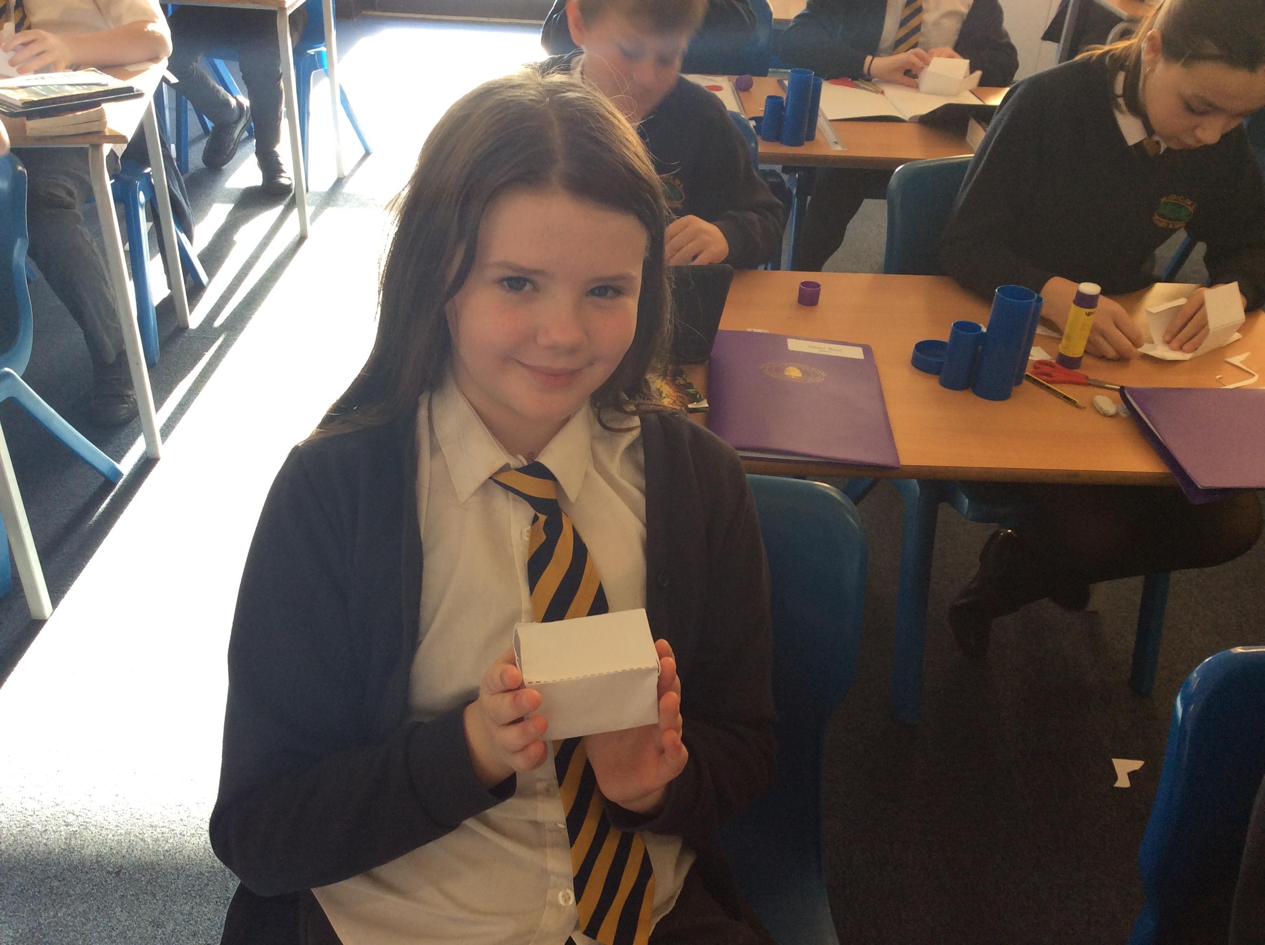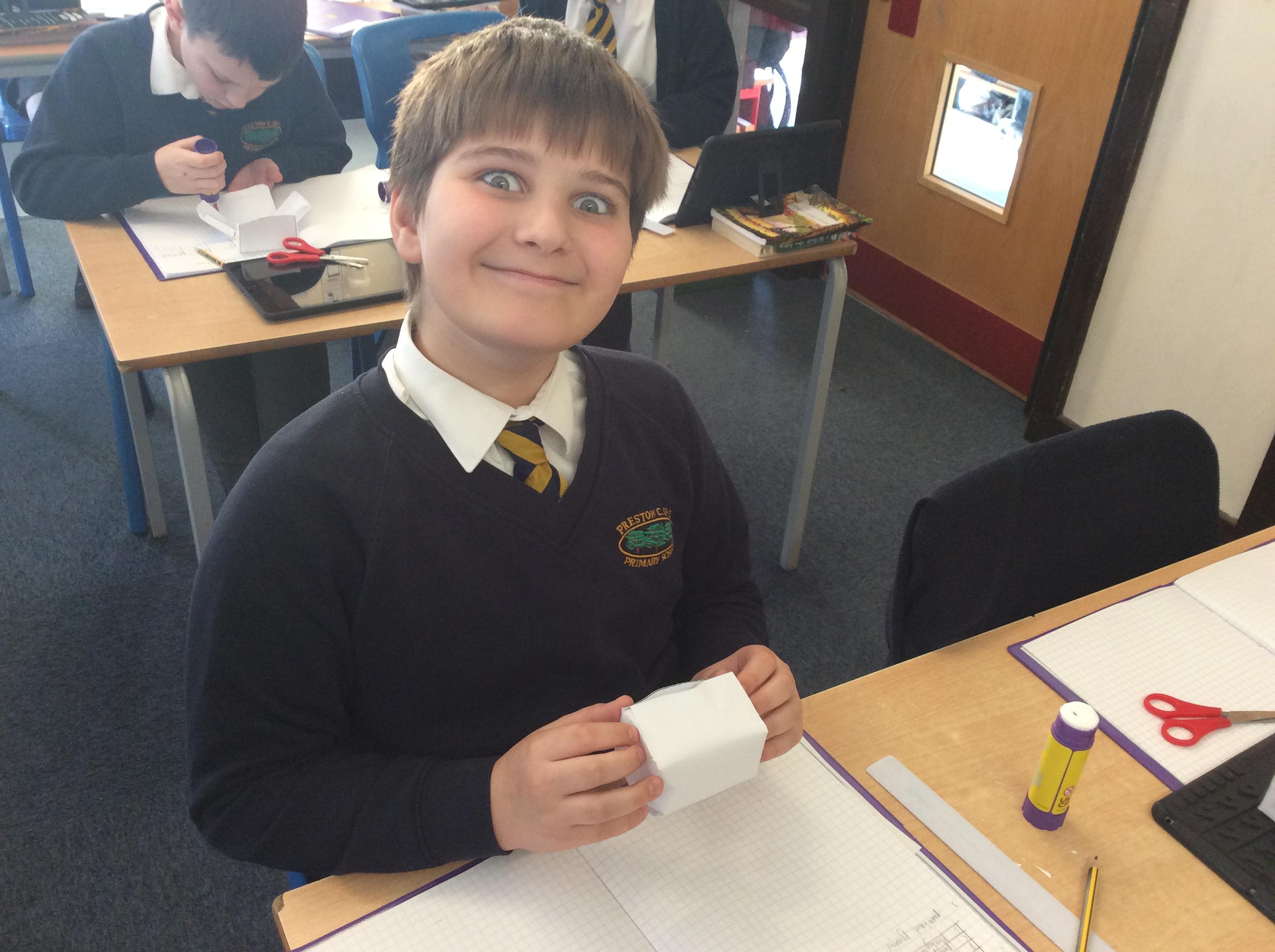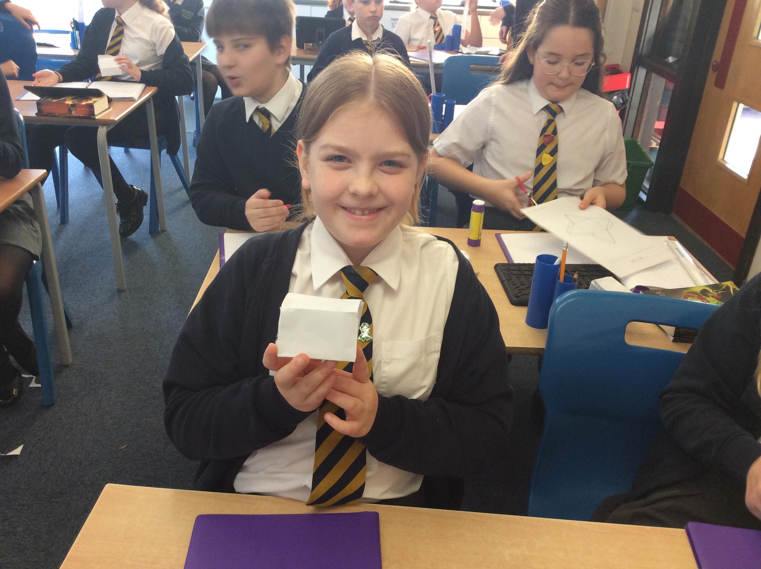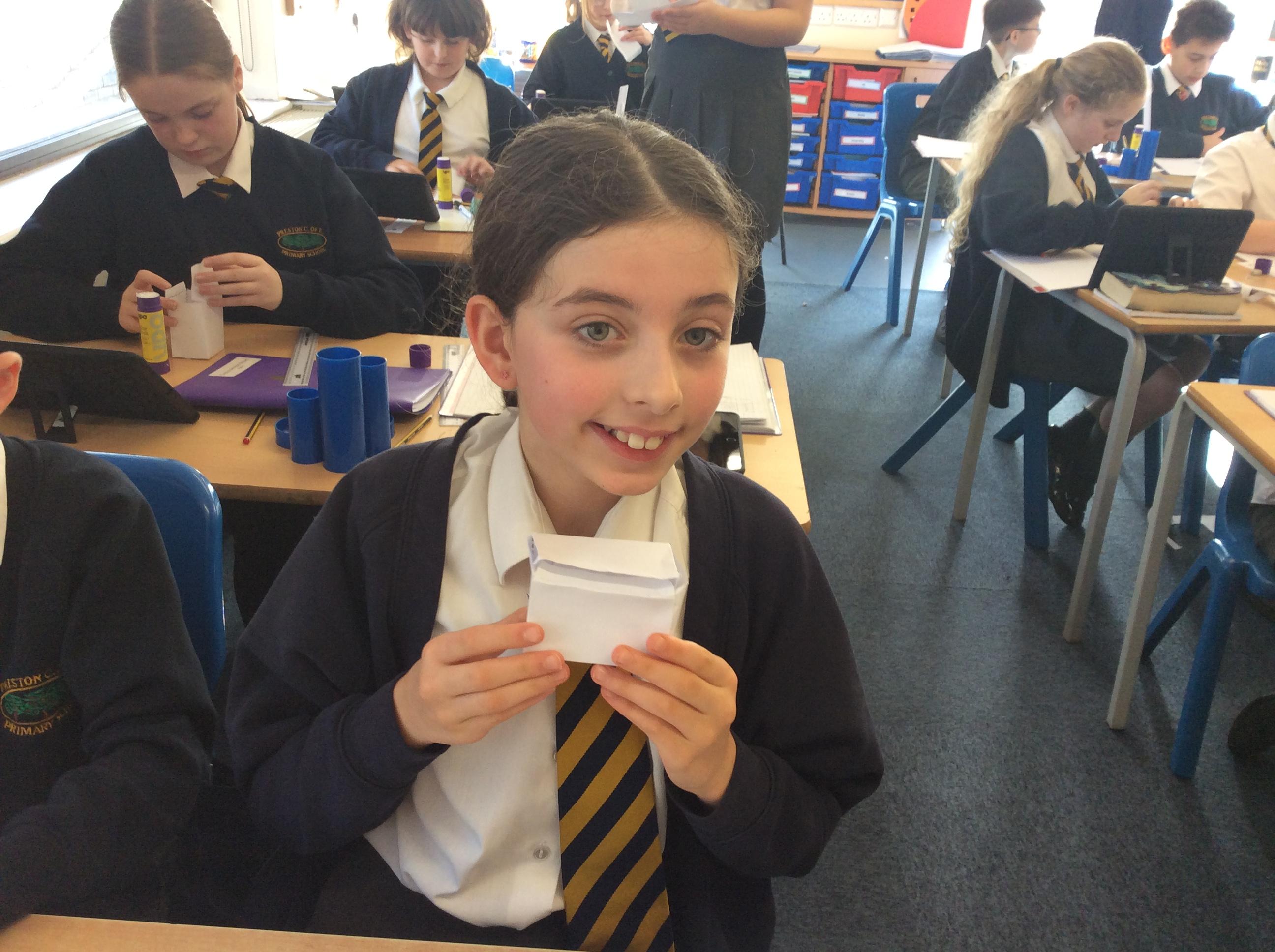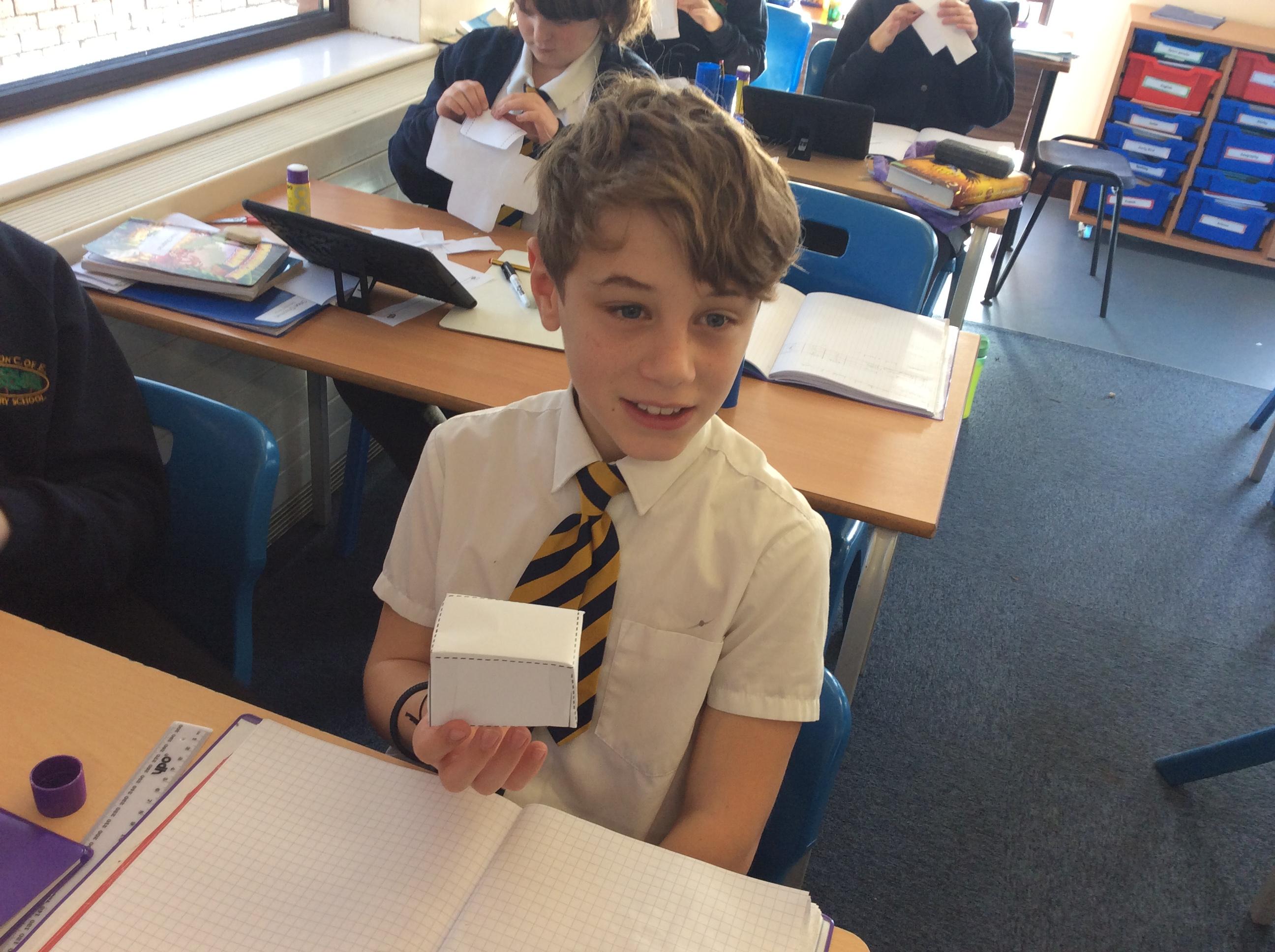 As part of our maths this week, we have been learning about and making nets of 3-D shapes. We started easy with basic cuboids and then moved on to more difficult prisms and pyramids.