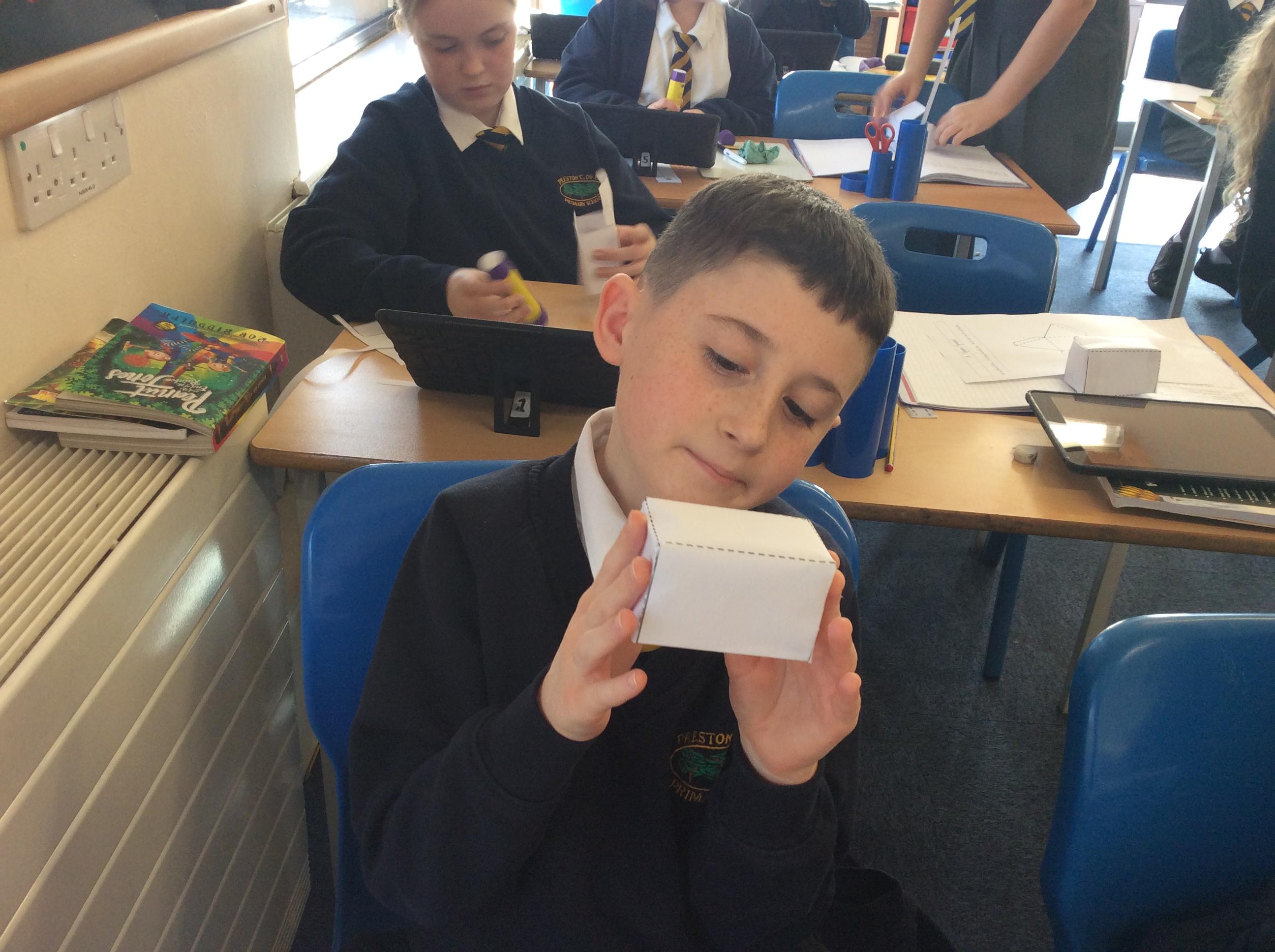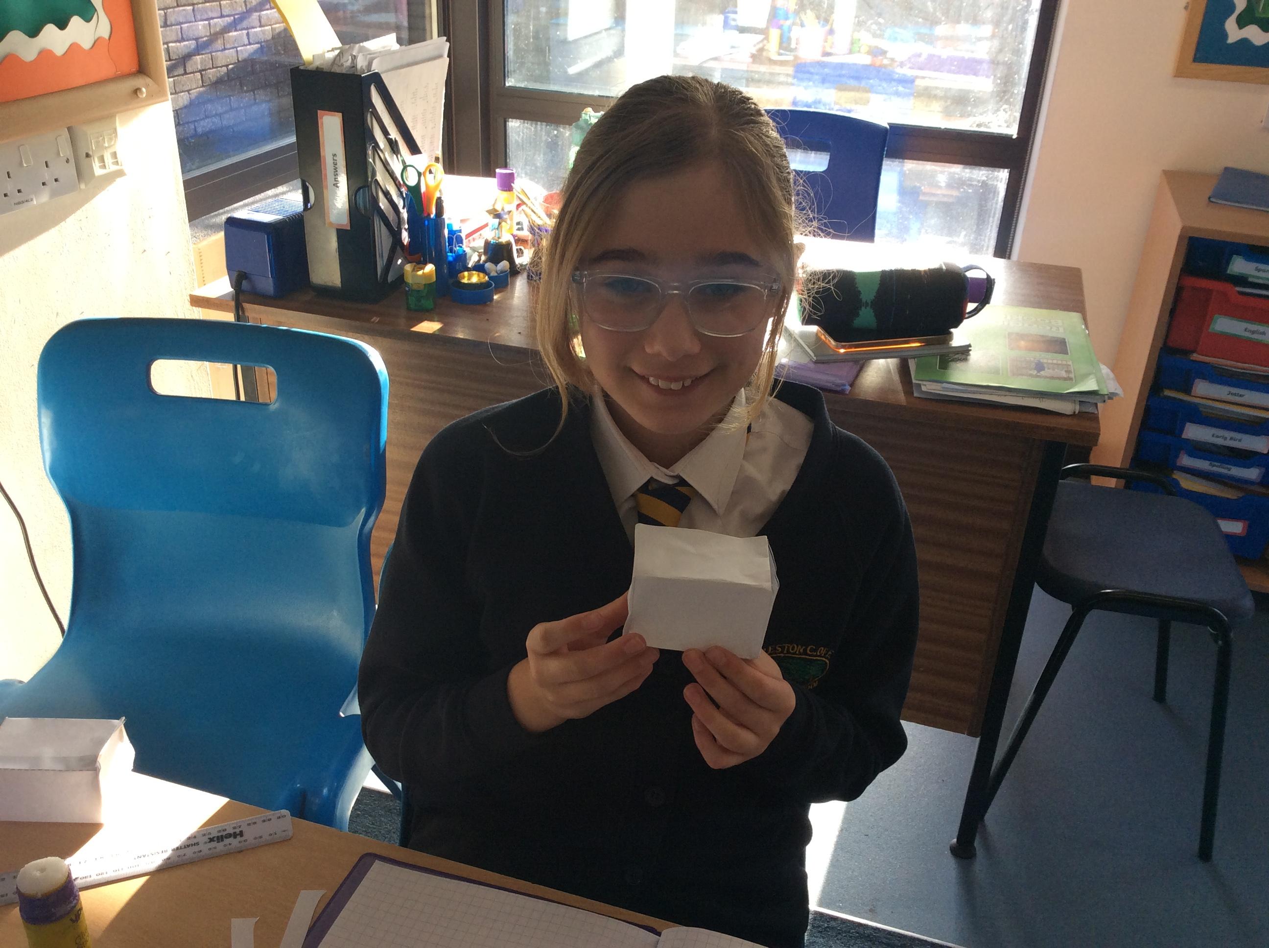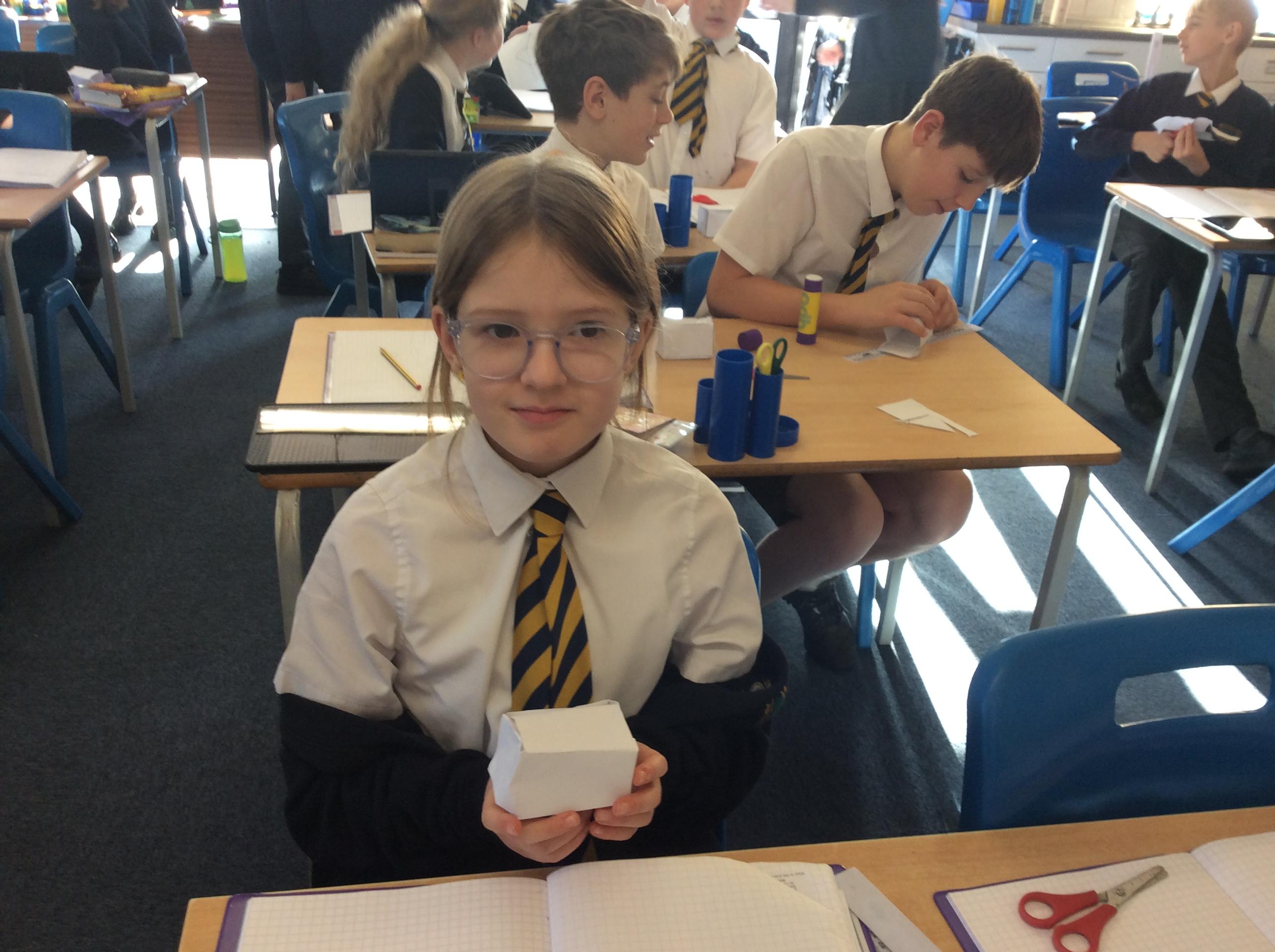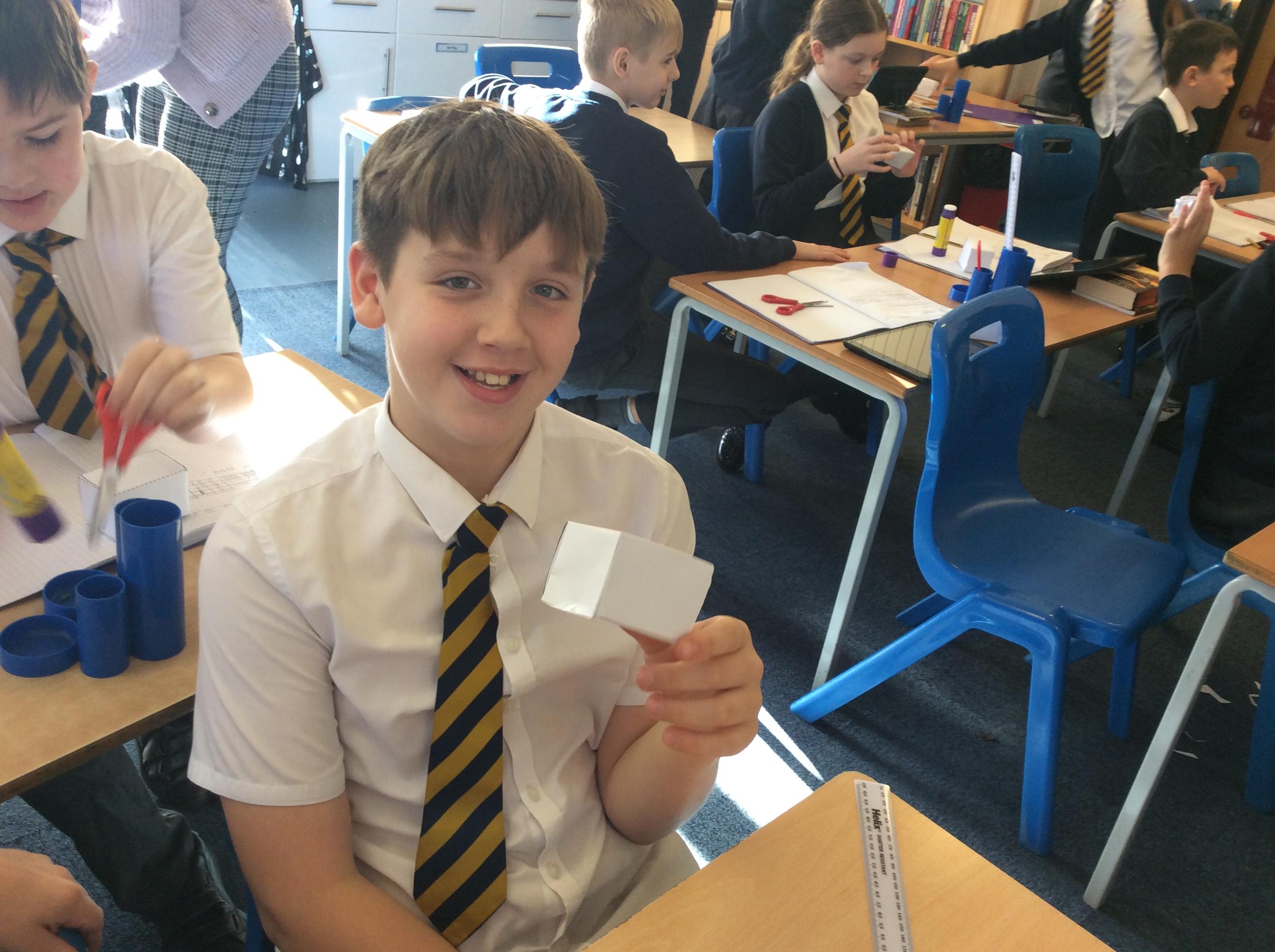 As part of our maths this week, we have been learning about and making nets of 3-D shapes. We started easy with basic cuboids and then moved on to more difficult prisms and pyramids.