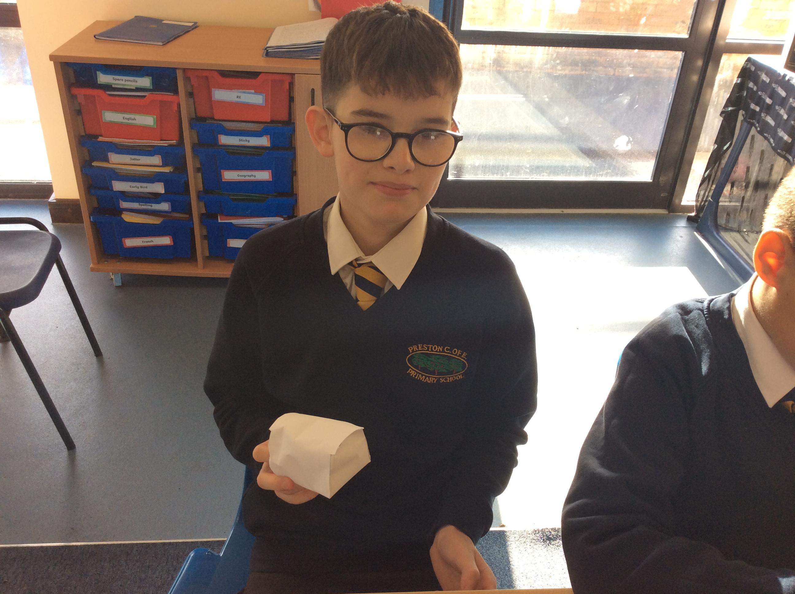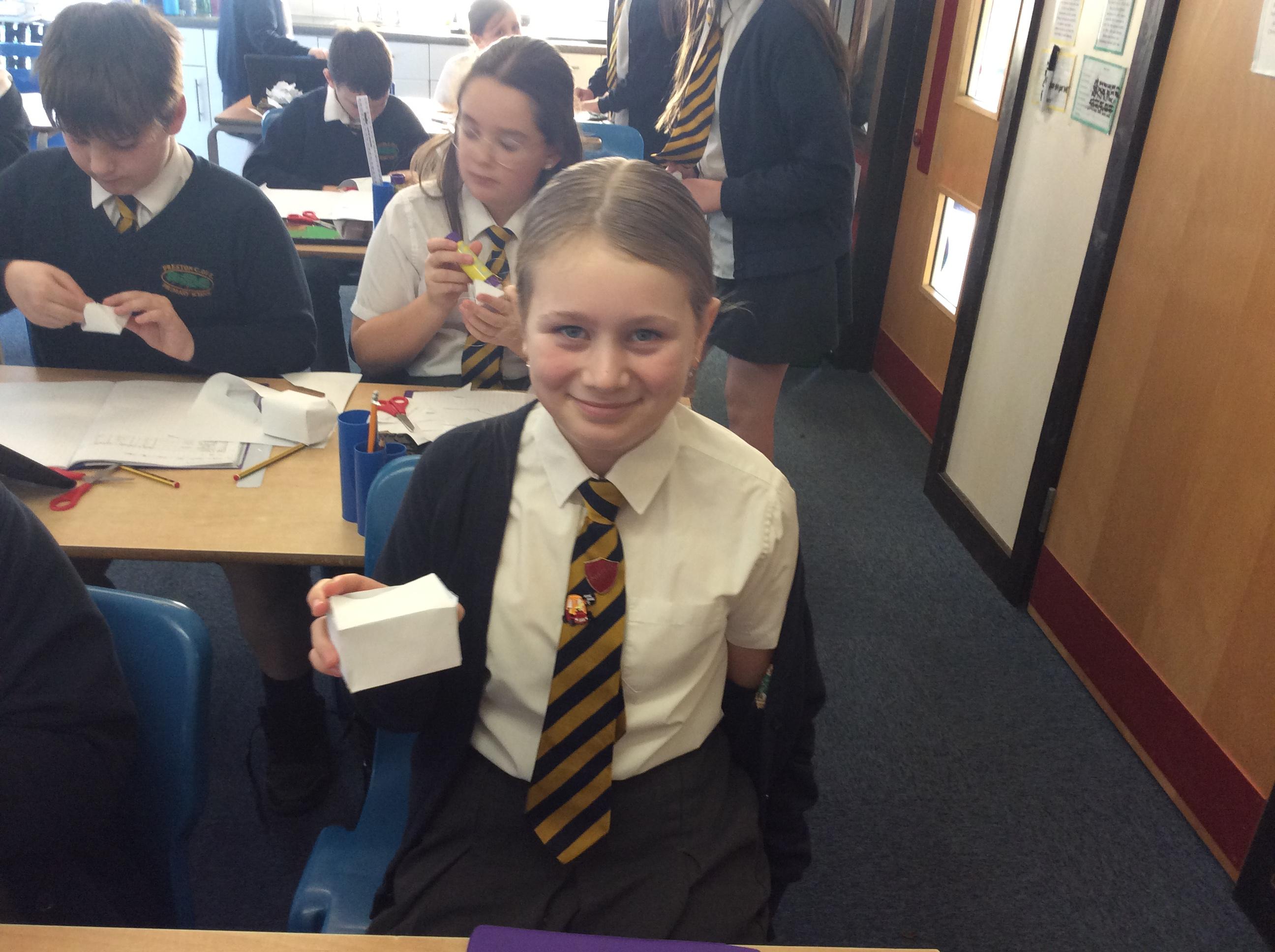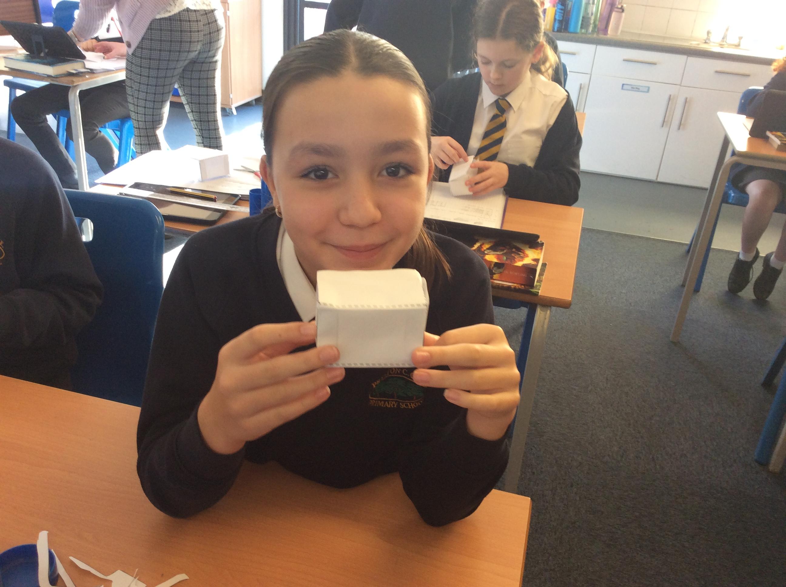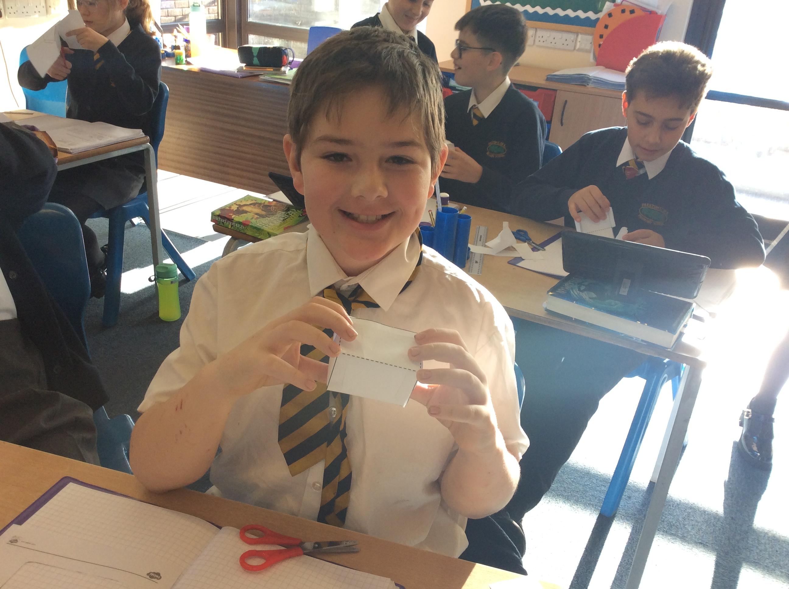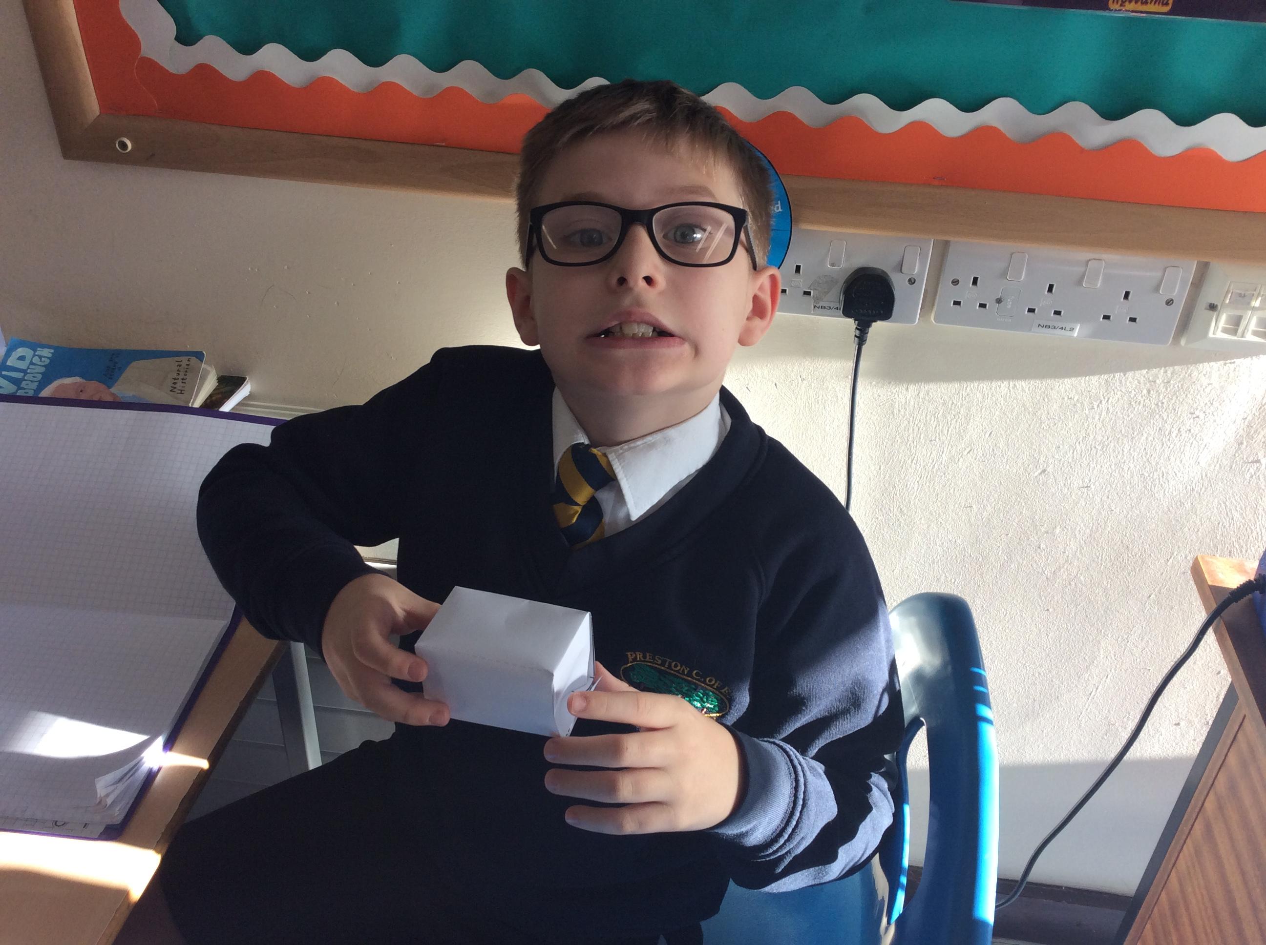 As part of our maths this week, we have been learning about and making nets of 3-D shapes. We started easy with basic cuboids and then moved on to more difficult prisms and pyramids.
