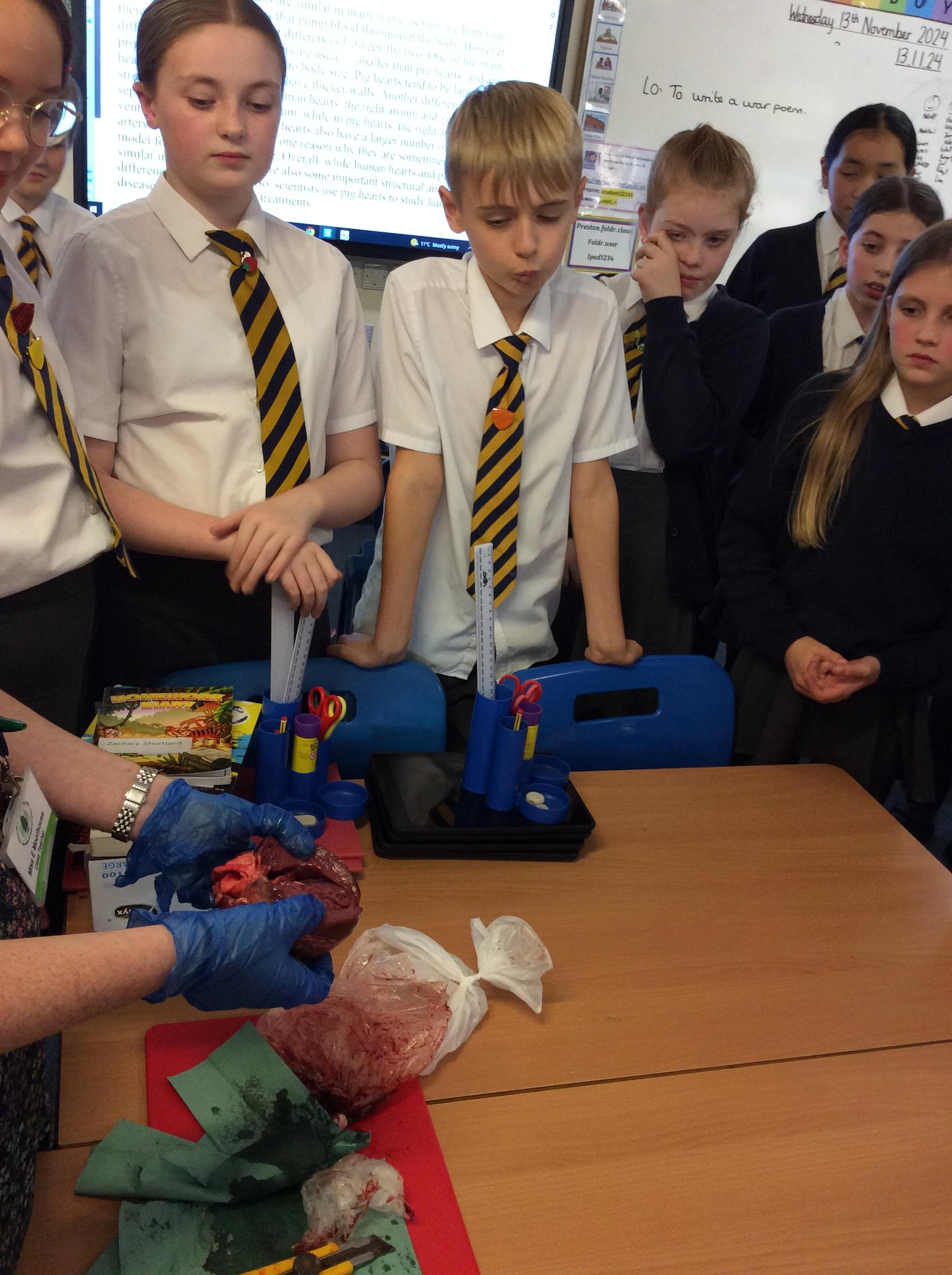 As part of a very busy Week 10, the children took part in a traditional Jewish dance in honour of interfaith week; played their part in paying respect to those remembered and honoured as part of Remembrance day celebrations; and participated in the dissection of a fresh pig's heart as the final lesson of our blood and circulation science topic.