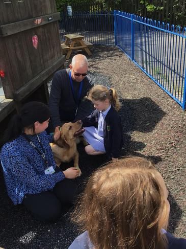 EYFS had their first visit from Milo the dog today as part of their topic on 'pets'. Milo is owned by our Chair of PPAT Governors, Mr Kerrigan, and Miss Kerrigan from EYFS. The children learnt the golden rules on how to act around dogs and were very respectful and gentle with him.