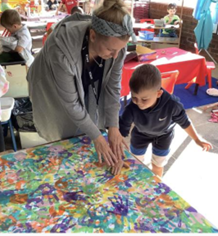 Each child had the opportunity to put their own hand/finger print on the canvas as a permanent memento for the school.  The finished canvas is now hanging in our main corridor for all to see. Thank you Miss Roy!