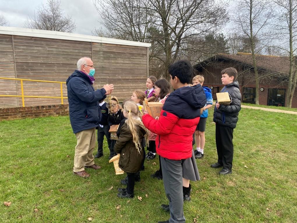 Mr Pritchard (Yeovil Conservation Group) and his Father-In Law kindly donated a selection of home made bird boxes to the school to encourage birds to nest in the school grounds.