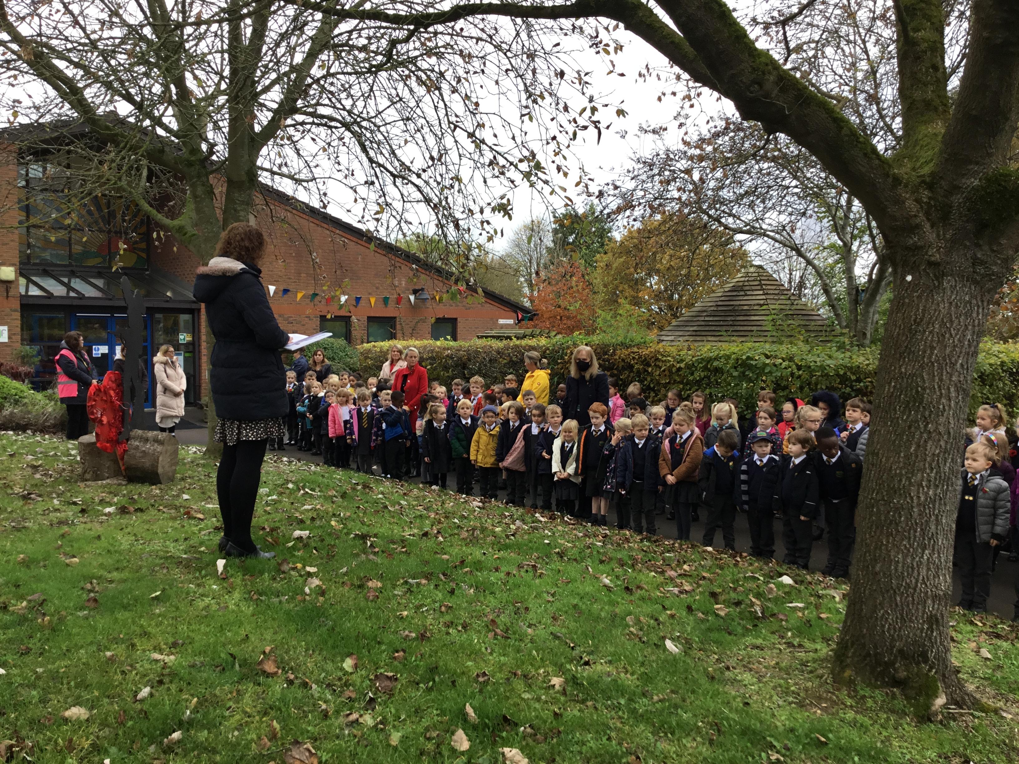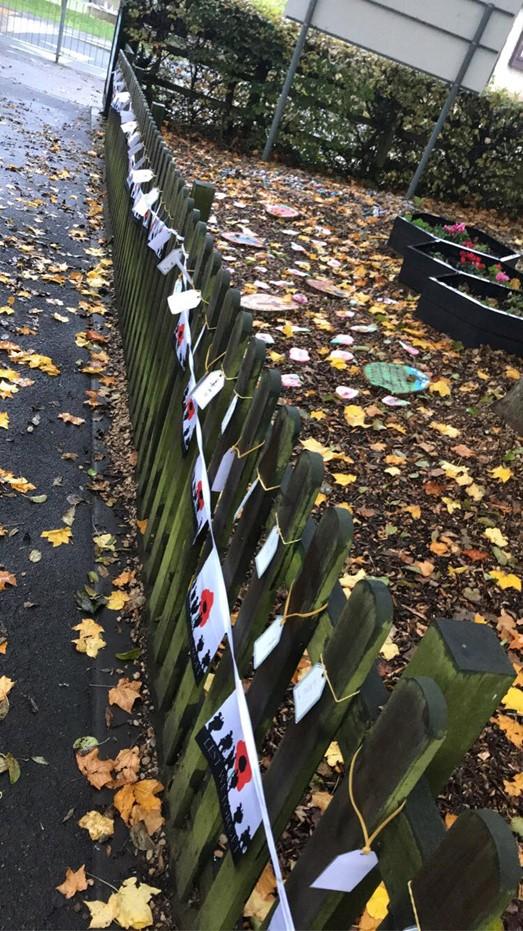 We gathered outside to remember everyone who has fought and died in conflicts around the world. We listened to The Last Post and were silent for two minutes. Mrs Charter then read In Flander’s Field to us.