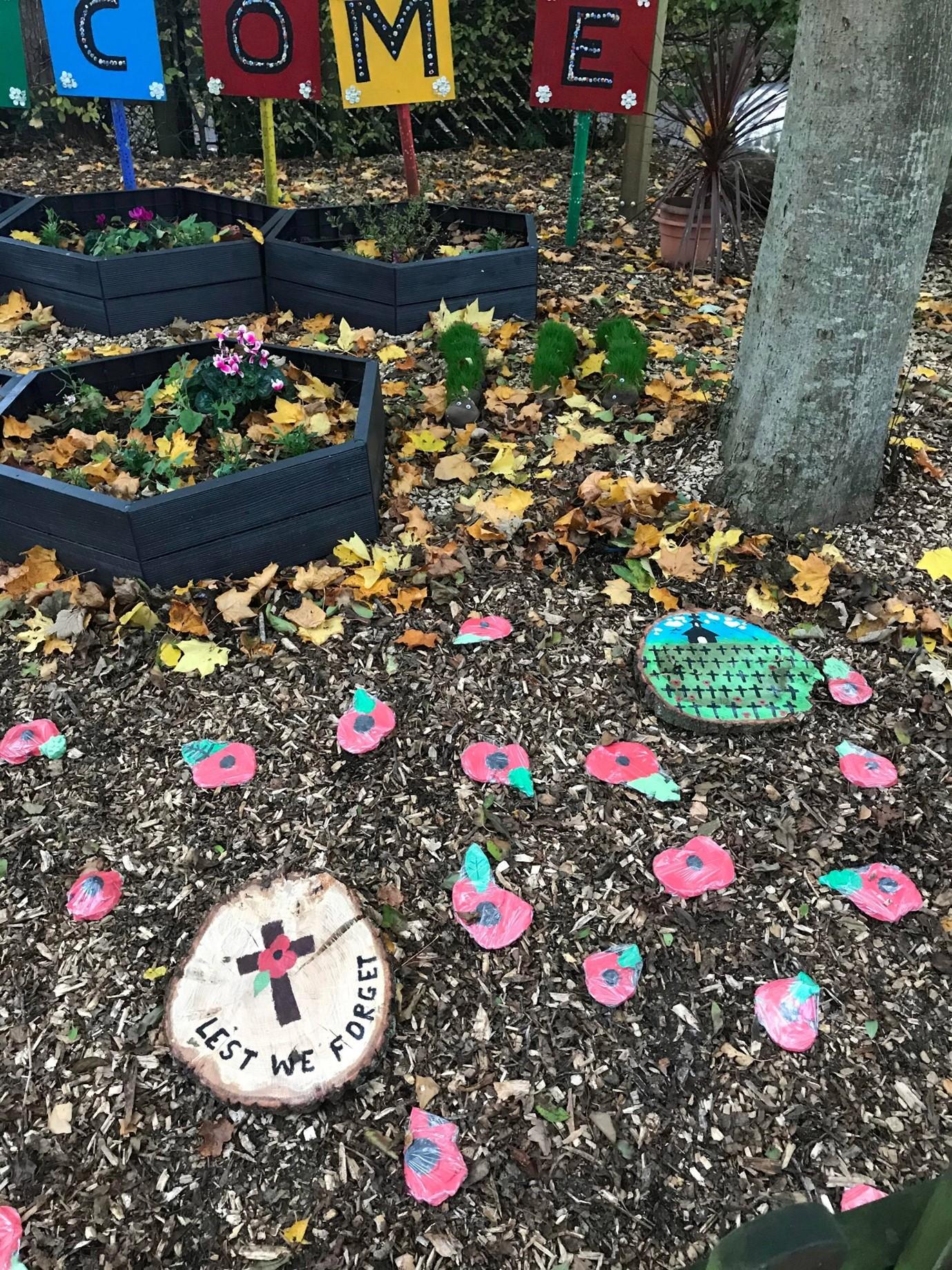 We paid tribute by creating some memorial wooden plaques, clay poppies and created a tribute garden which included the names of local soldiers lost in conflicts. We thank God for our freedom today and for the sacrifices these soldiers made for our futures.
