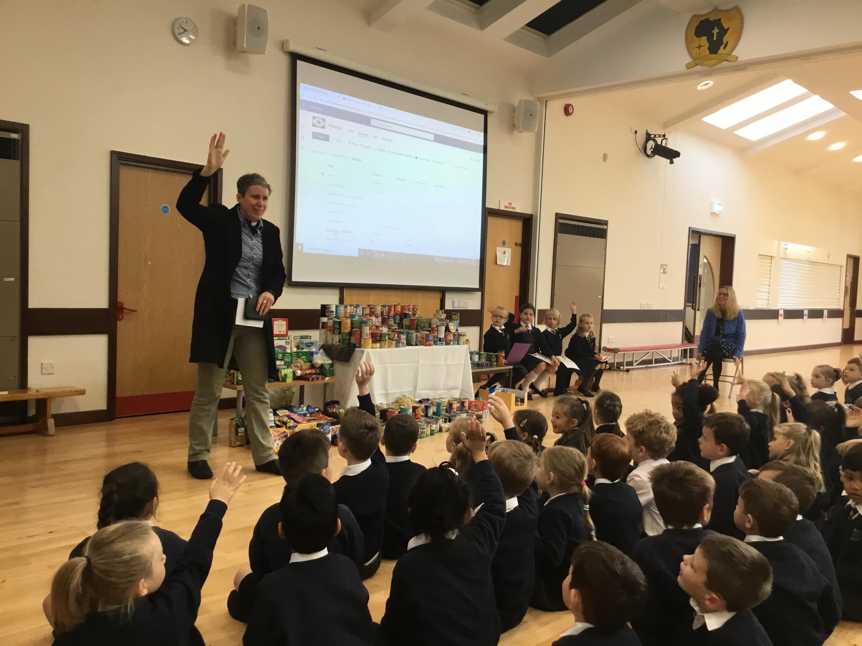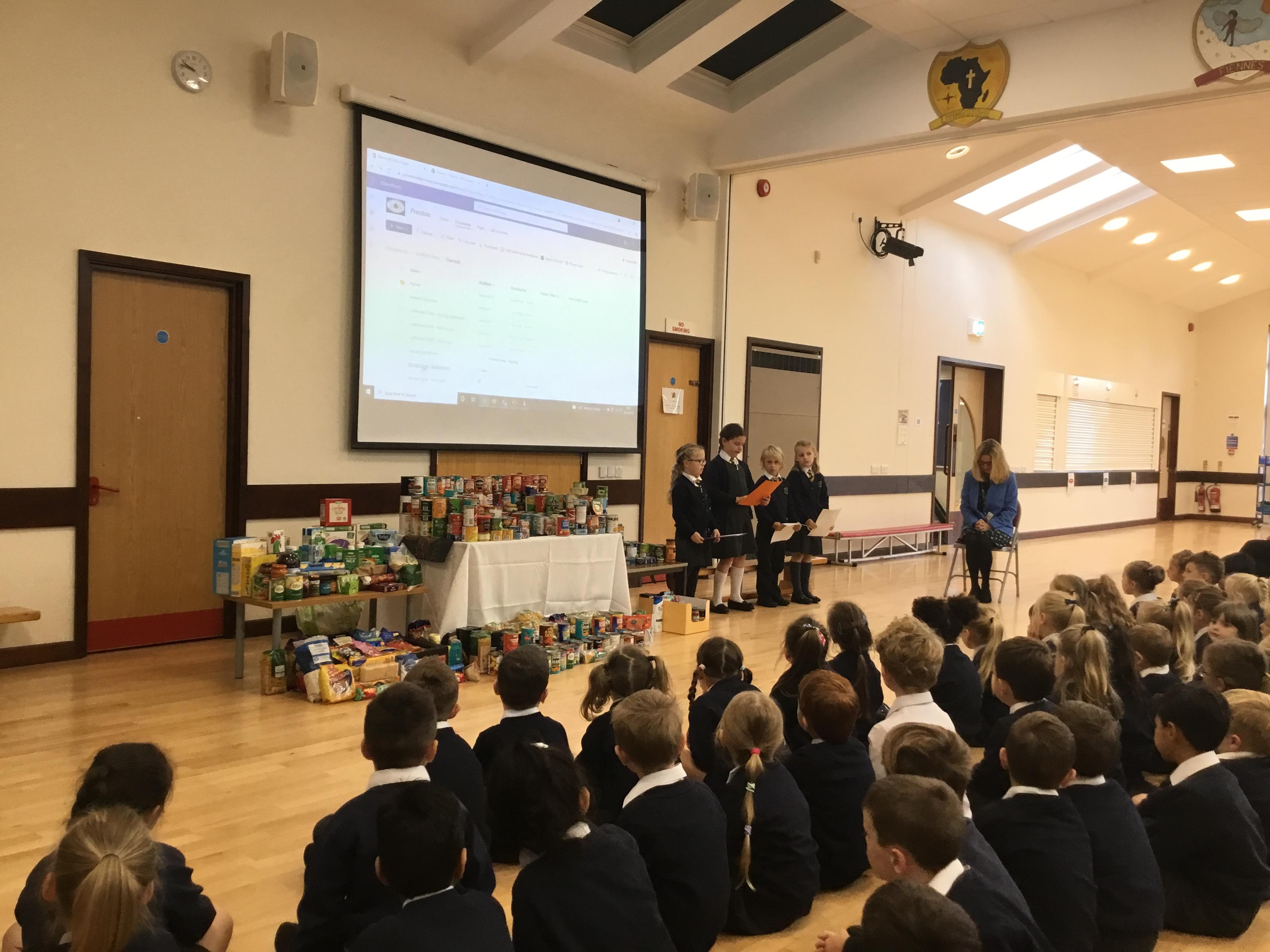 Today Rev. Ruth came to visit us to lead our Harvest Festival. We sang some harvest songs, listened to Ruth talk about the world and some children read prayers that they had written. Thank you to everyone for your very kind donations to The Lord’s Larder.