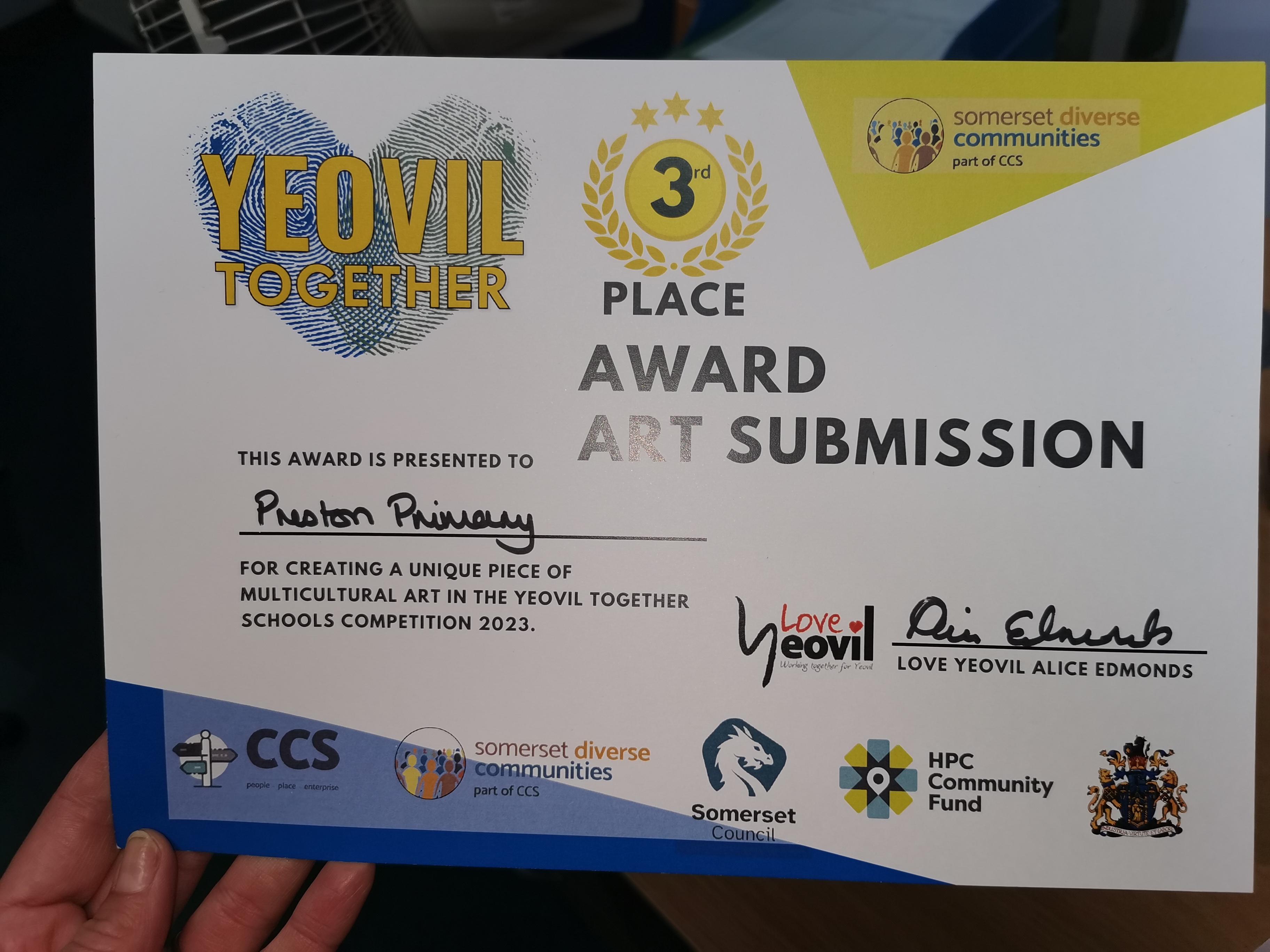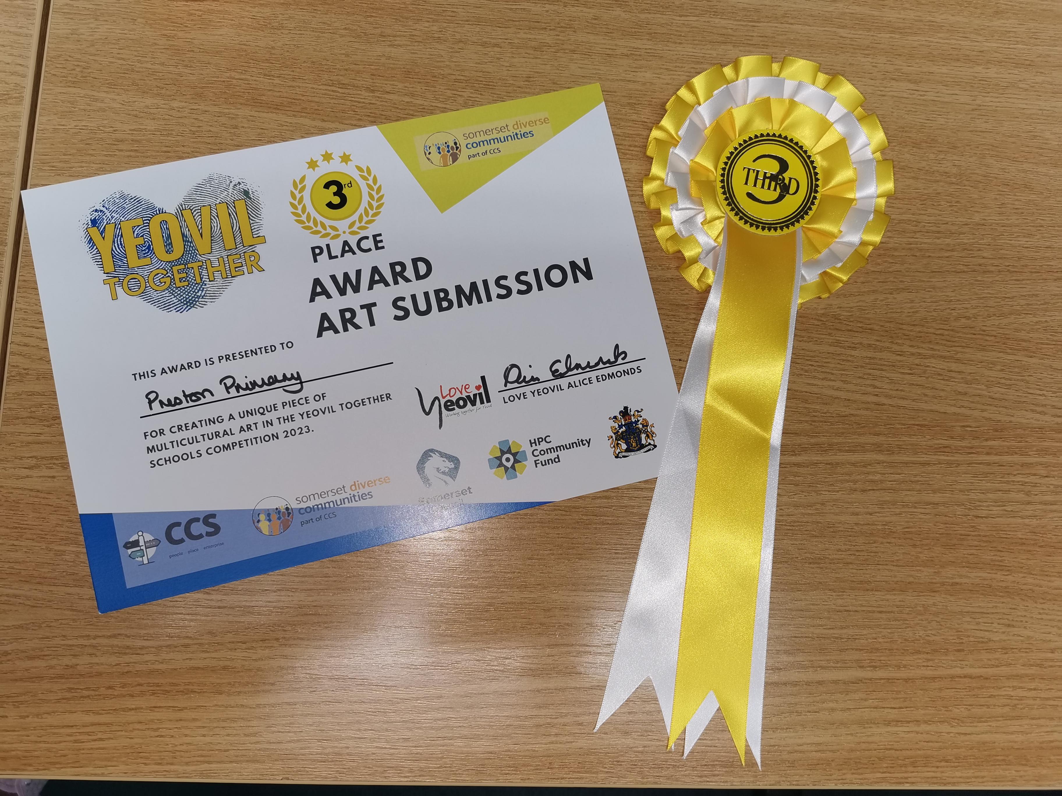 We were delighted to be awarded 3rd place in the competition and to receive a wonderful certificate and rosette for display in our school.