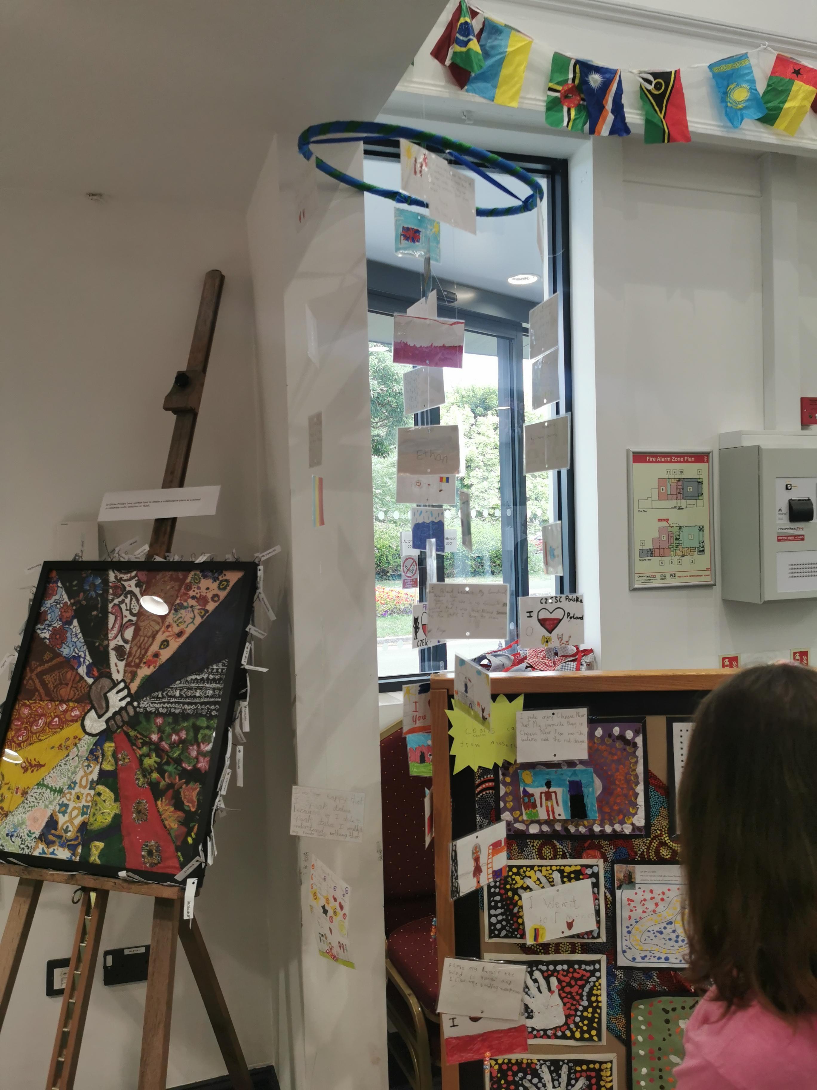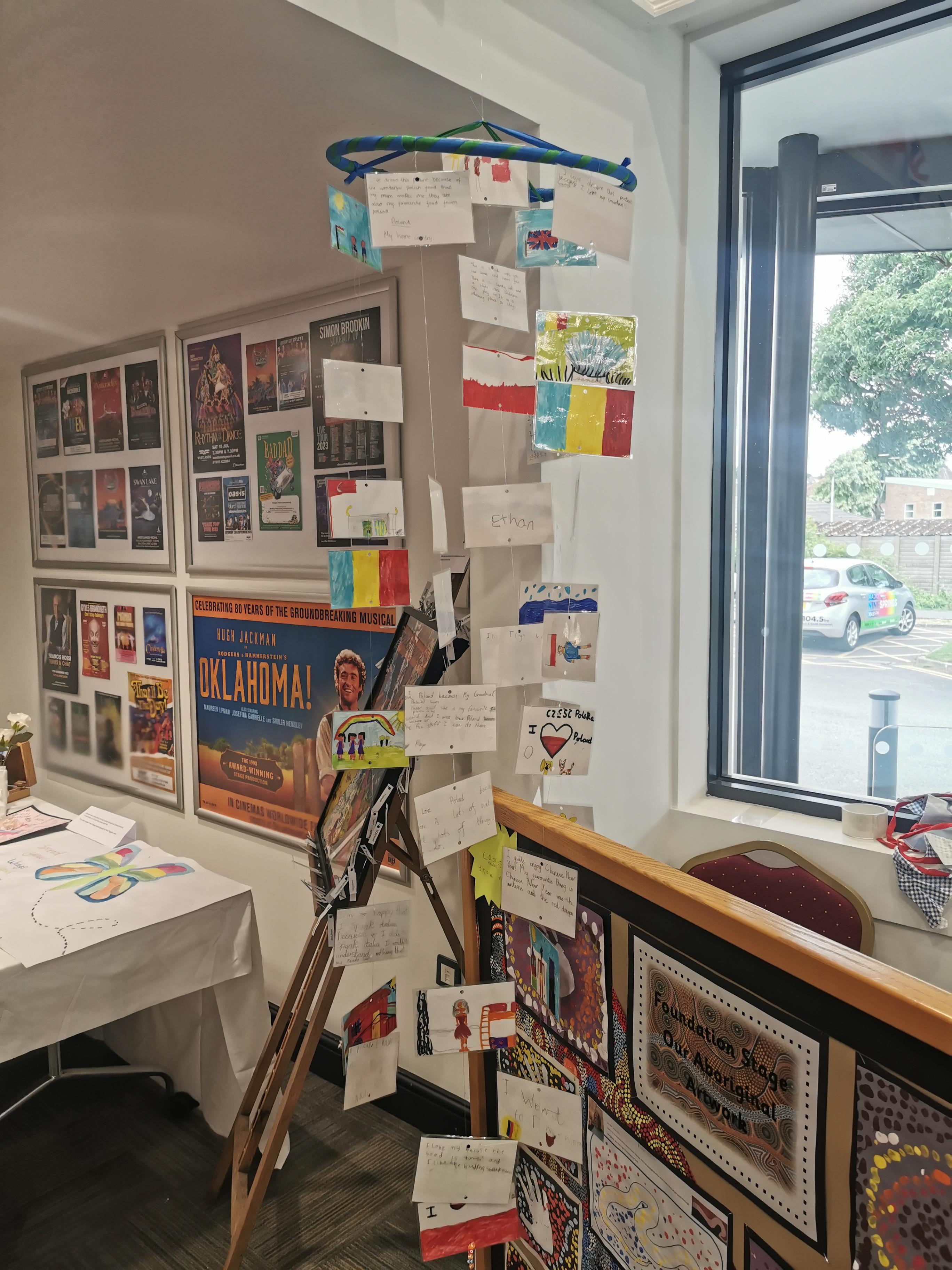 Children with English as a second language skillfully created a hanging art installation to celebrate their culture as part of the Yeovil Together Project. The art work included postcards featuring pictures of things that are important to them alongside a piece of writing about what makes their country so special to them.