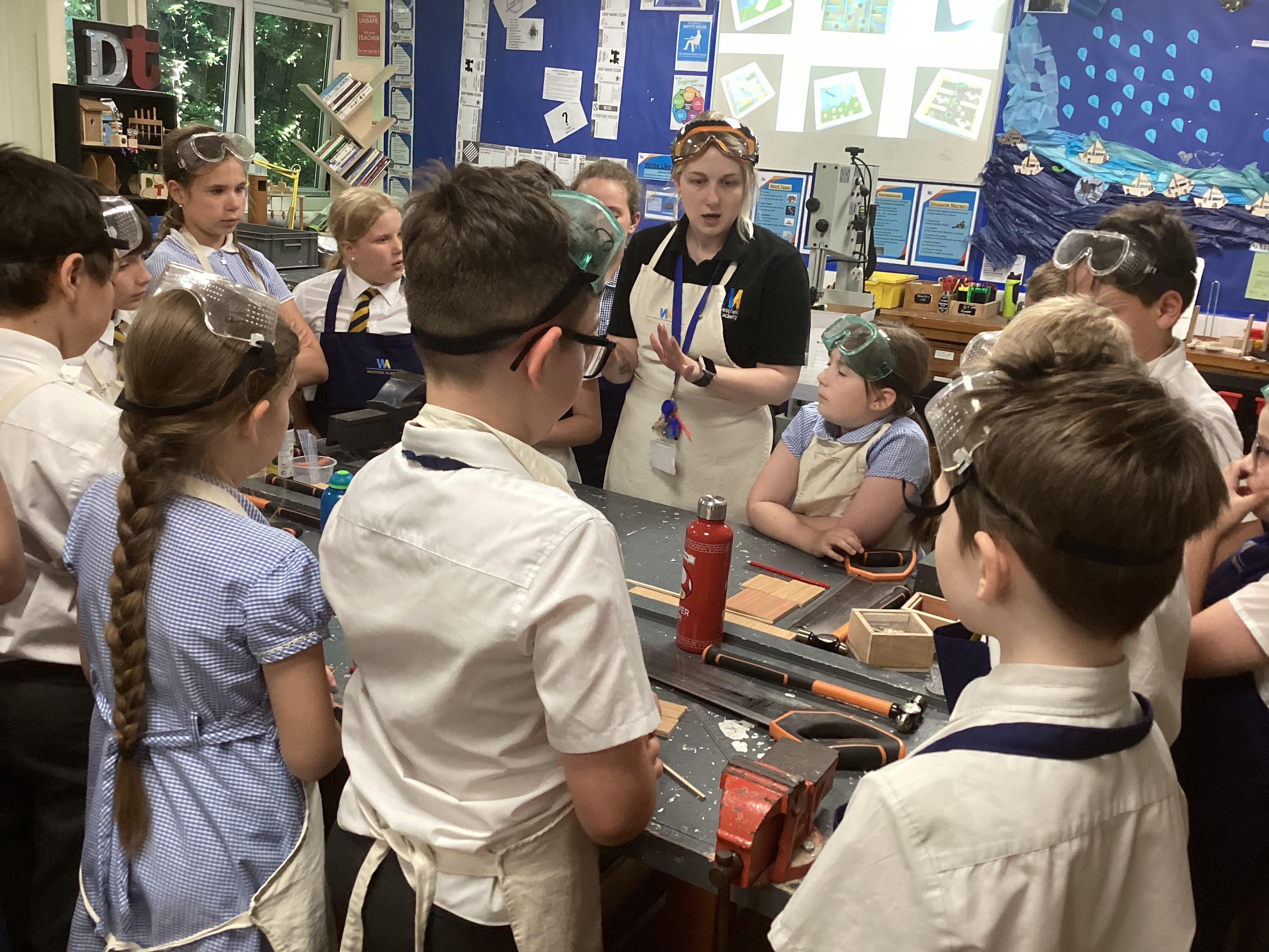A selection of Year 5s visited Westfield Academy's Design Technology Department to work on a project with their Head of Technology, Miss Blackmore.
