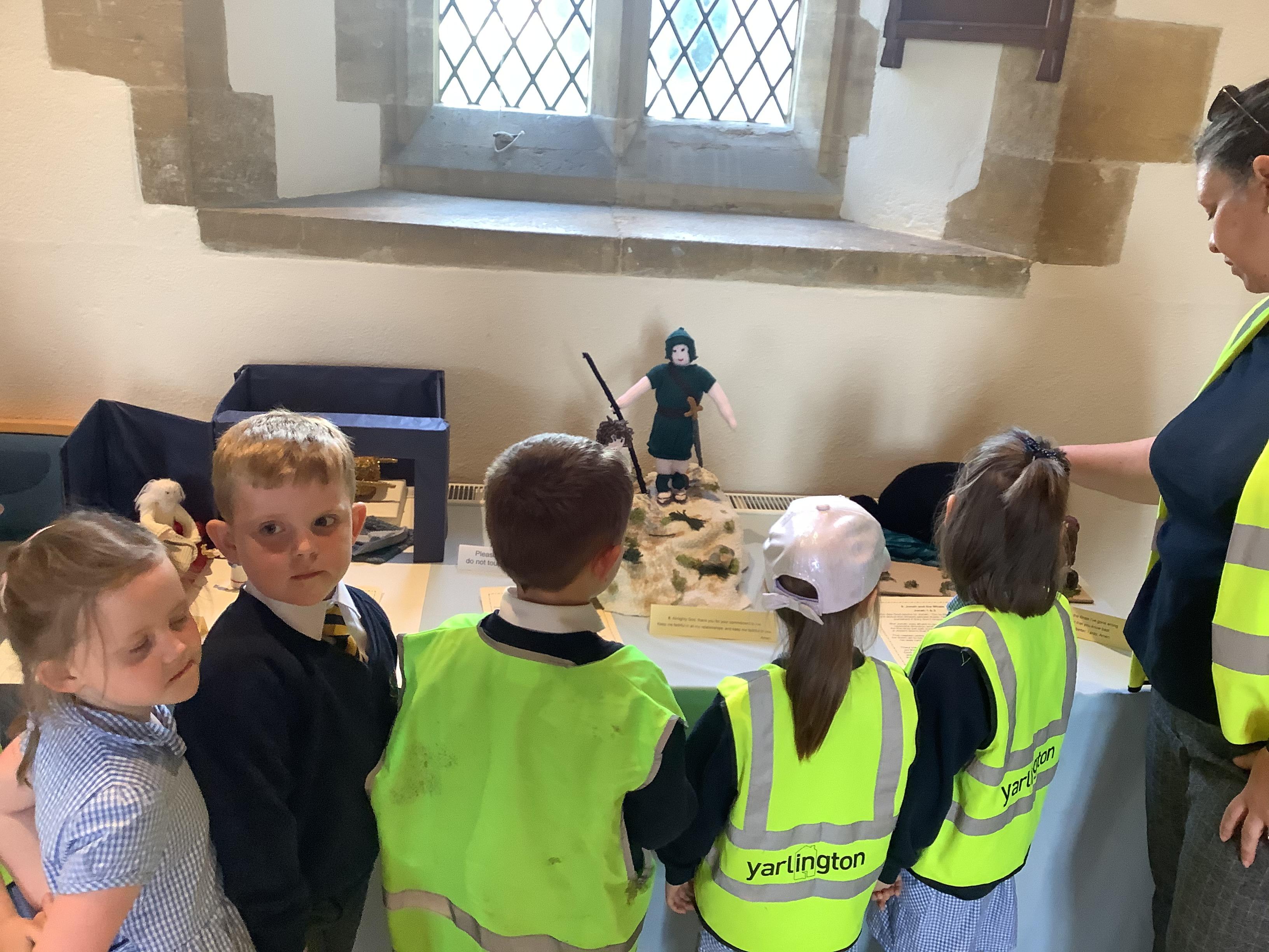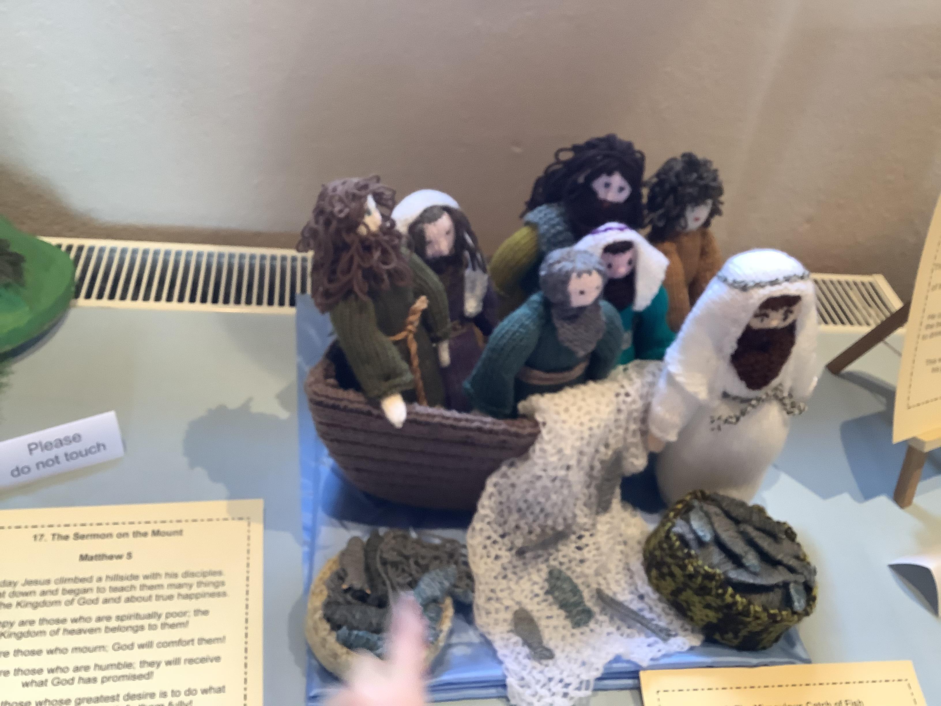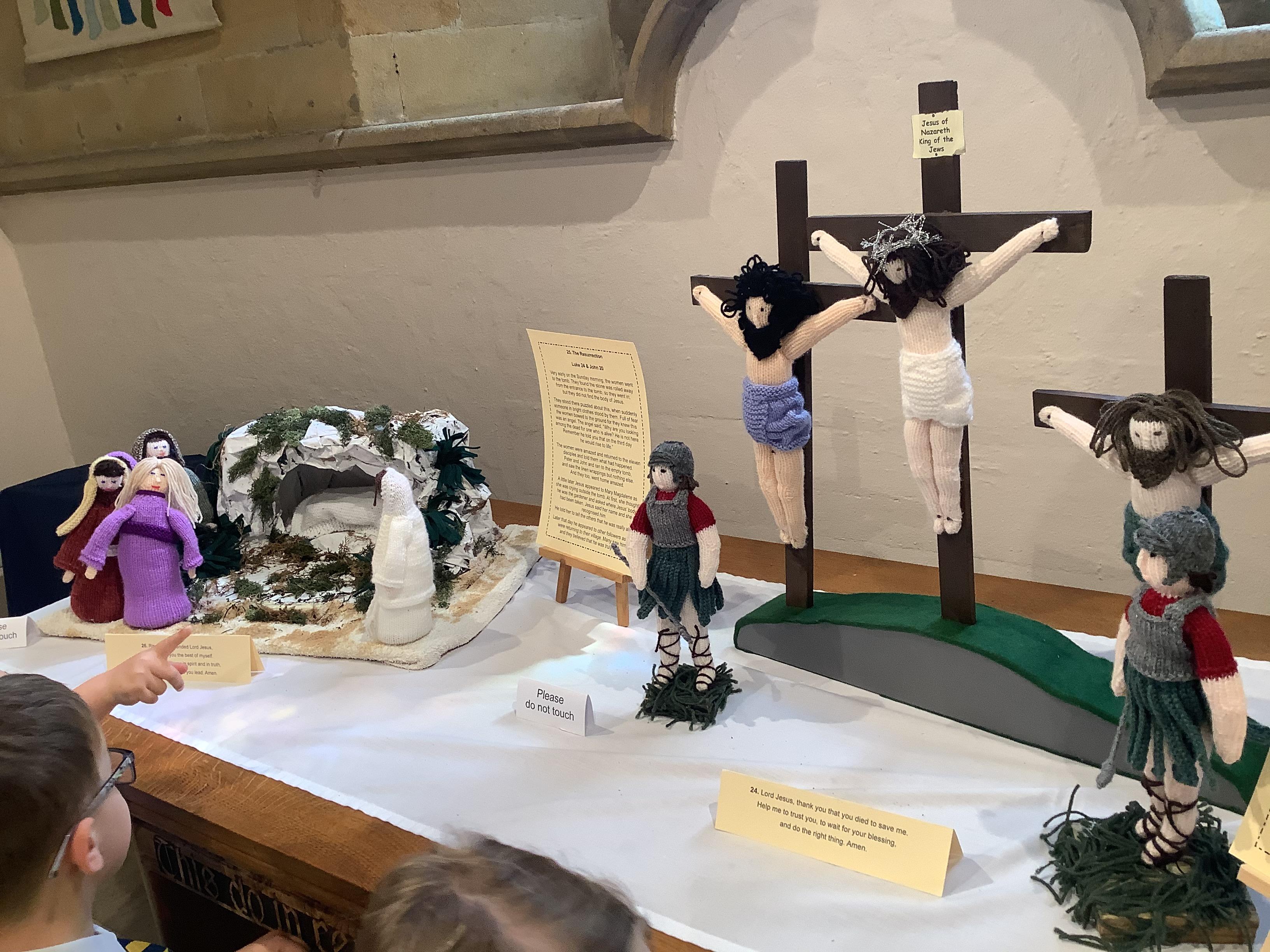 The whole school was invited to St. James' church by the Rev. David Keen to see their wonderful exhibition of knitted Bible stories.