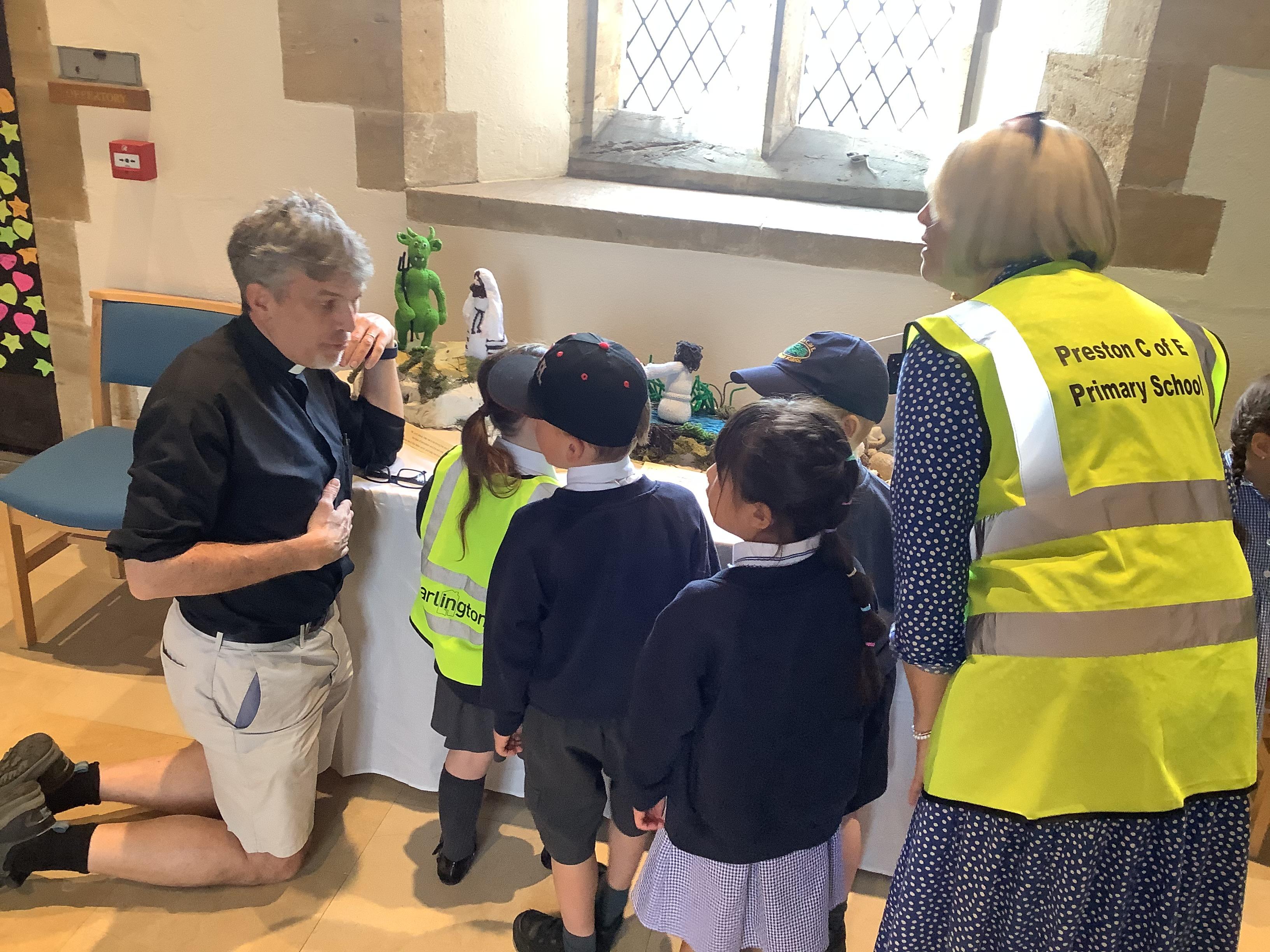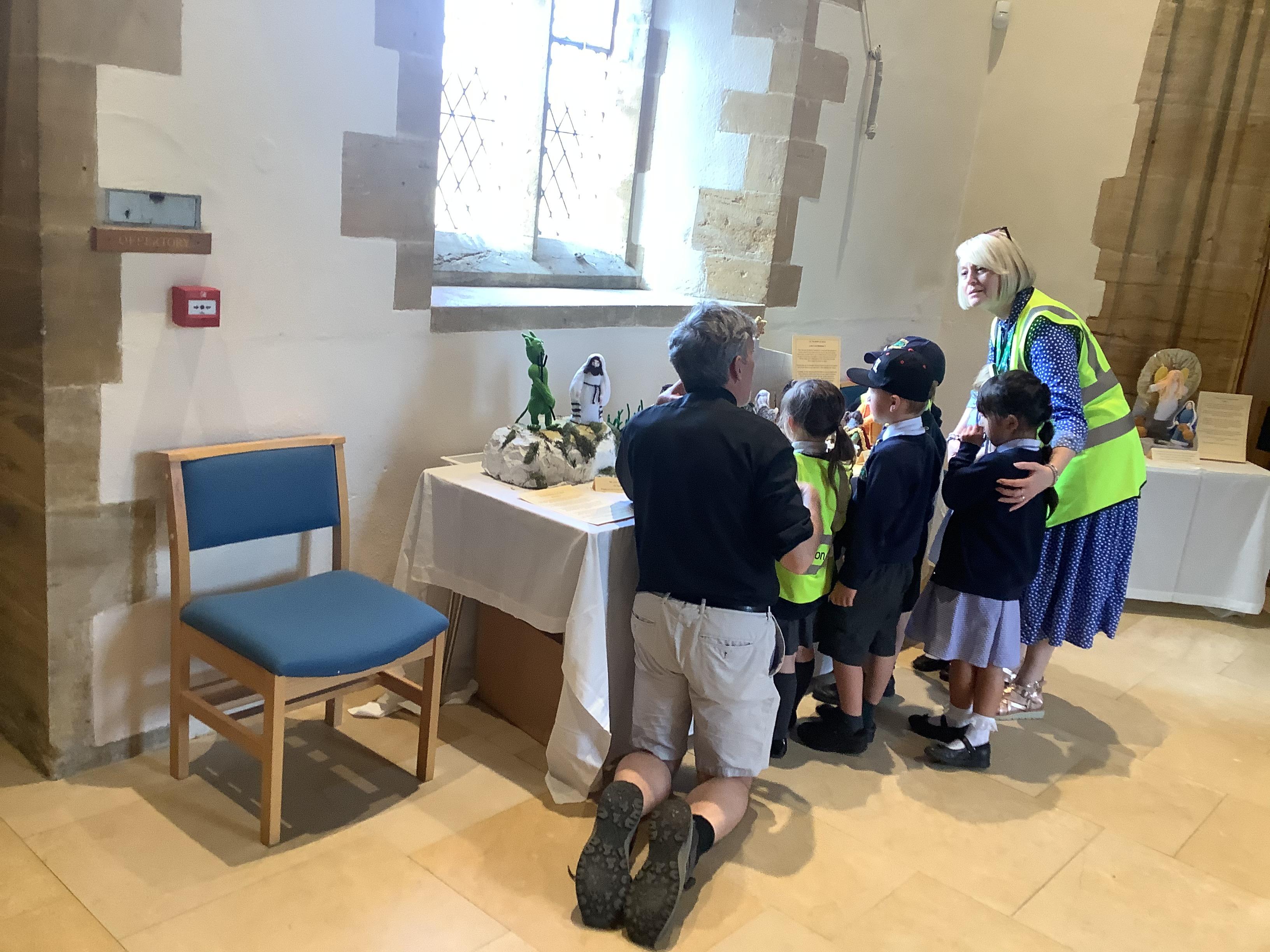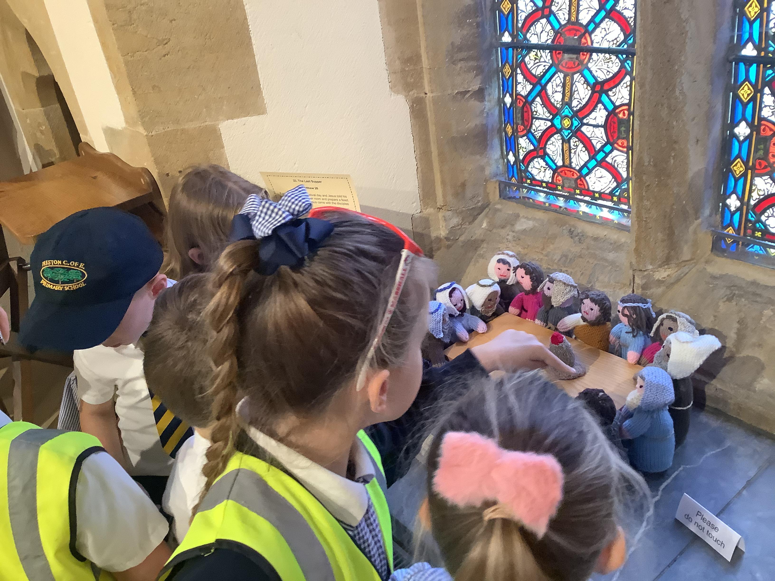 The whole school was invited to St. James' church by the Rev. David Keen to see their wonderful exhibition of knitted Bible stories.