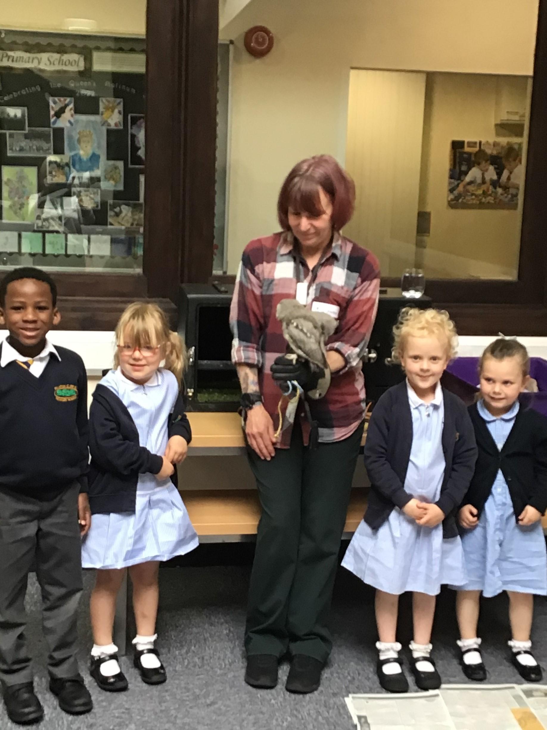 The children were enthralled by the array of owls shown, and they learnt a lot of interesting facts to support their current topic of 'Owl Babies'. They couldn't believe how small and fluffy some of the owls were or how close they were able to approach them!