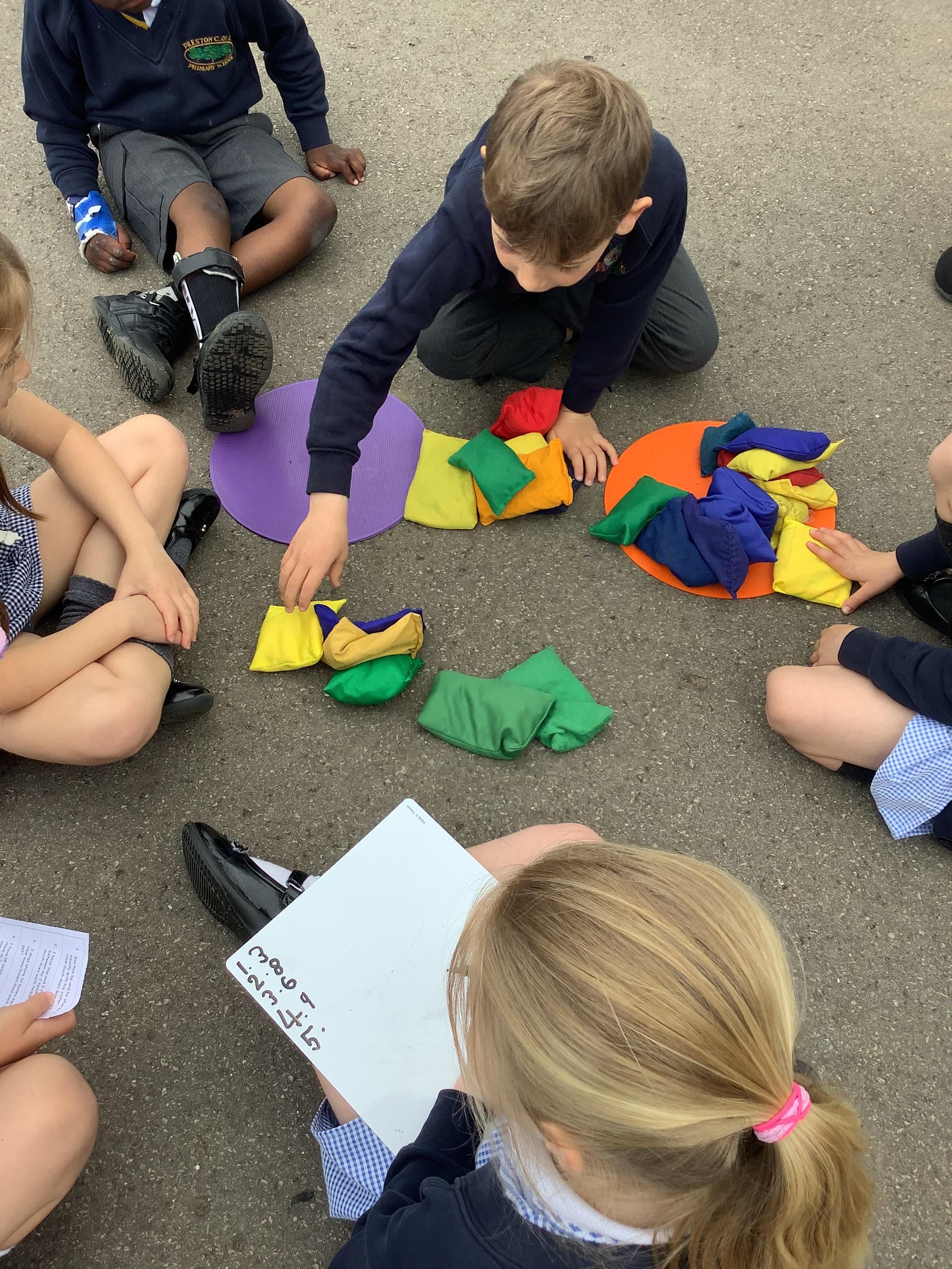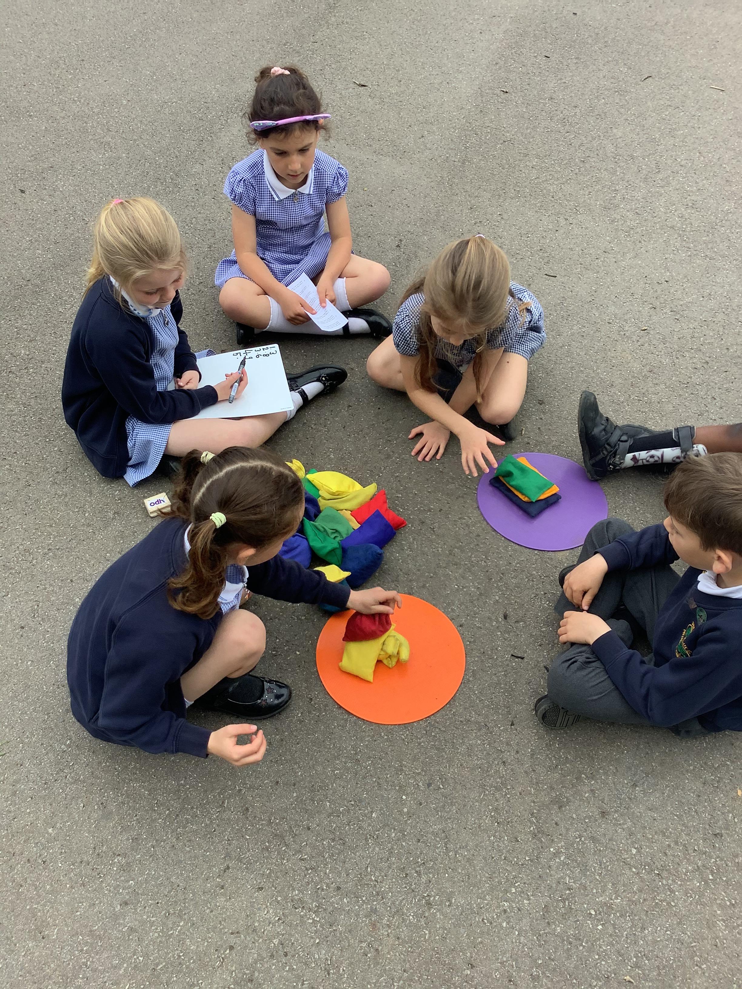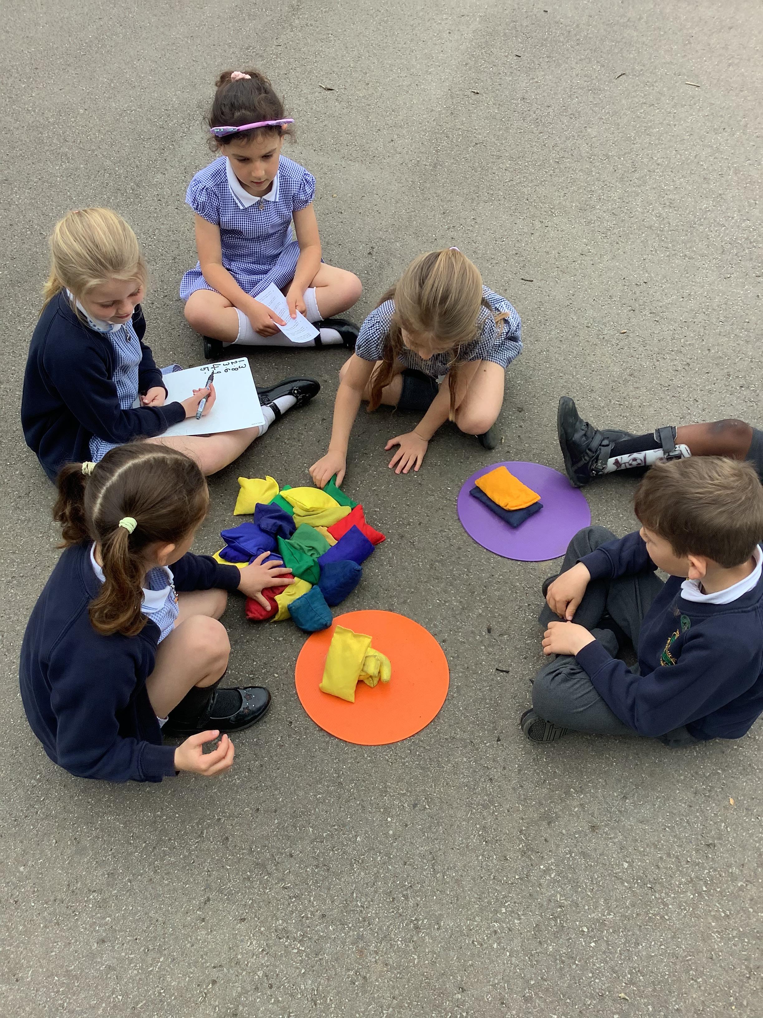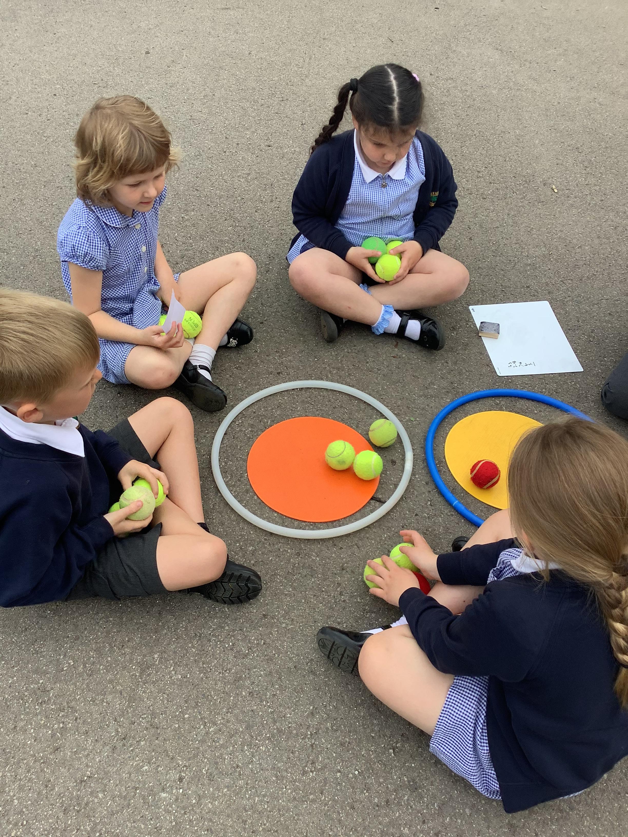 Our lovely Year 1s took their learning outdoors to tackle problem solving with division. Children used hoops, beans bags and ball to solve division word problems through practical sharing.