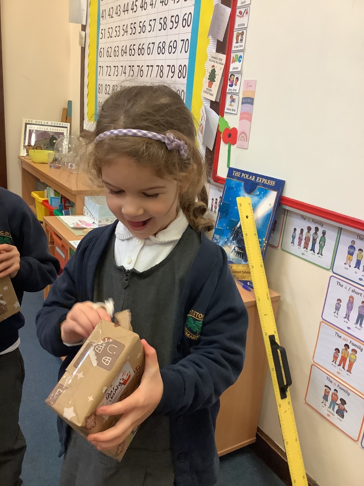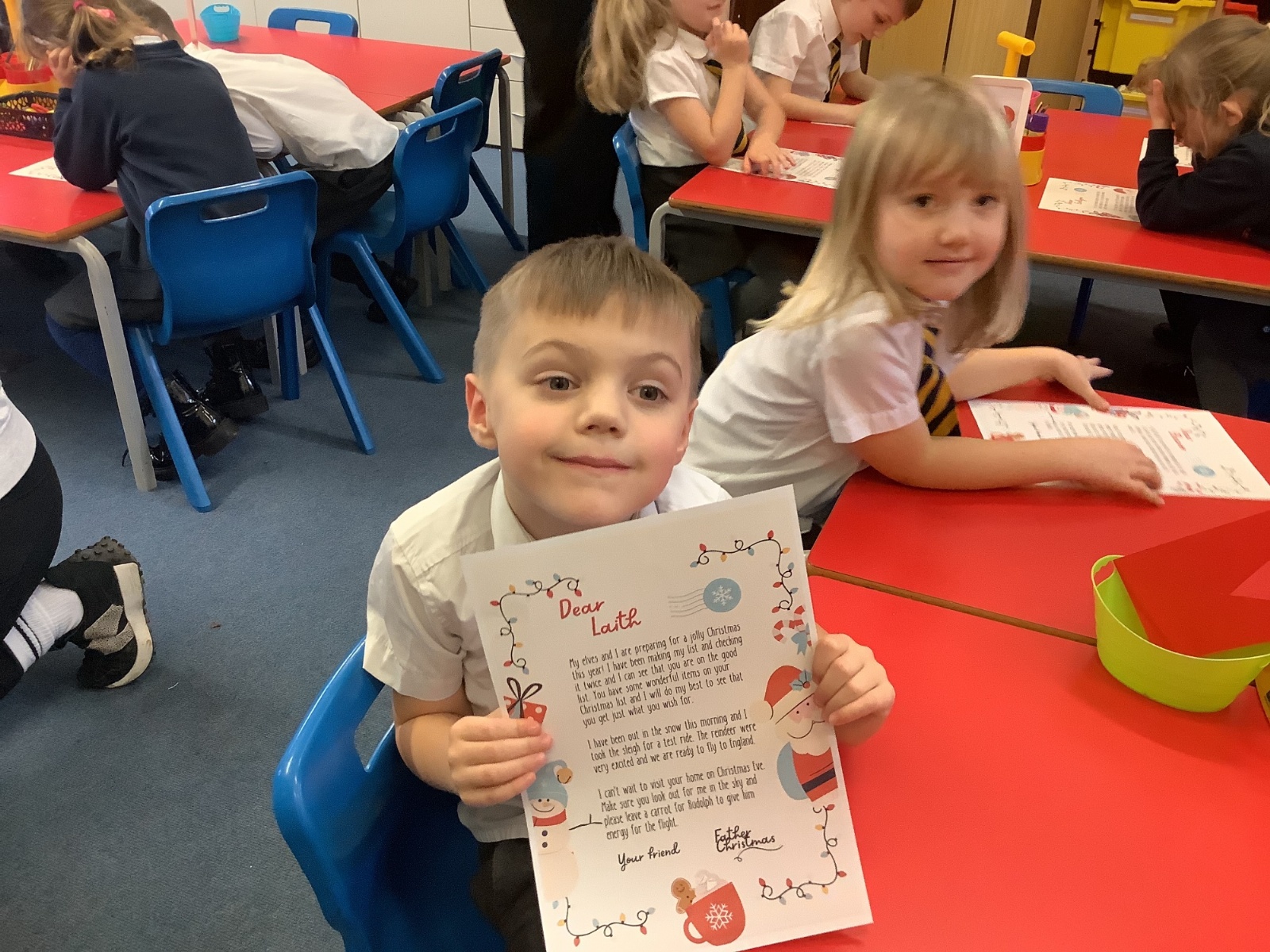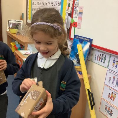 Father Christmas paid a very special visit to our class after we had written to him on Friday. He surprised us by delivering three presents for the class, along with a personal letter for each child. The children were delighted and listened carefully as their letters were shared.