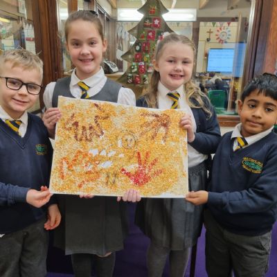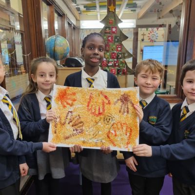 In Art, we created and drew our own cave walls!