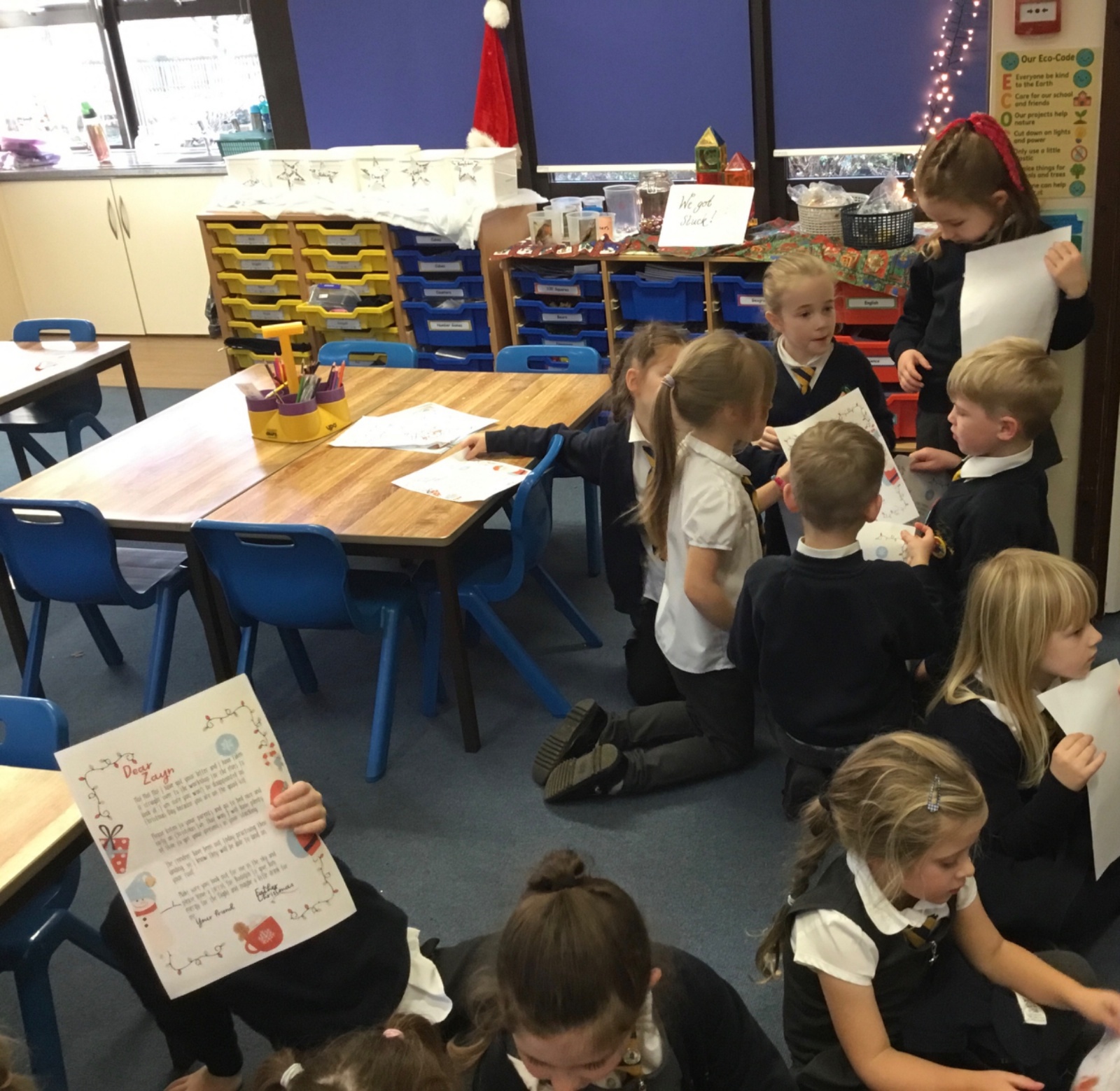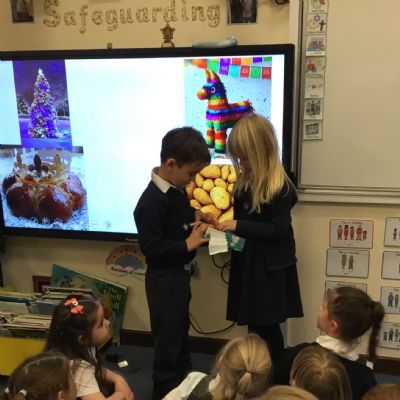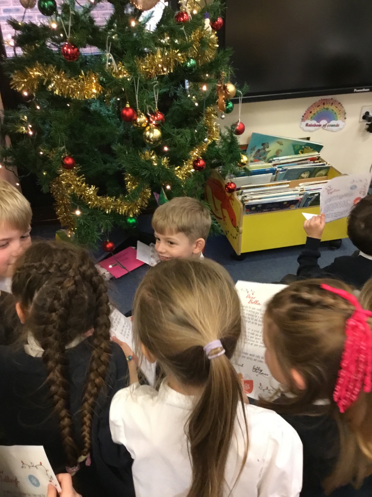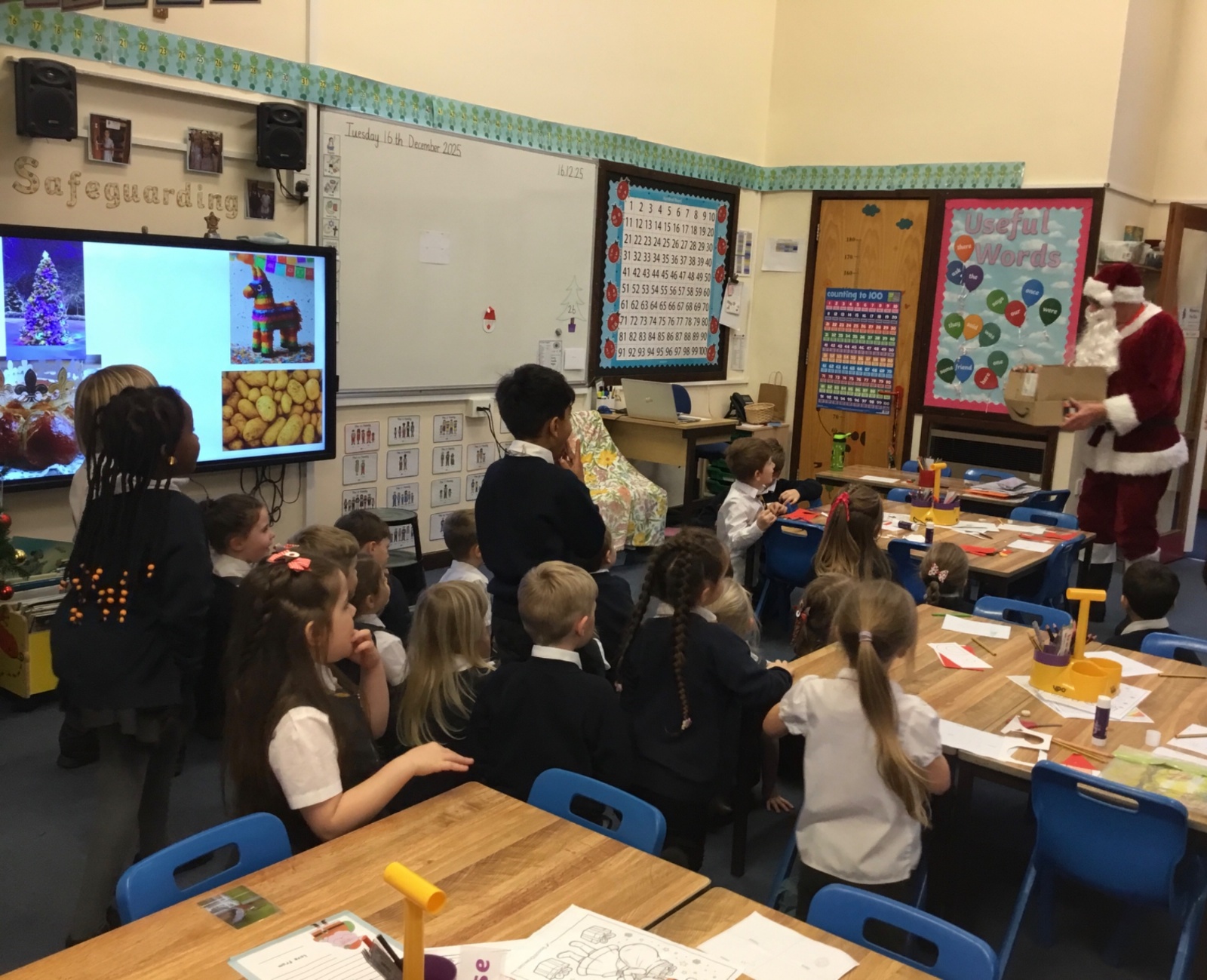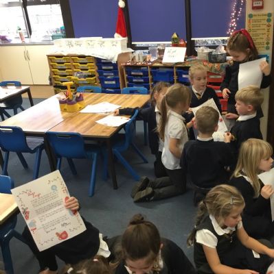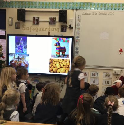 Father Christmas paid a very special visit to our class after we had written to him on Friday. He surprised us by delivering three presents for the class, along with a personal letter for each child. The children were delighted and listened carefully as their letters were shared.