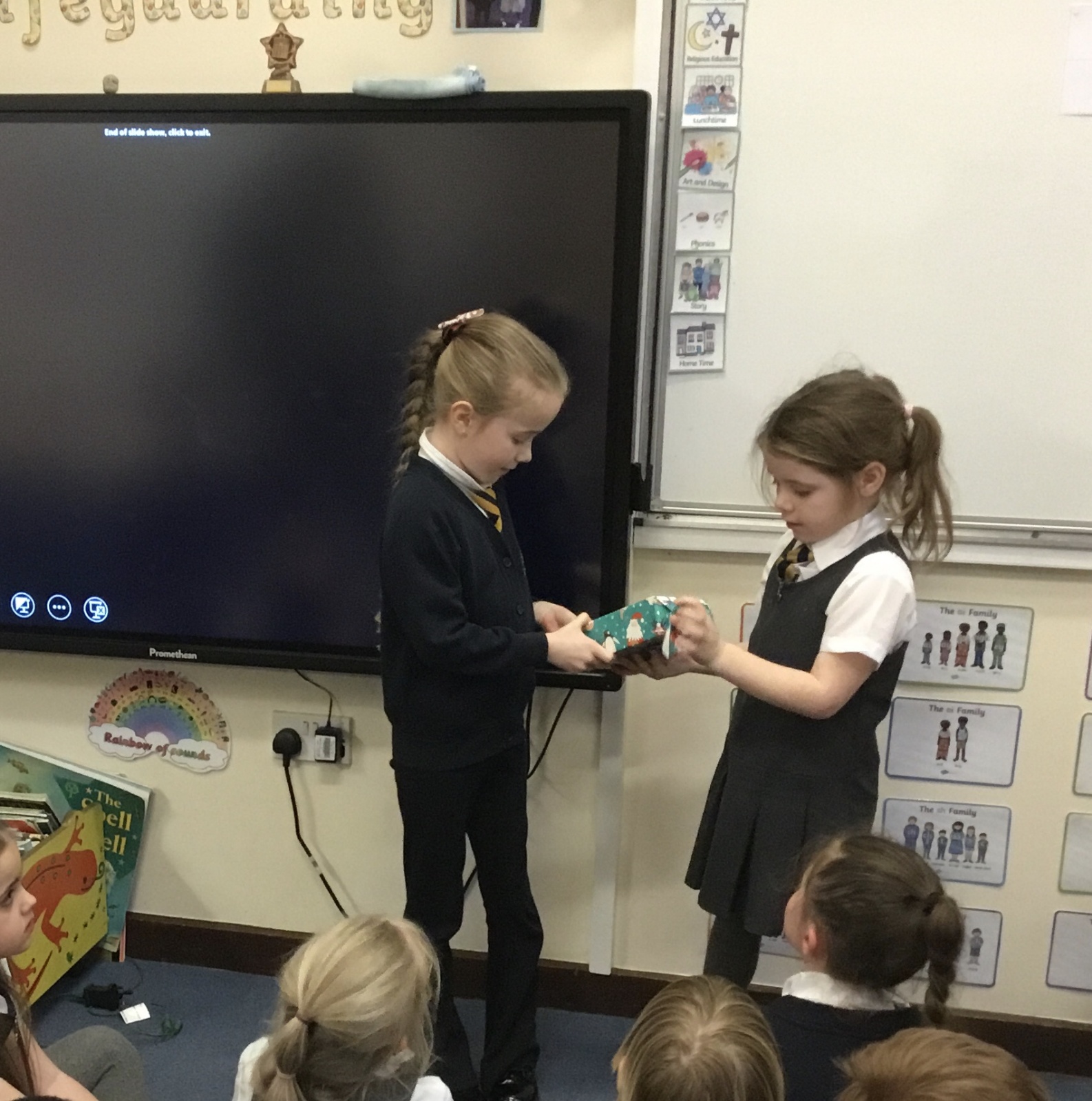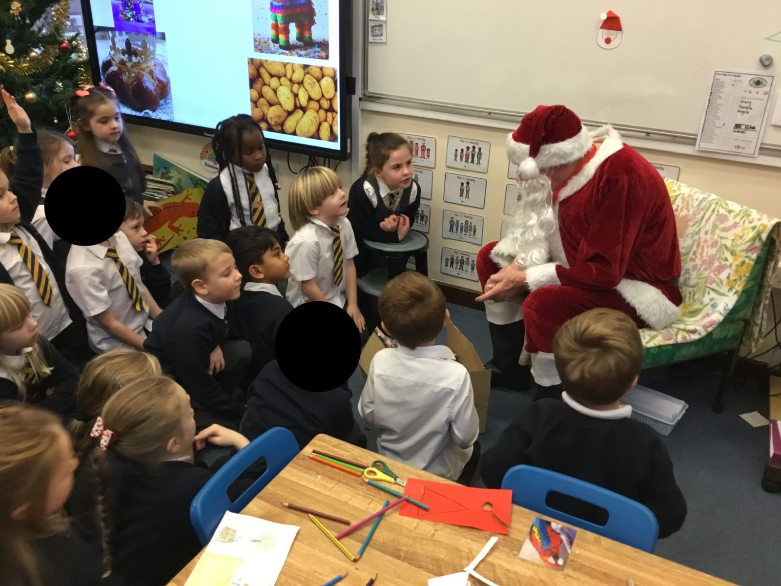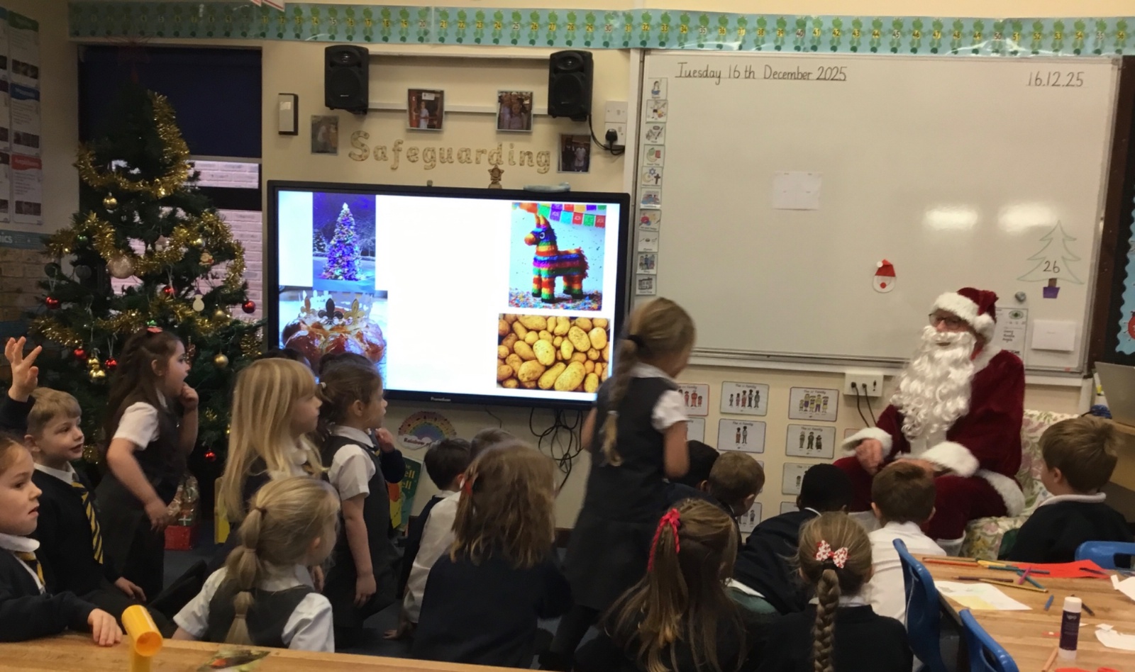 Father Christmas paid a very special visit to our class after we had written to him on Friday. He surprised us by delivering three presents for the class, along with a personal letter for each child. The children were delighted and listened carefully as their letters were shared.