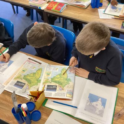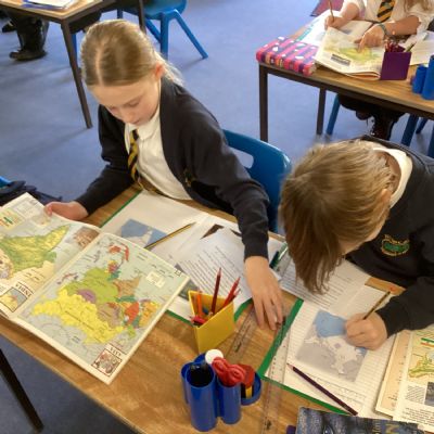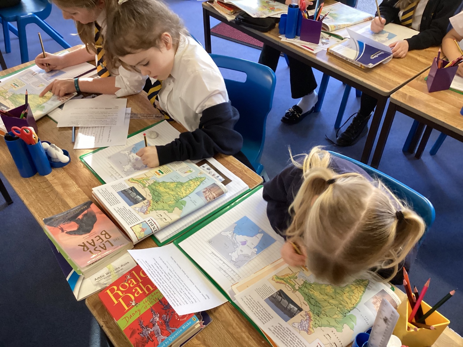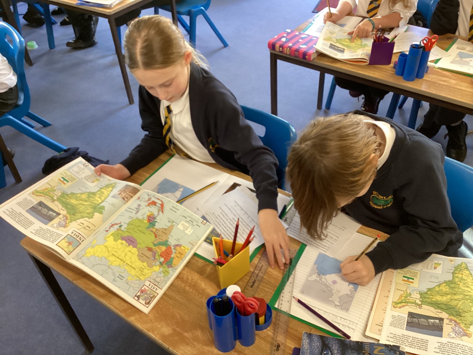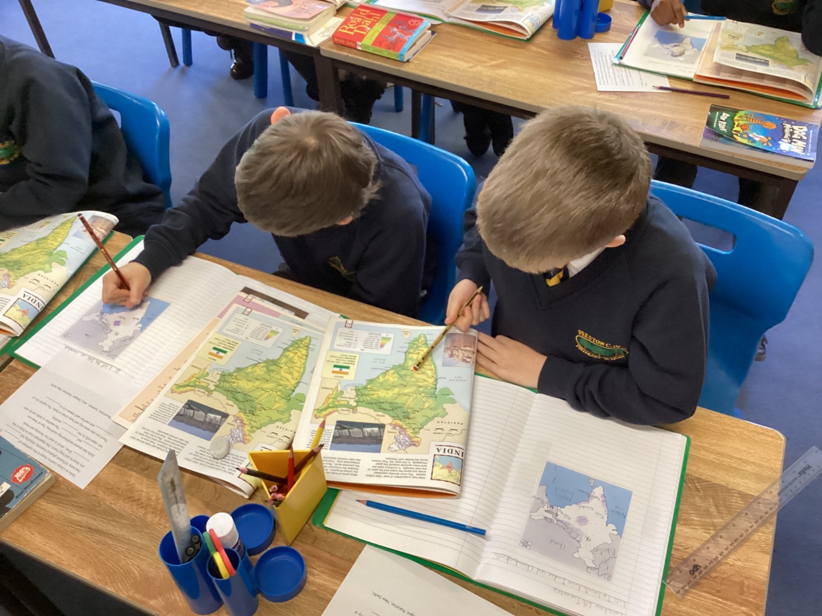 The children used atlases and globes to identify India, its physical features and the neighbouring countries.