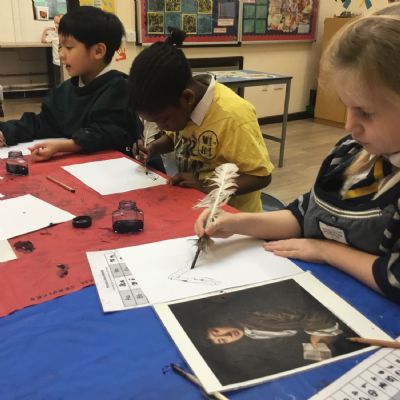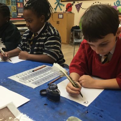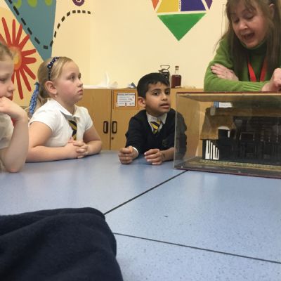 Year two have had a visit from Sam from the museum service to enhance our history learning about the Great Fire of London. We had a go at writing with a quill, like Samuel Pepys would have done, we created a human chain to recreate putting the fire out, and we looked at some artefacts. We even had a go at dressing up! What a fabulous morning we have had!