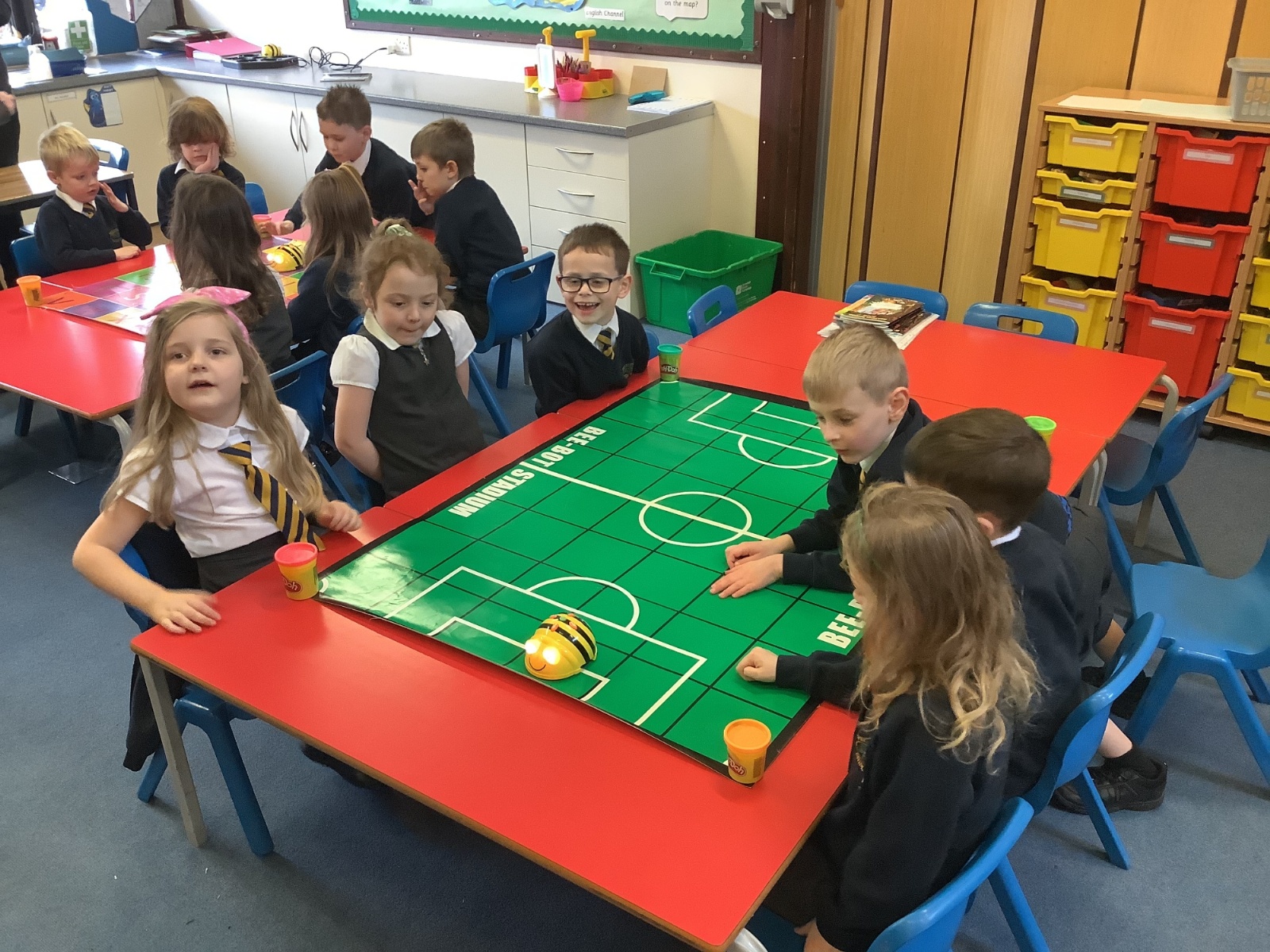The children enjoyed using Bee-Bots on mats to practise giving clear directions and programming simple routes. They worked on sequencing instructions, problem-solving, and debugging when the Bee-Bot didn’t go where they expected. It was a fun, hands-on way to develop early computing and teamwork skills.