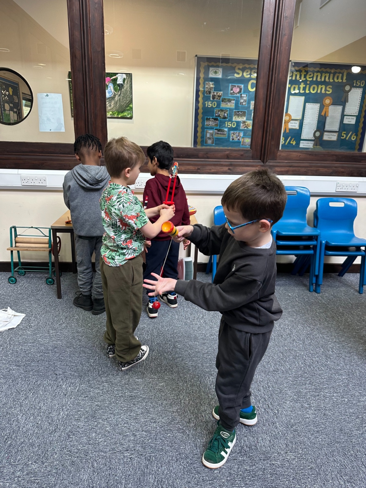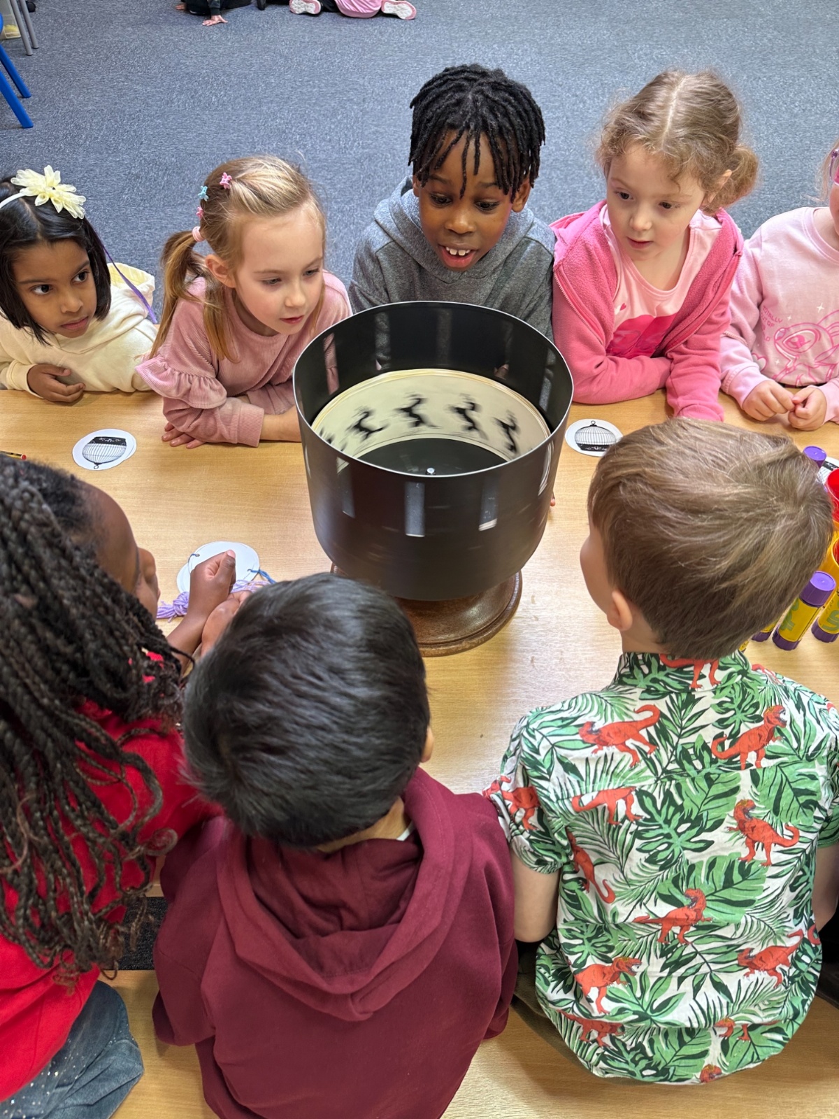 They were fascinated to see a zoetrope in action and learn how early animation worked. Inspired by this, the children then made their very own thaumatrope, discovering how simple images can create the illusion of movement. It was an engaging and memorable way to bring our history learning to life.