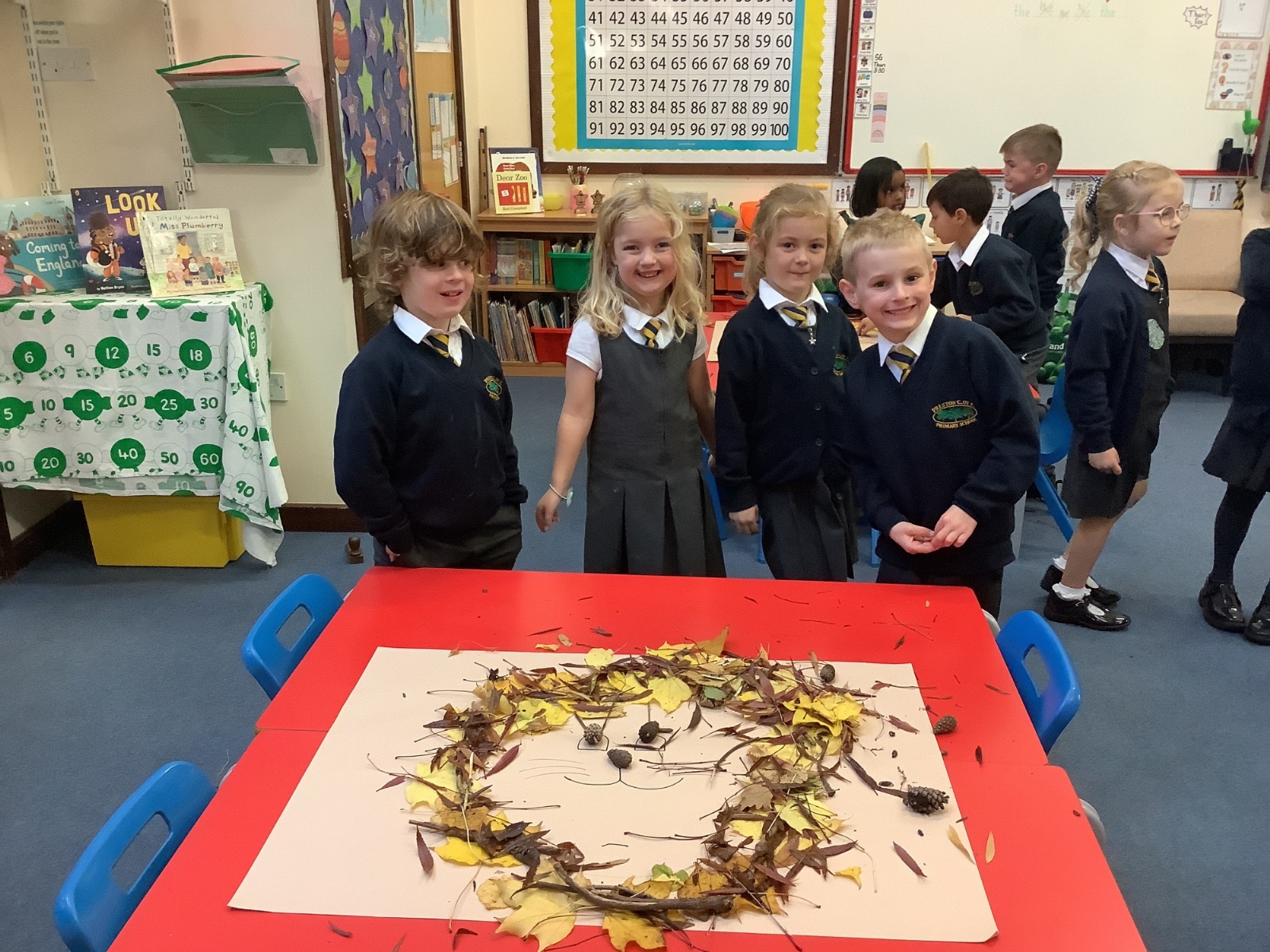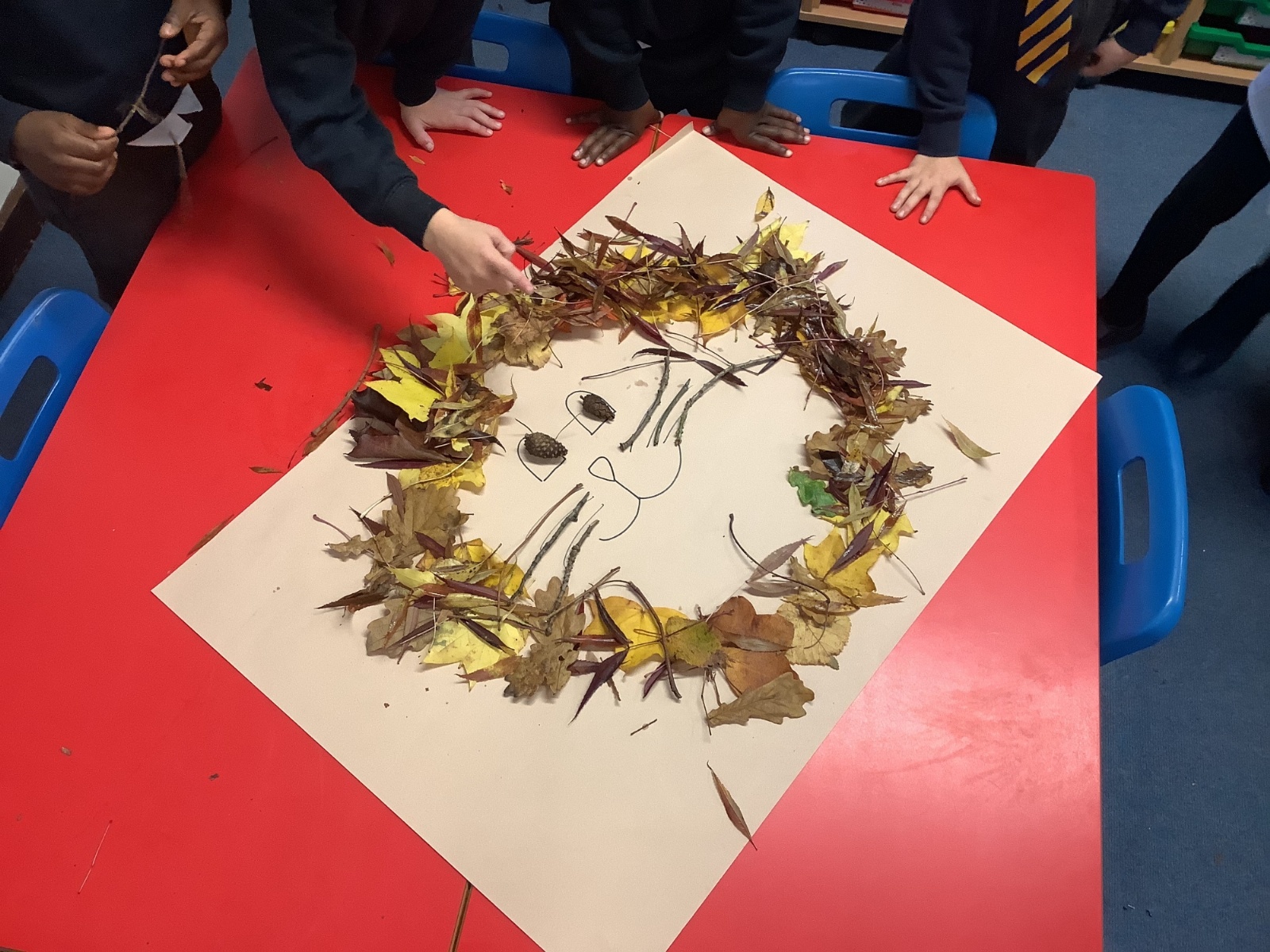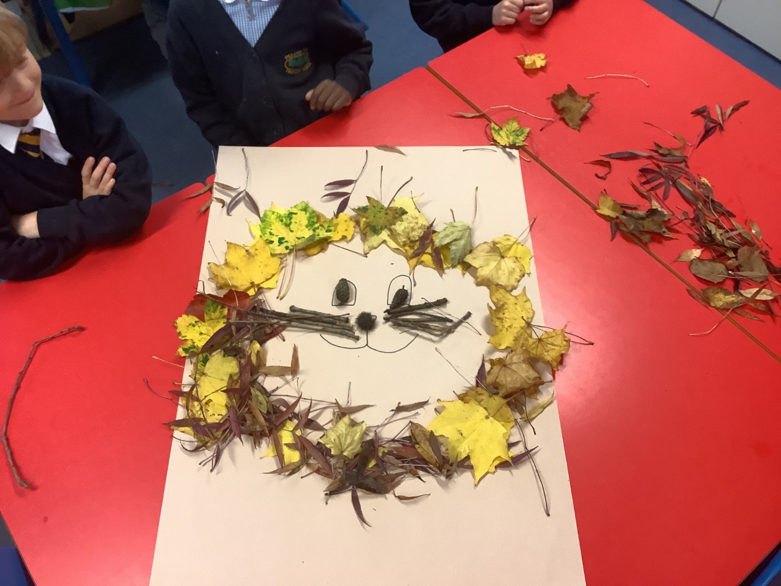 The children created wonderful lions made from leaves and twigs. They loved exploring natural materials and using them to design their own wild artwork.