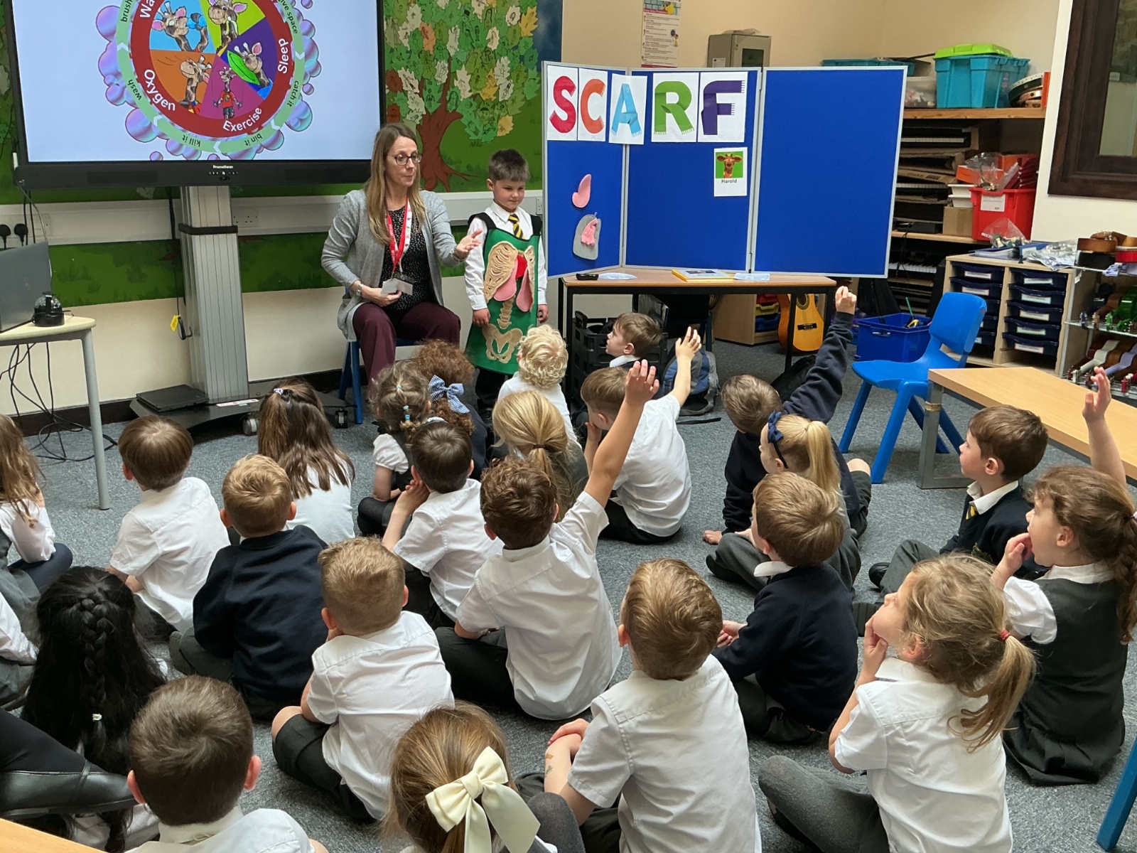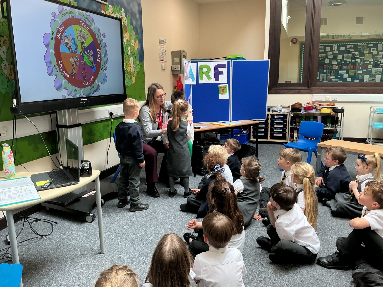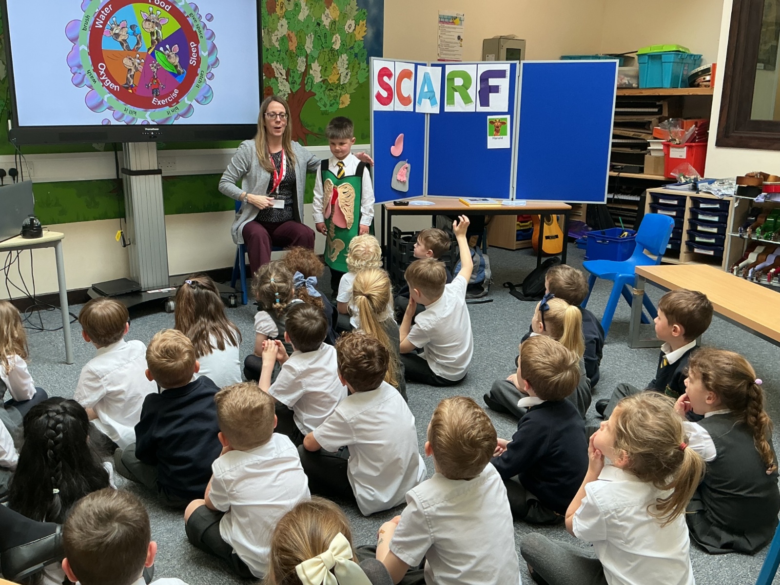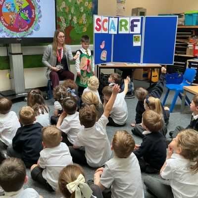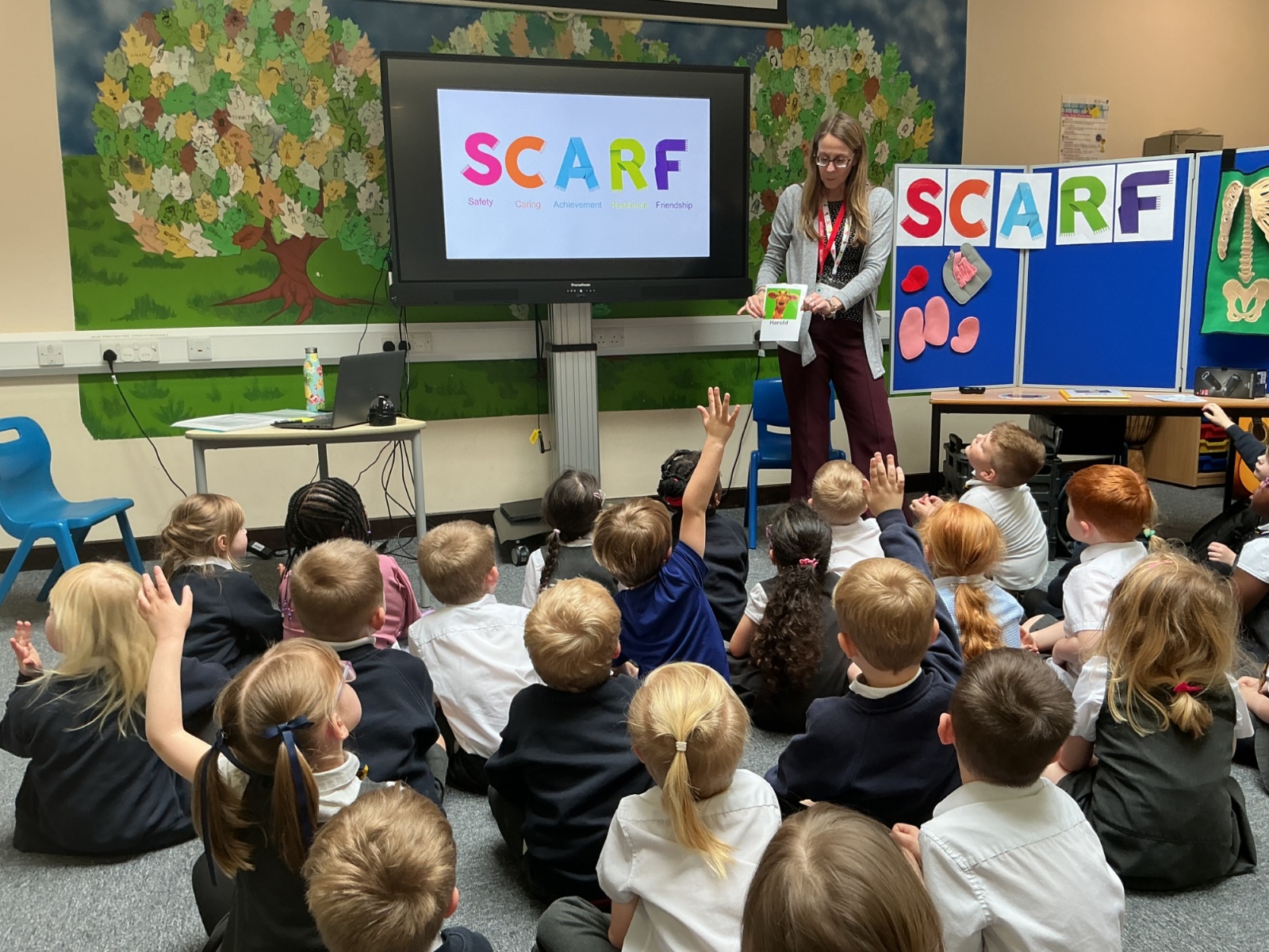 The children had a fantastic time meeting Harold the giraffe and learning about how to keep their bodies healthy. SCARF stands for - Safety, Caring, Achievement, Resilience and Friendship.