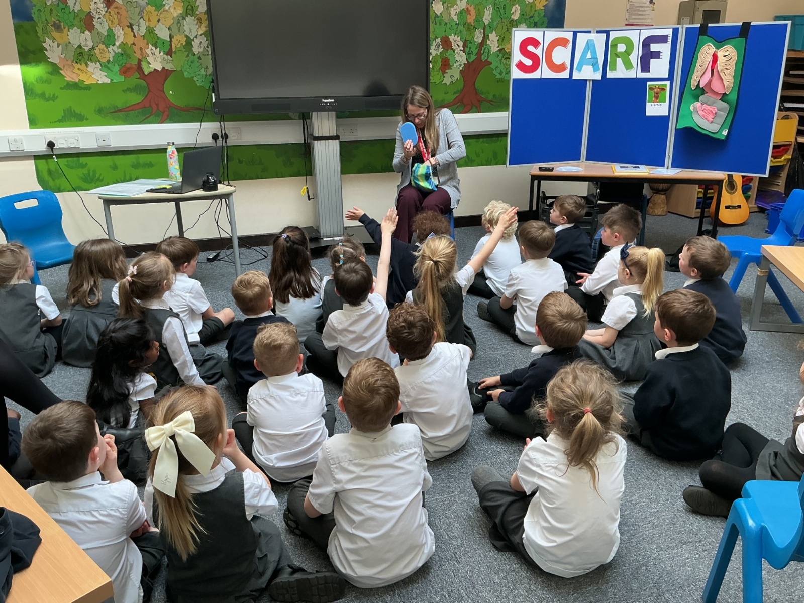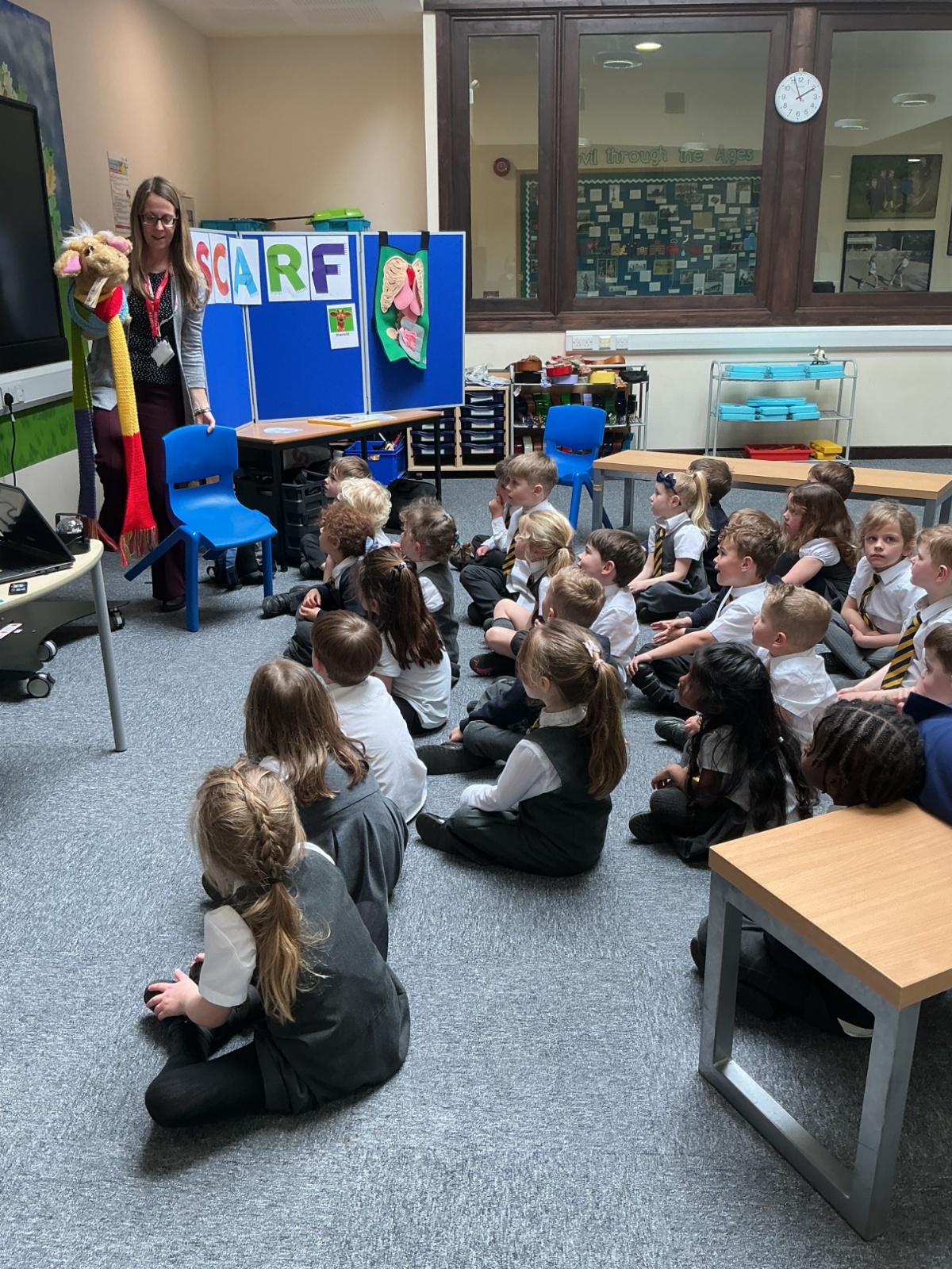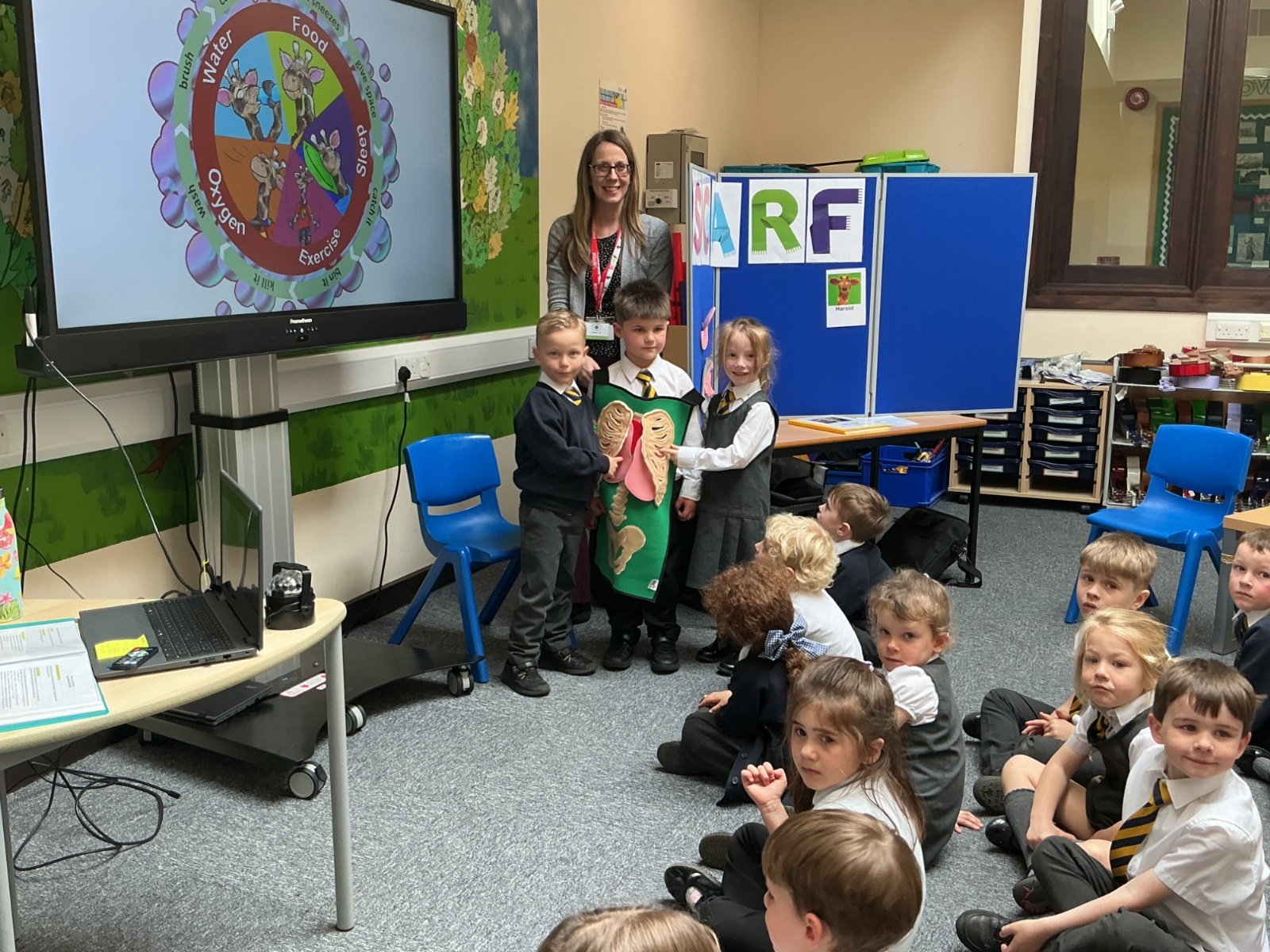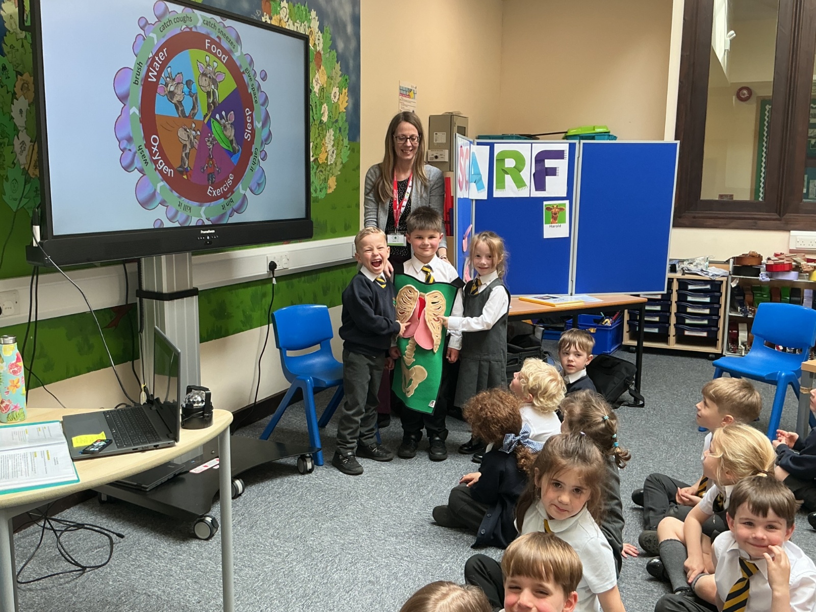The children had a fantastic time meeting Harold the giraffe and learning about how to keep their bodies healthy. SCARF stands for - Safety, Caring, Achievement, Resilience and Friendship.