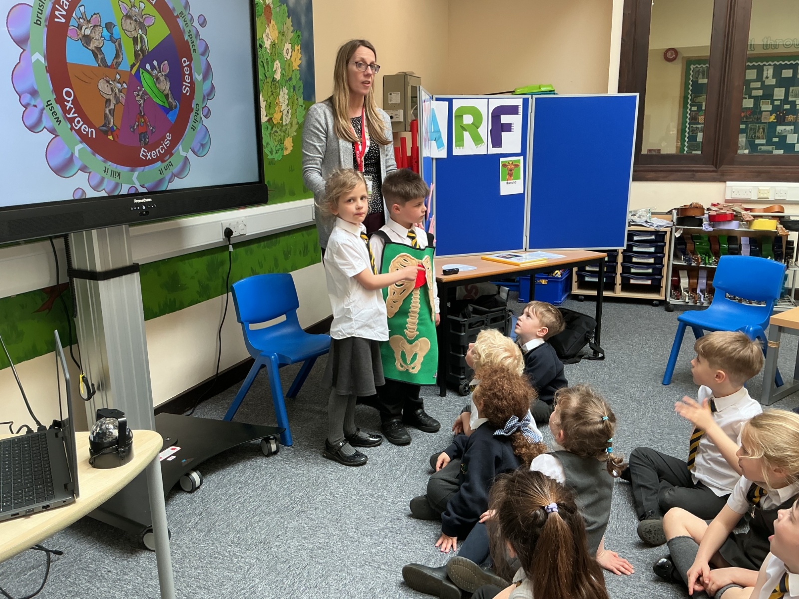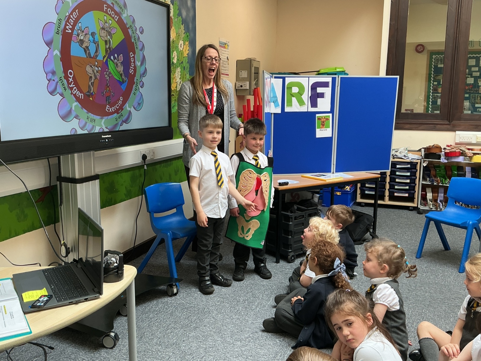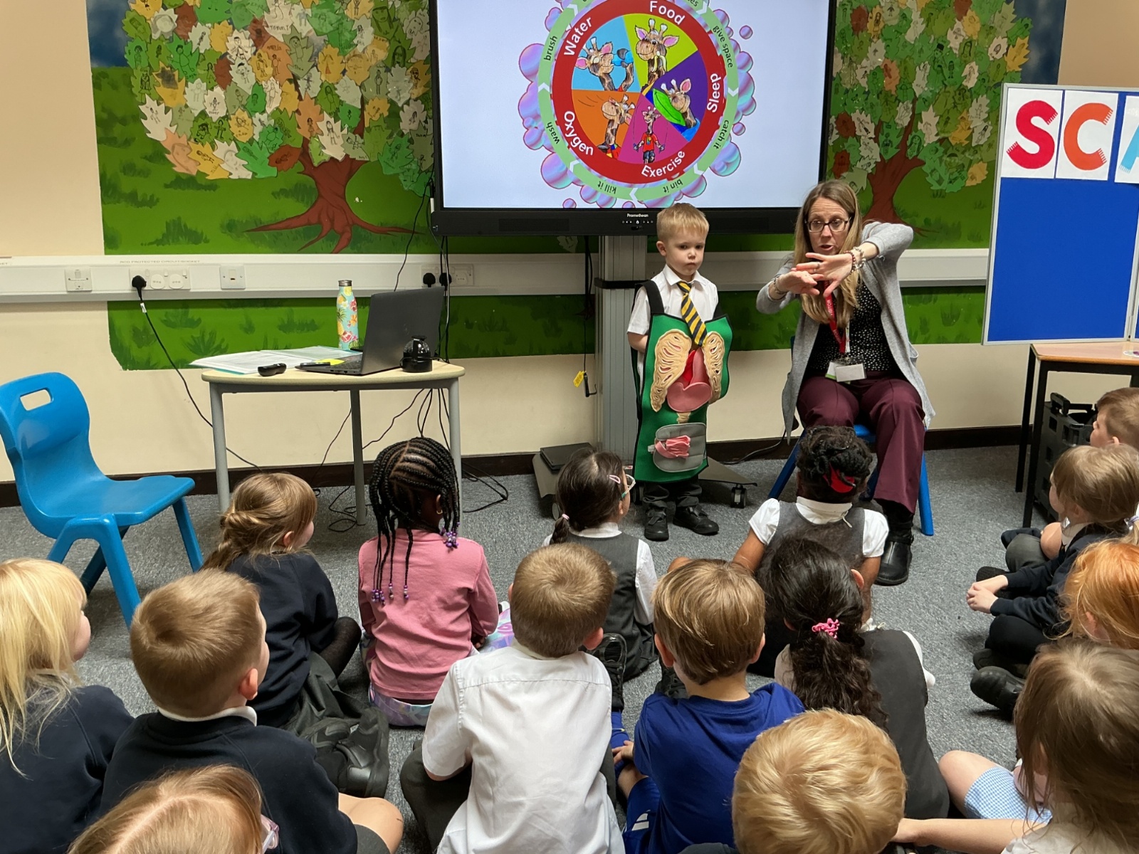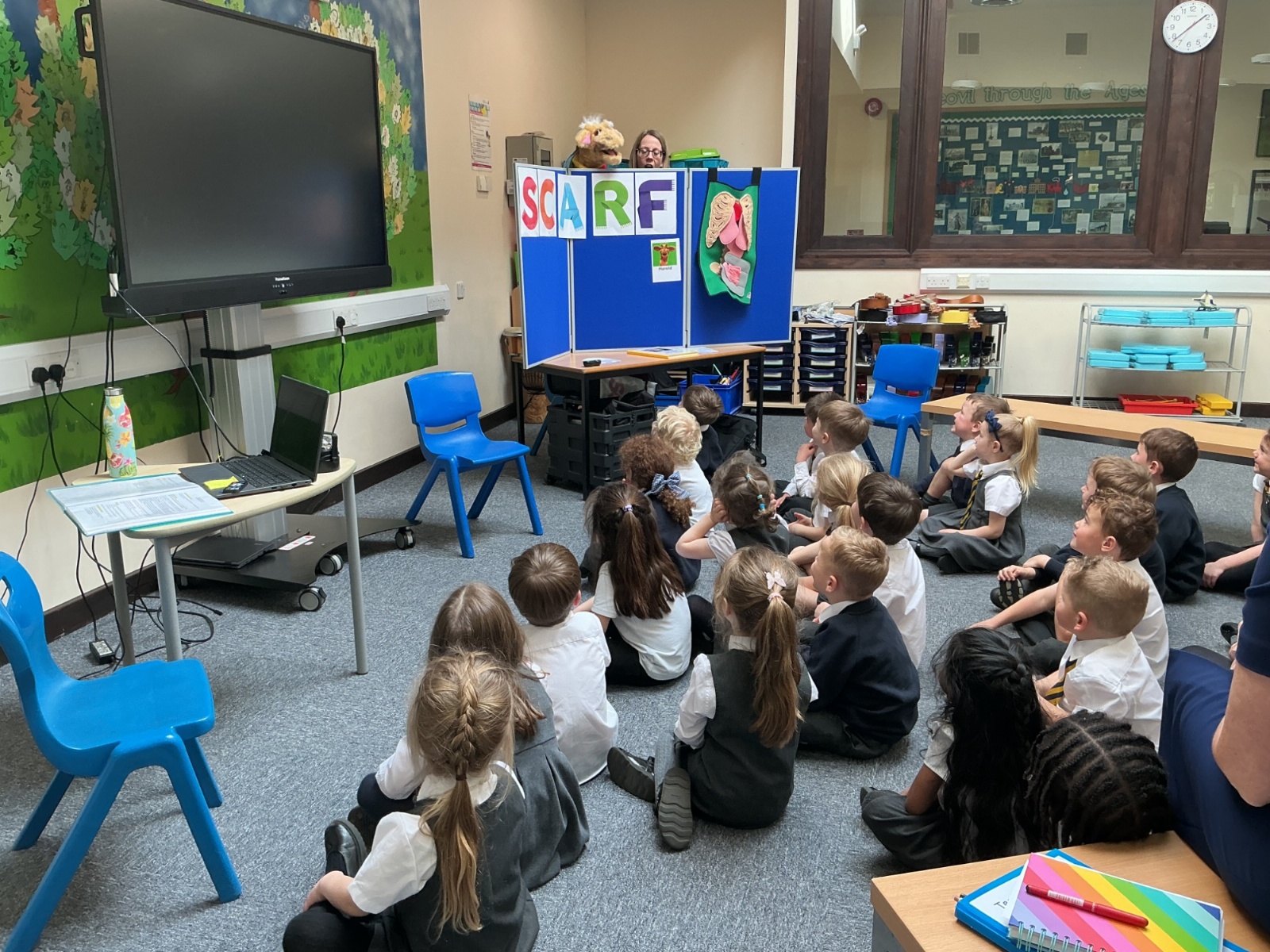 The children had a fantastic time meeting Harold the giraffe and learning about how to keep their bodies healthy. SCARF stands for - Safety, Caring, Achievement, Resilience and Friendship.