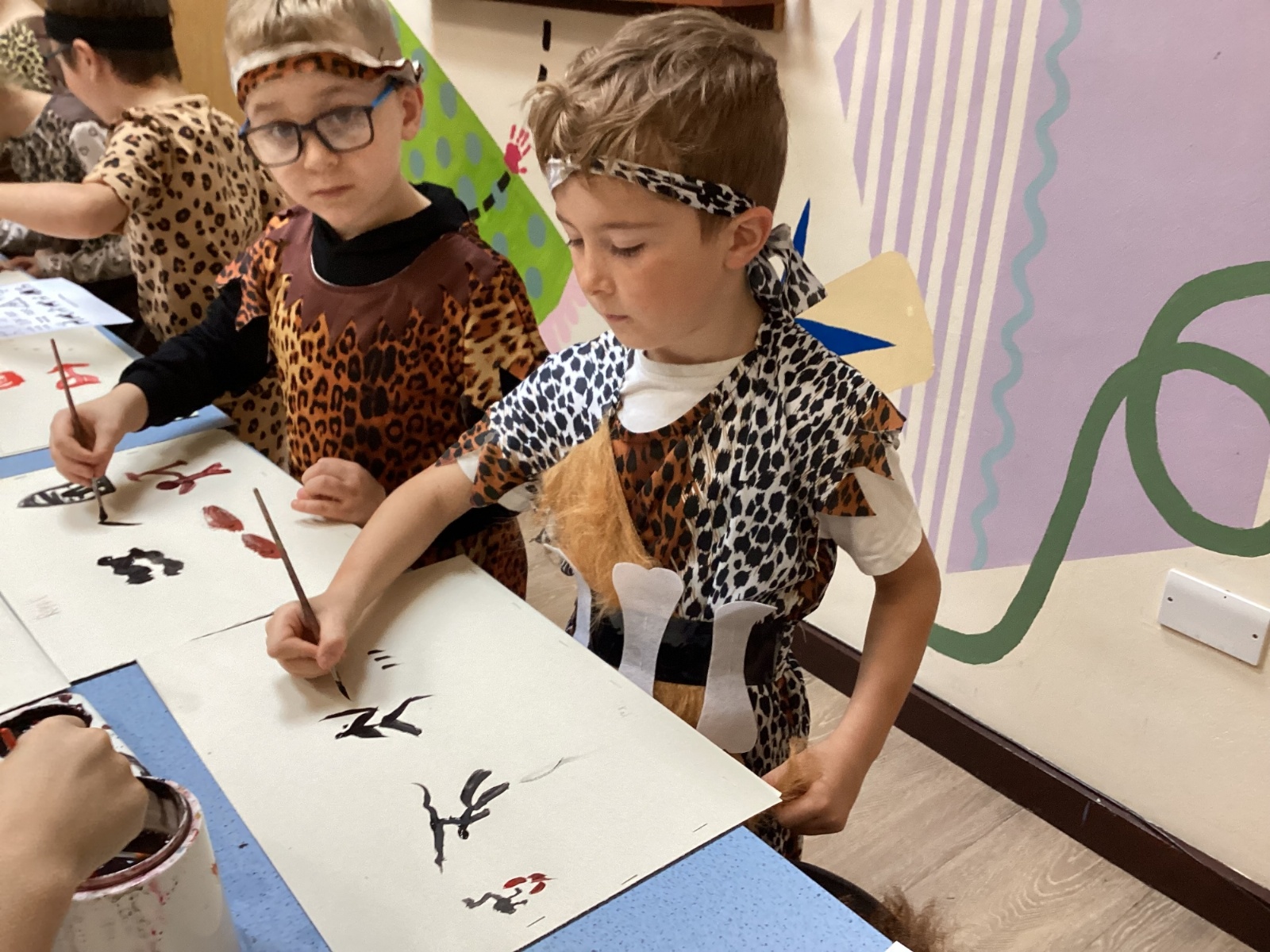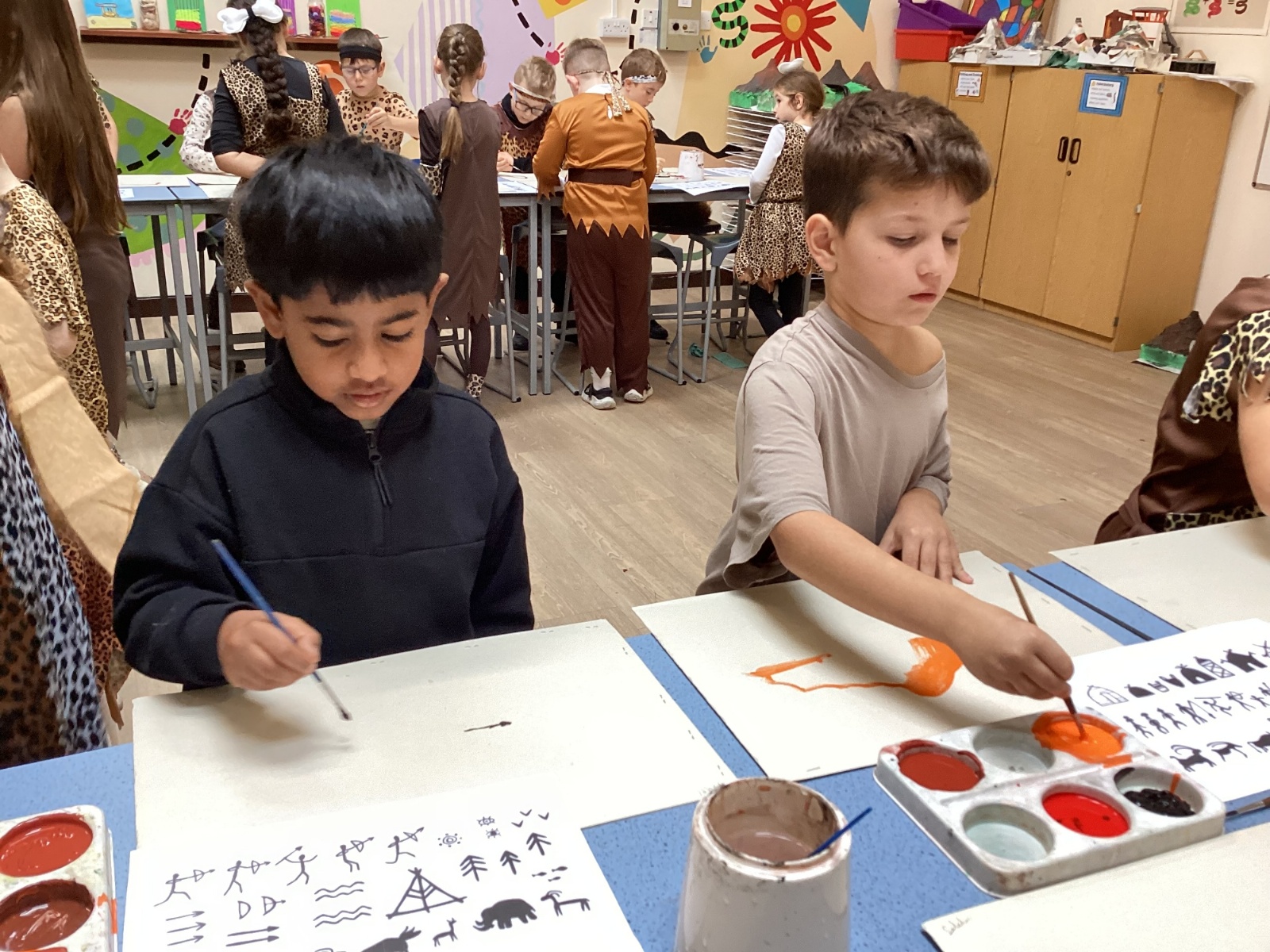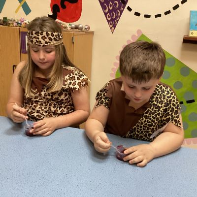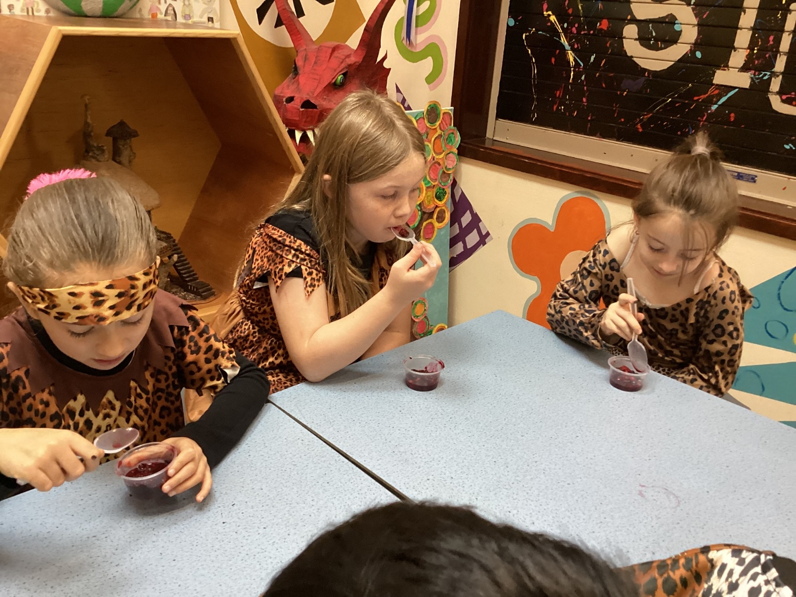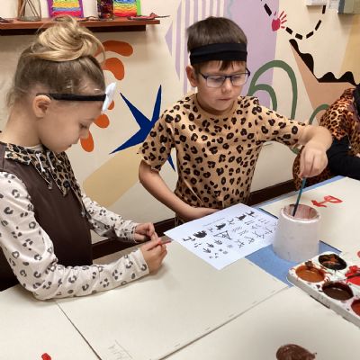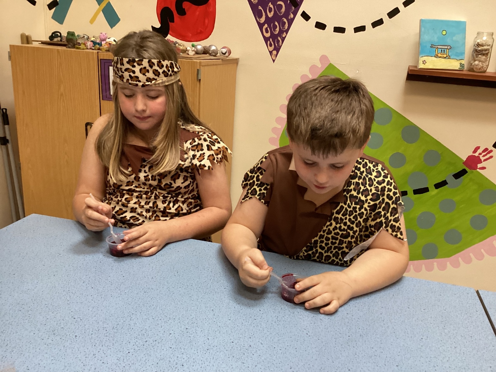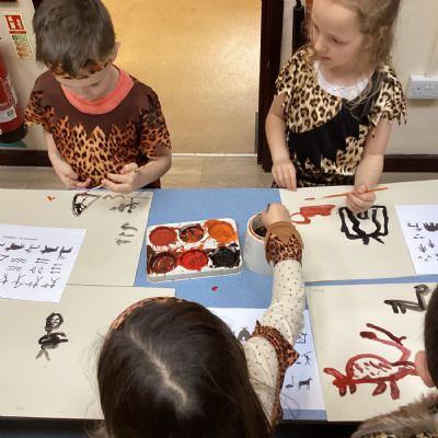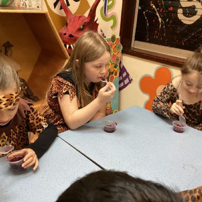 We used a range of colours to create cave wall art and we used berries to create a Stone Age dessert.
