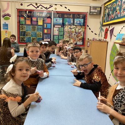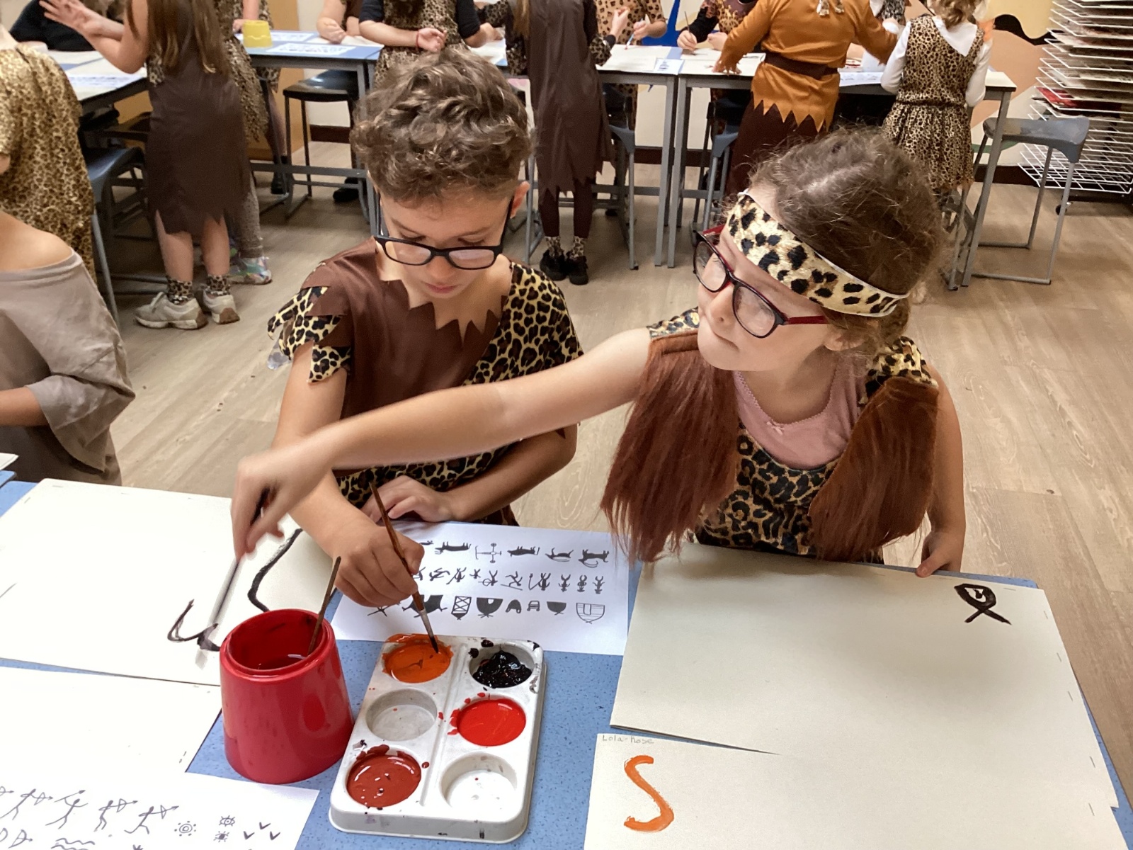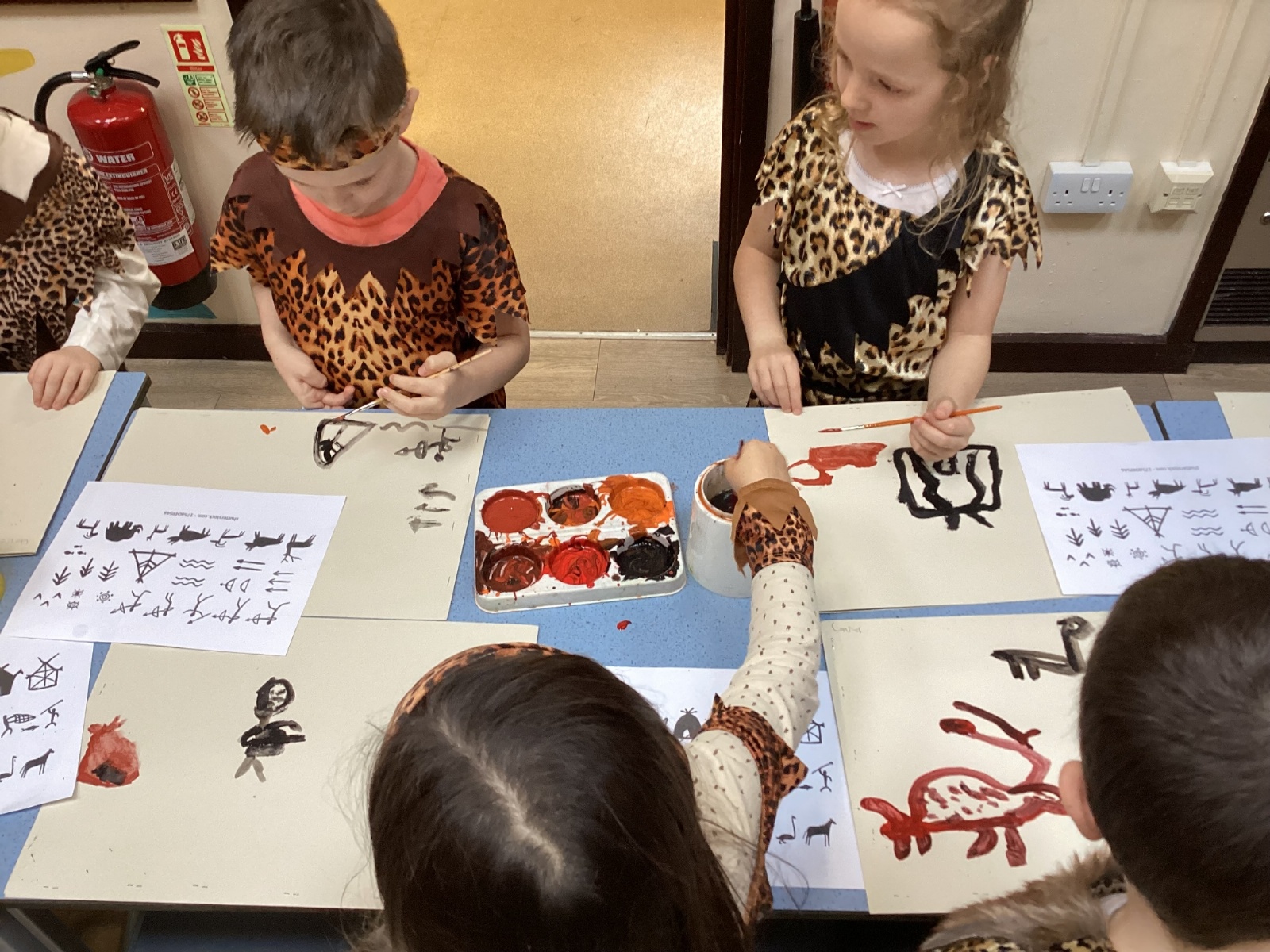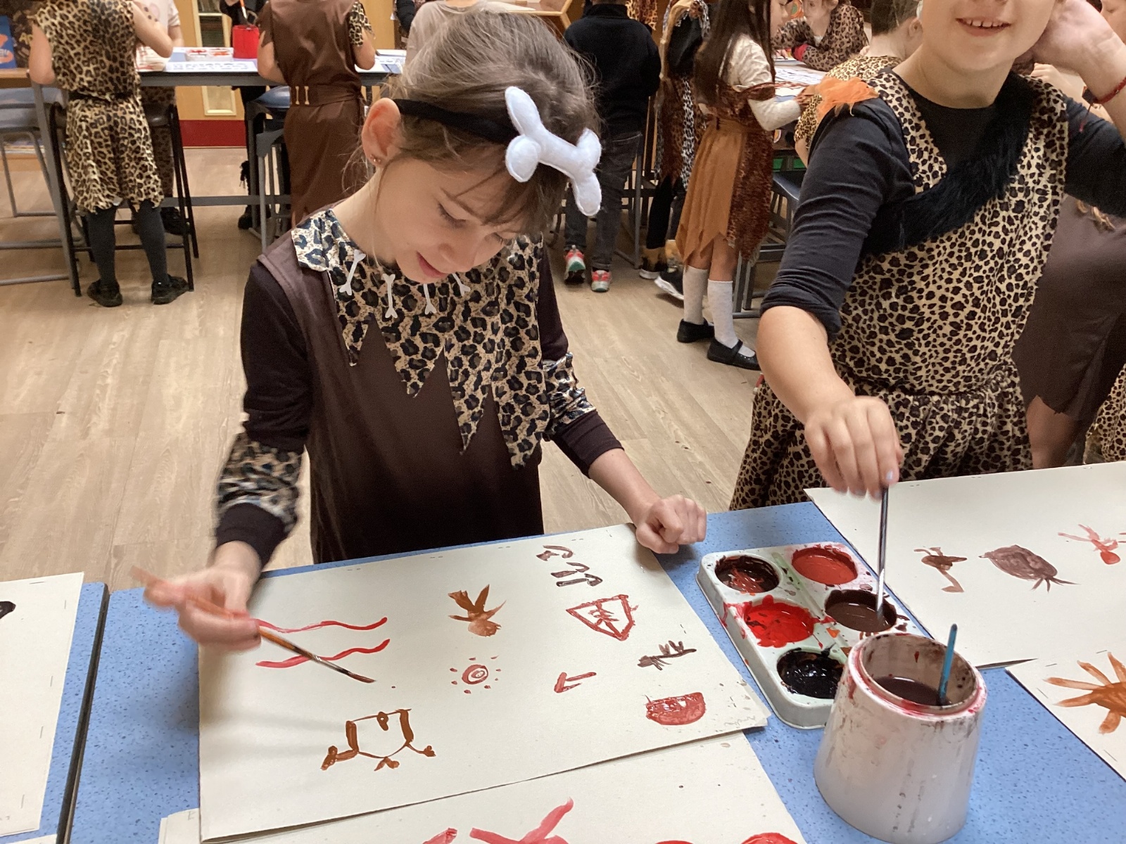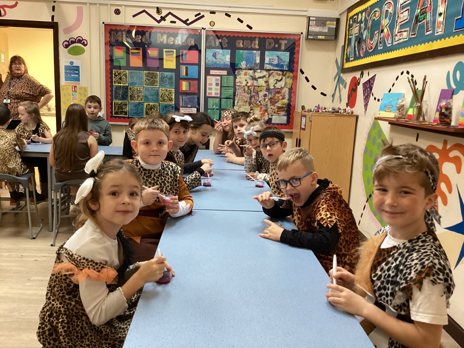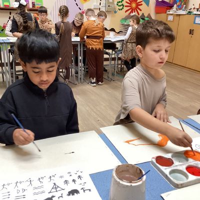 We used a range of colours to create cave wall art and we used berries to create a Stone Age dessert.