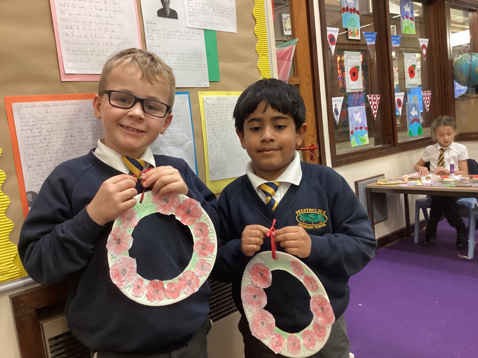 We created our own poppy wreaths while remembering the sacrifices people have made for our country.