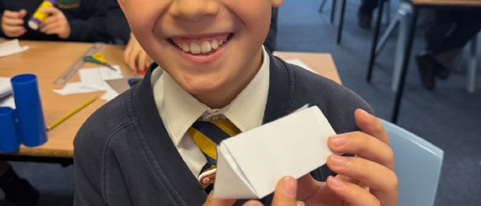Sycamore Class enjoyed a practical maths lesson creating nets of 3D shapes. The children carefully cut, folded, and assembled their nets, developing their understanding of how 2D shapes come together to form 3D objects. They showed great concentration and problem-solving skills throughout the activity.