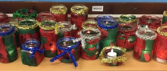 As part of our science work on materials, we have been thinking about the importance of recycling and reusing old objects. We have used old jars to create beautiful tea light holders that we can use to decorate our Christmas tables.