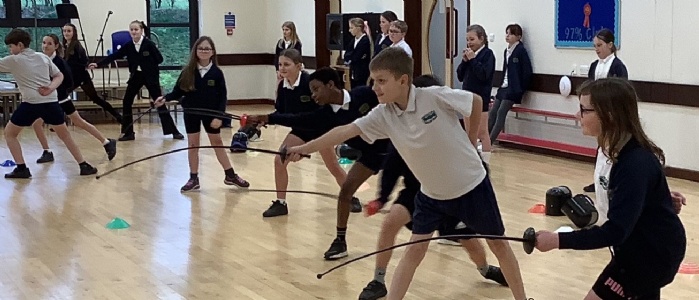 Wearing fencing masks, the children practised their footwork, focusing on advancing and retreating with control. They showed good concentration as they developed these new skills and grew more confident as the session went on.
