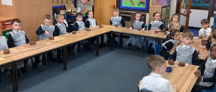 As part of our Design and Technology project, the children in reception made clay pots for Mother's Day. They learnt a variety of techniques and used tools to make imprints on their pots. We gave the pots to the children's mummies as part of their Mother's Day gift.