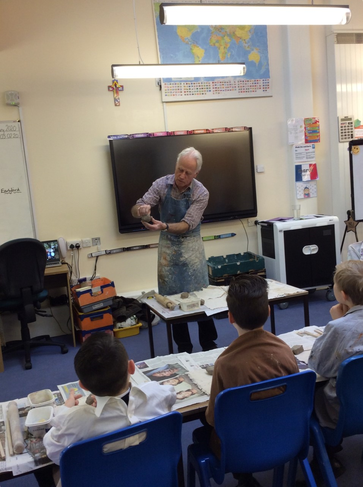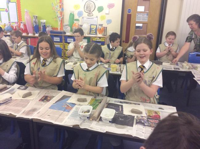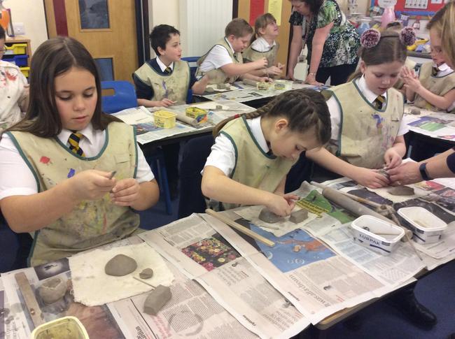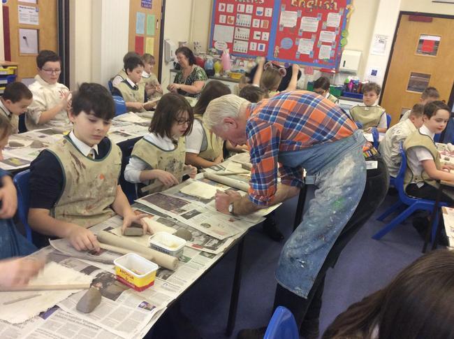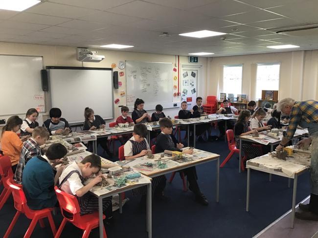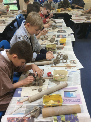 Year 5 have recently been visited by Mr Colin Bell, a local potter. Mr Bell demonstrated to the children a variety of techniques to create their own pottery including how to cut, sculpt and build using the clay. The children practised eventually creating their own mythical creatures. During the afternoon, the children were able to glaze their monsters ready to go into the kiln.