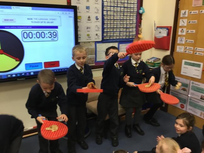 For Shrove Tuesday, Year 2 have been learning all about the religious significance of the day. We understand why pancakes are eaten and have all had a go at making and tasting some pancakes. We also learnt that it is traditional to have pancake races. Unfortunately, the wet weather stopped us from racing outside so we had a pancake tossing competition instead!