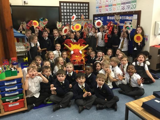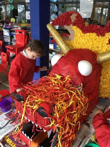 Reception have been hard at work making a brand new dragon head for the Chinese New Year display.