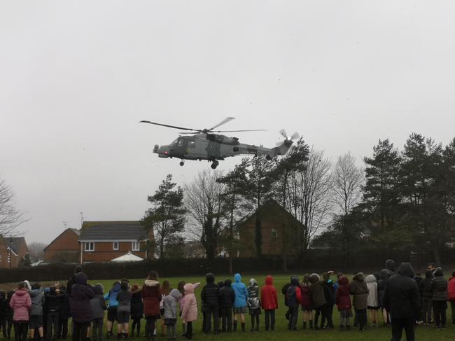 On a very wet and windy December day, the children were treated to a surprise visit from Santa’s elves who arrived at the school in a helicopter amidst the blustery showers.